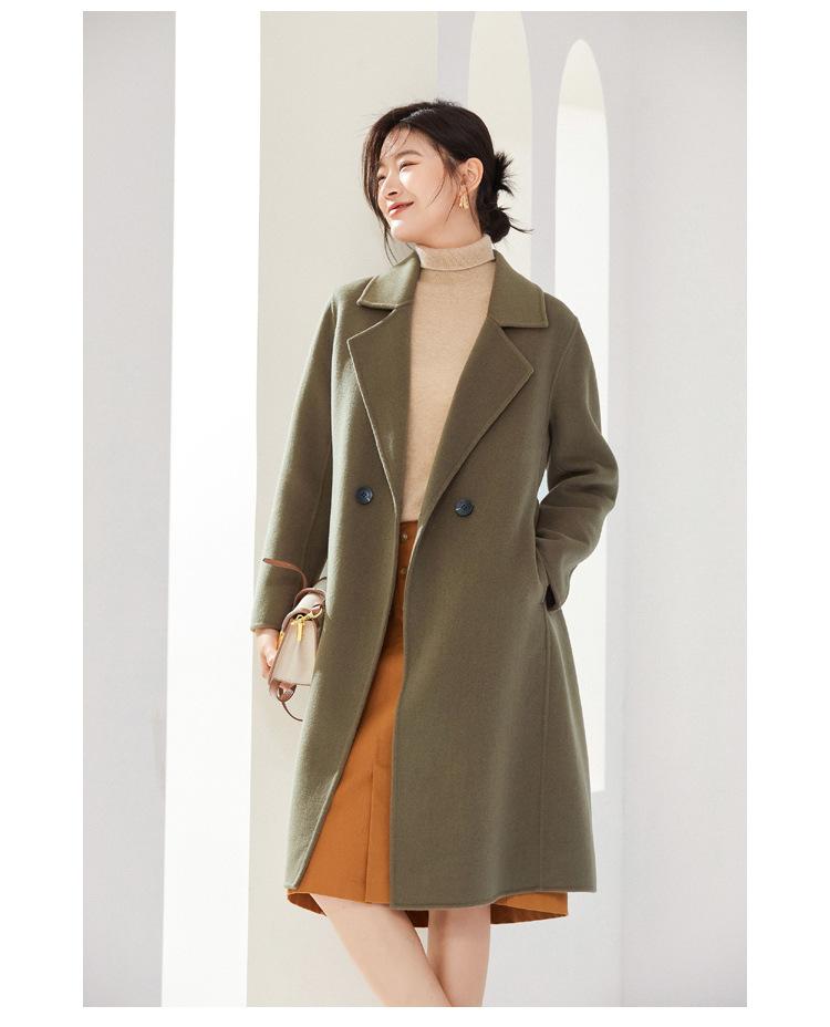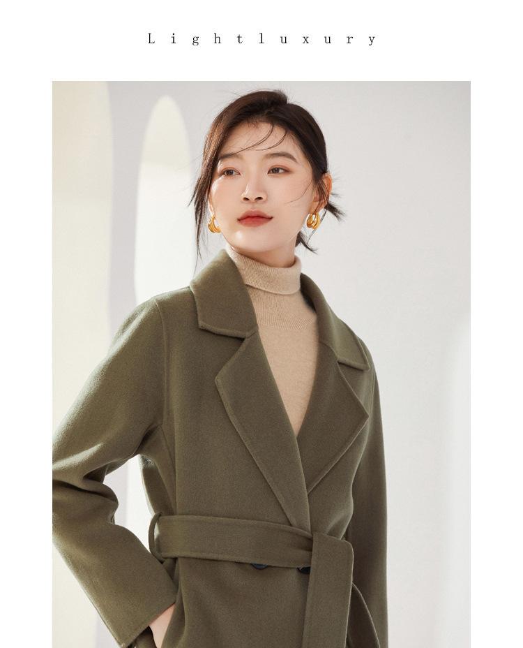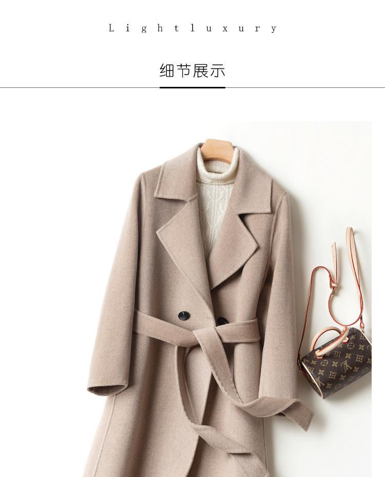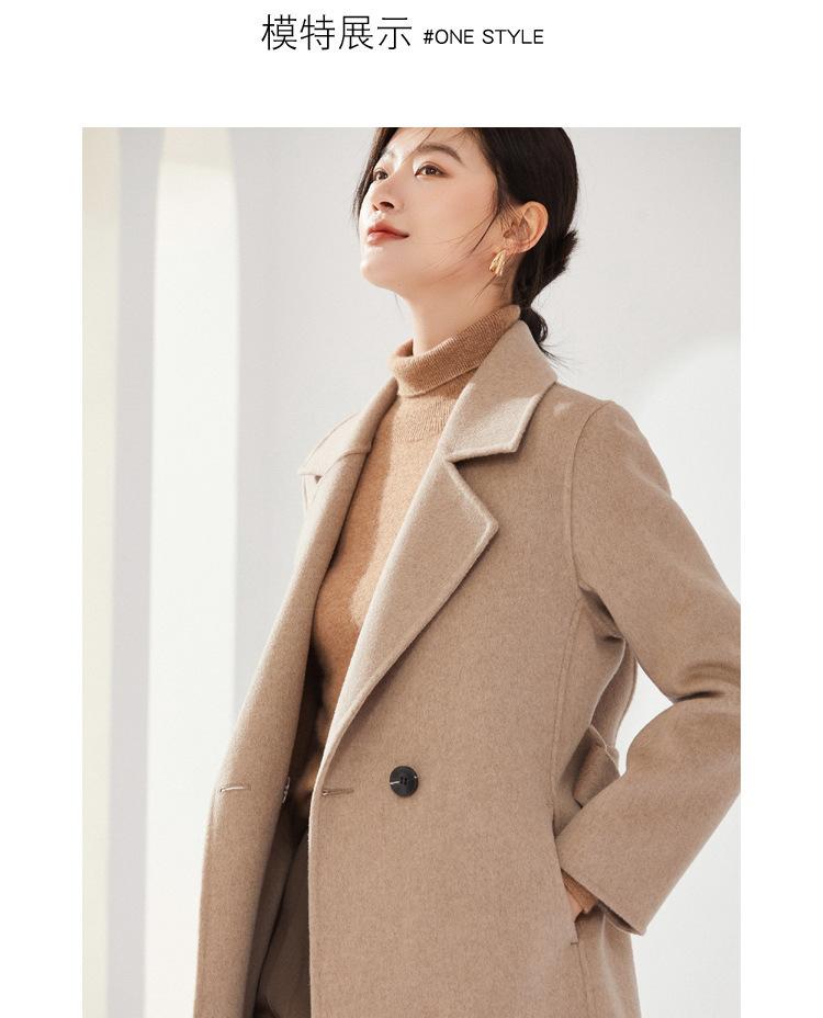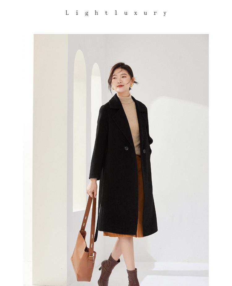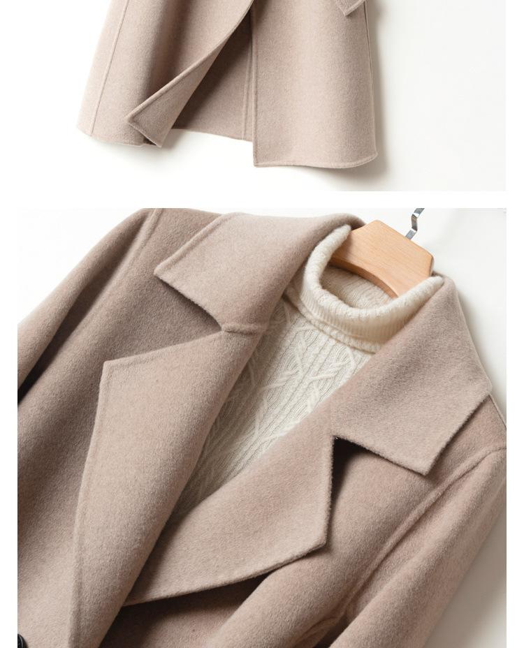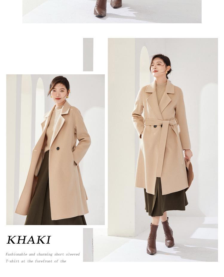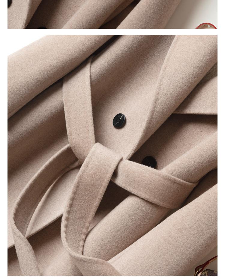 Abrigo de lana de doble cara de otoño e invierno para mujer, abrigo de lana de doble cara color camel con cuello de traje holgado hasta la rodilla de longitud media para mujer