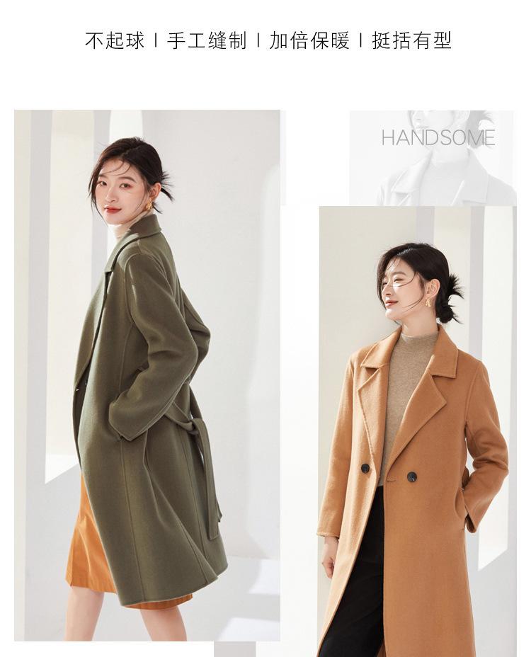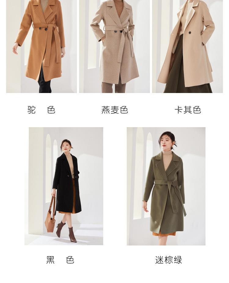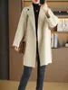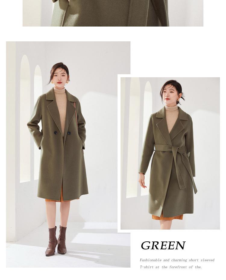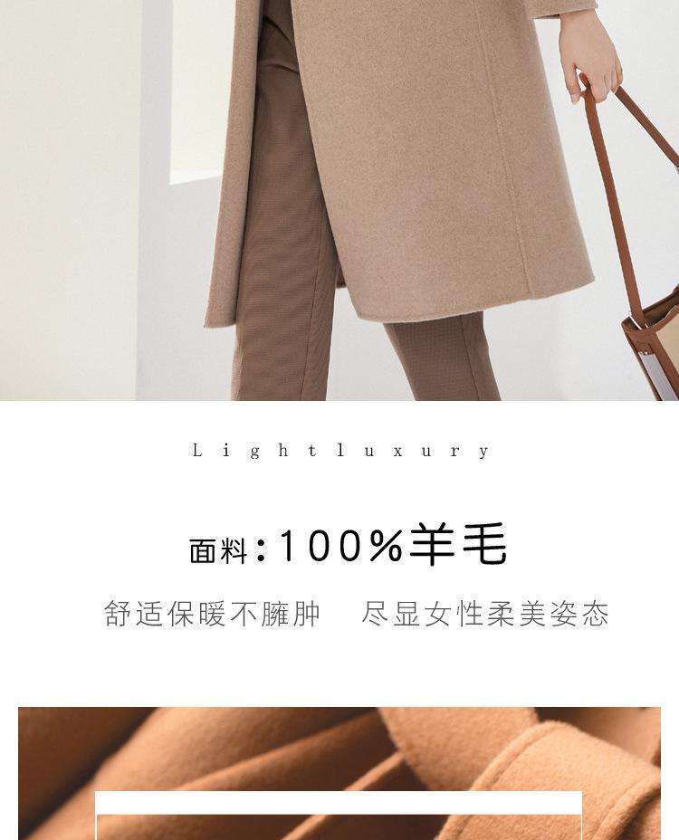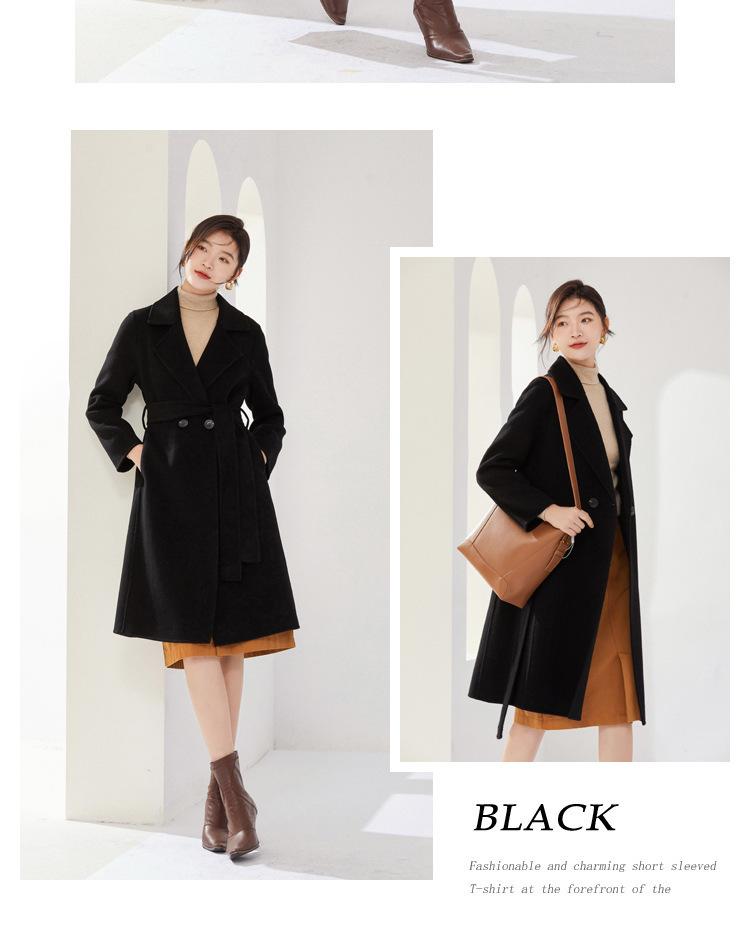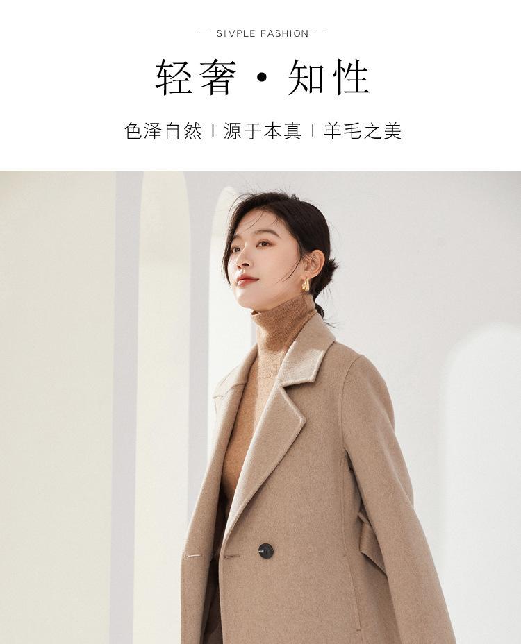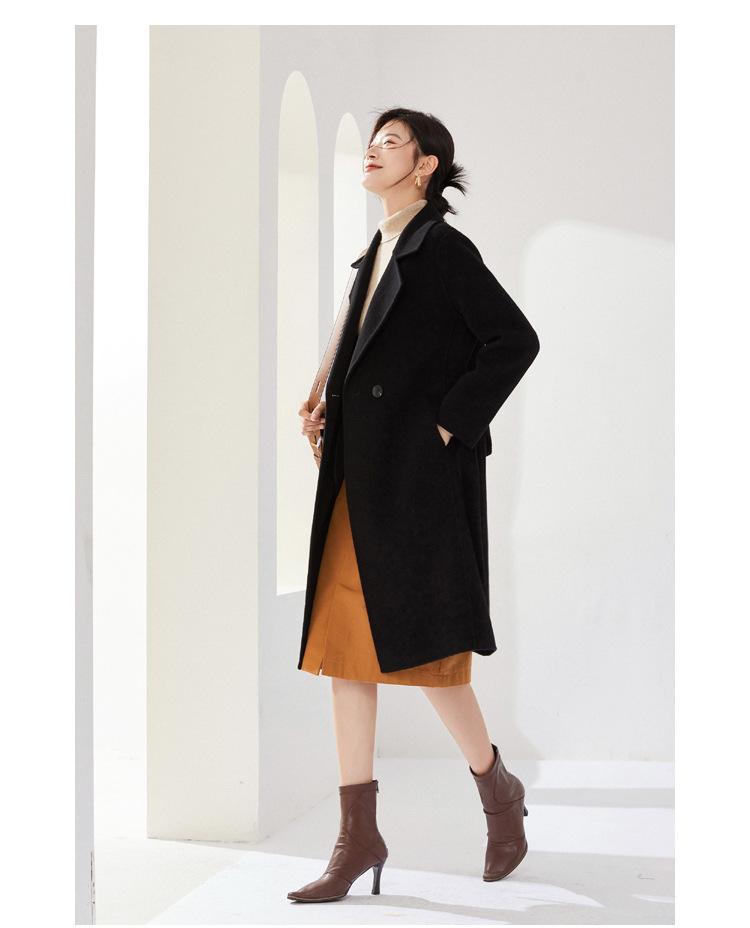 Abrigo de lana de doble cara de otoño e invierno para mujer, abrigo de lana de doble cara color camel con cuello de traje holgado hasta la rodilla de longitud media para mujer