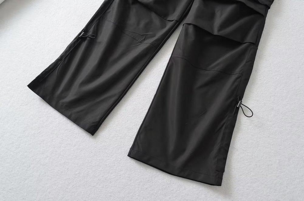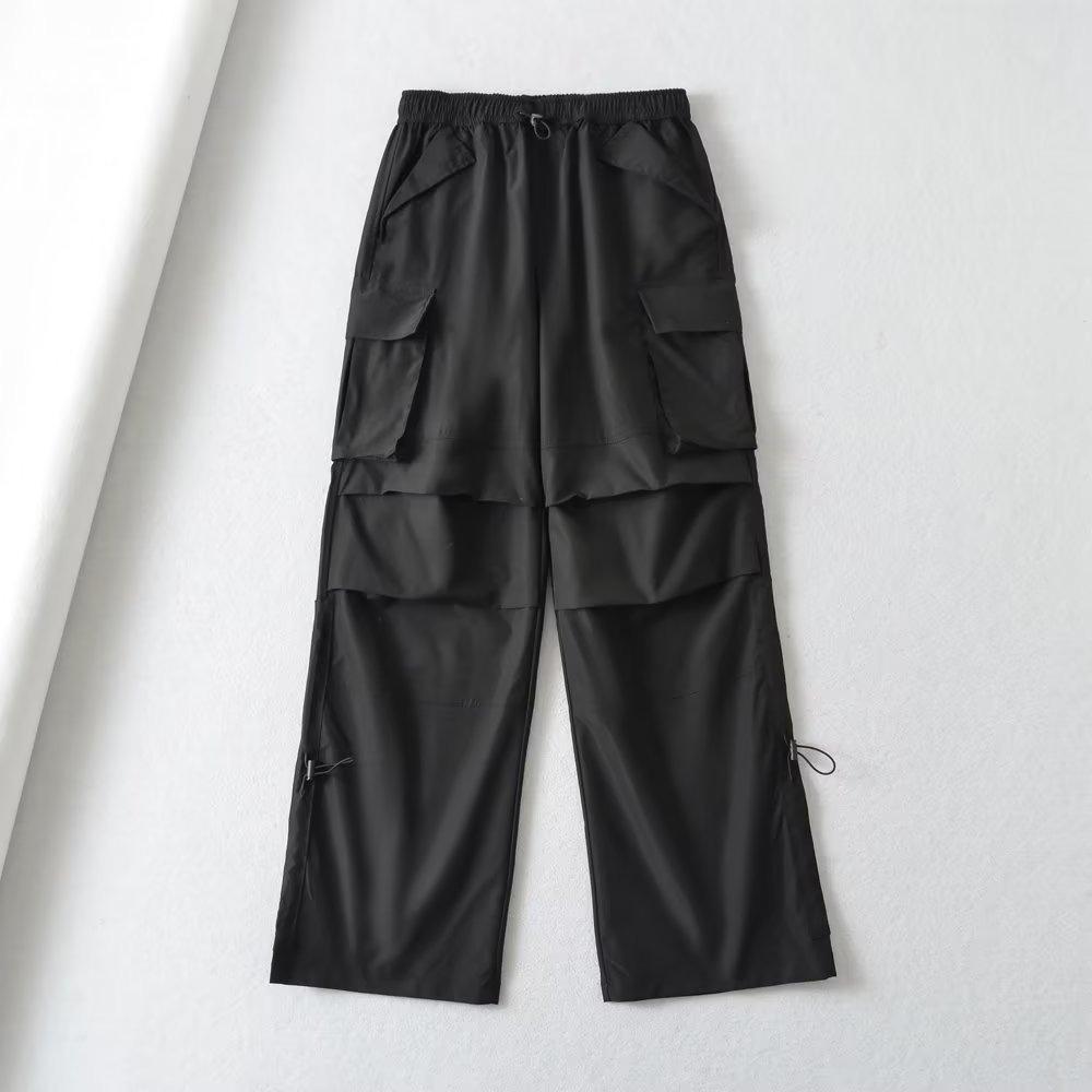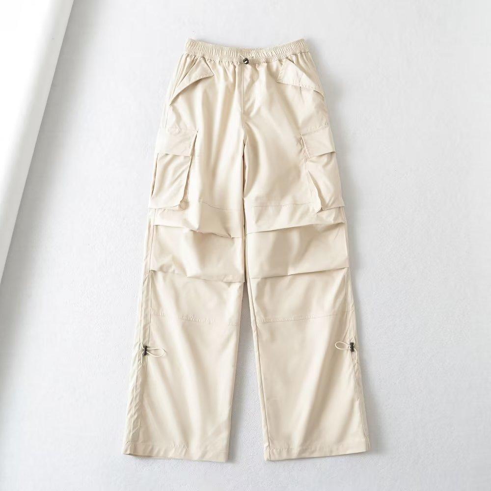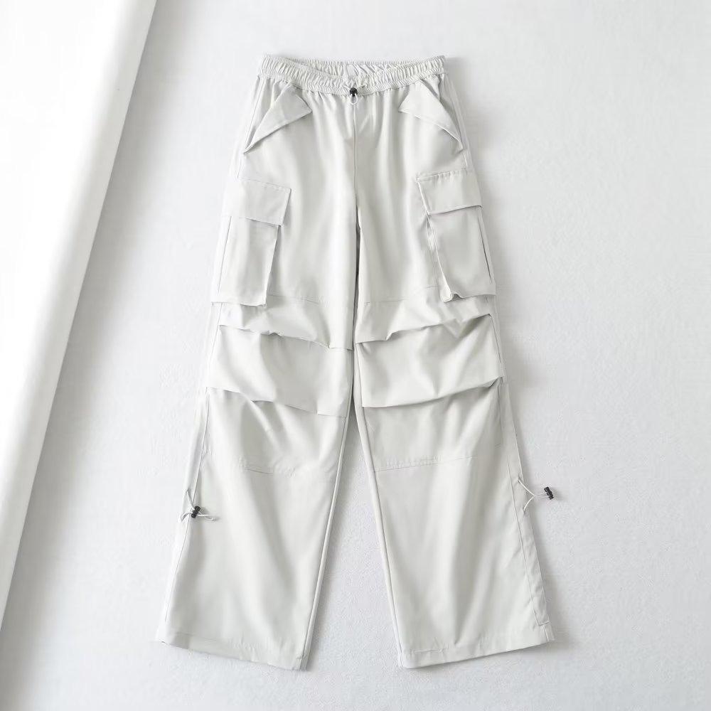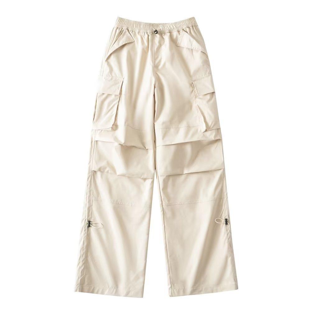 Monos con cordón de estilo europeo y americano para mujer, primavera y verano 2023, nuevos pantalones casuales holgados de cintura alta con tobillos atados y pierna ancha a la moda