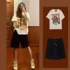 Celebridad de Internet Traje Nuevo Verano 2025 para Mujer Deportivo Casual Pantalones Cortos de Pierna Ancha Moderno Estampado Manga Corta Americano Conjunto de Dos Piezas