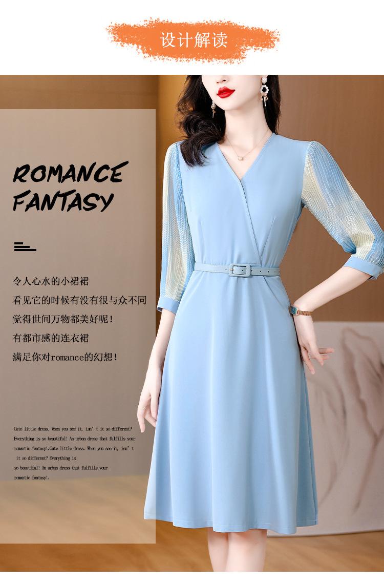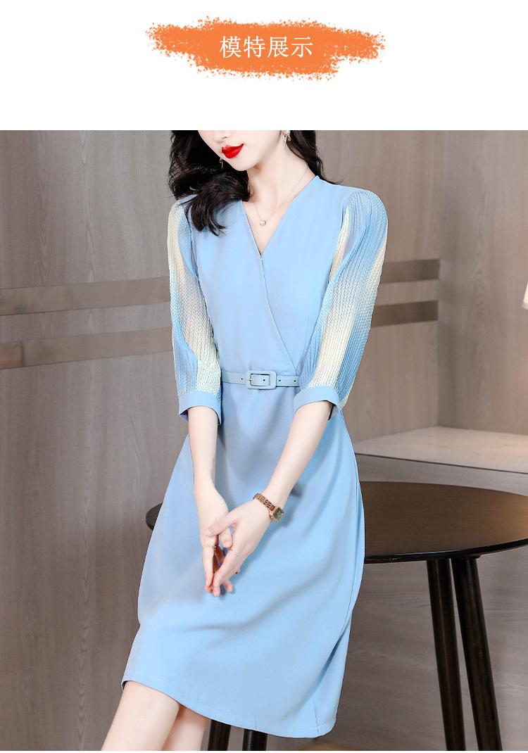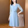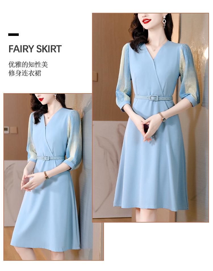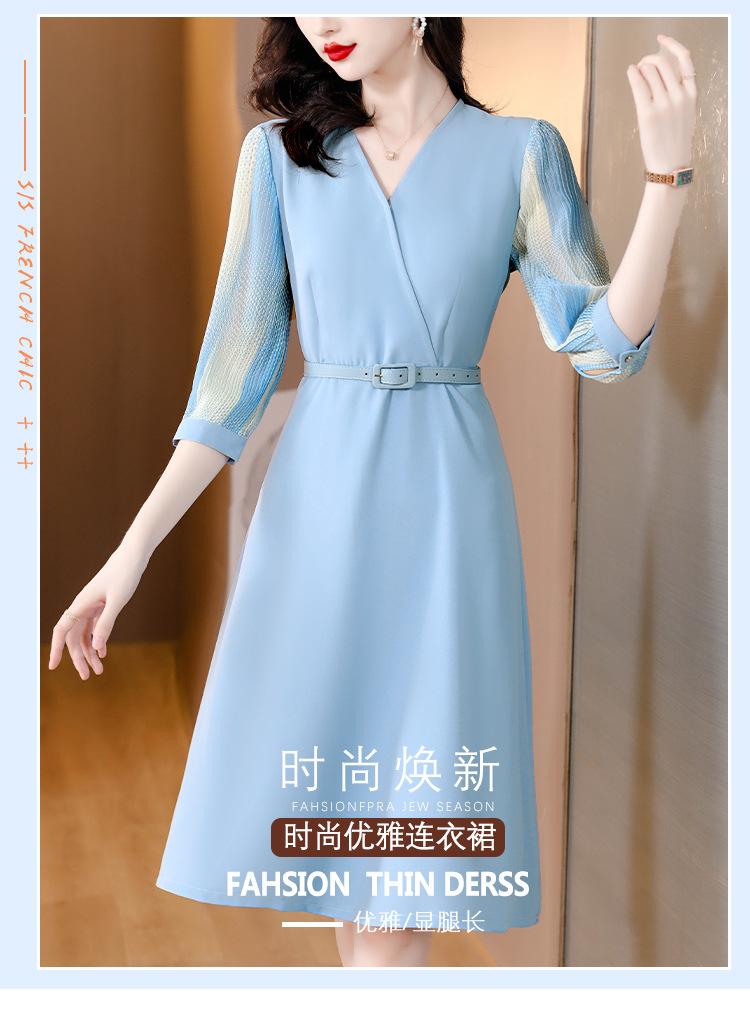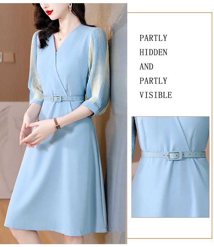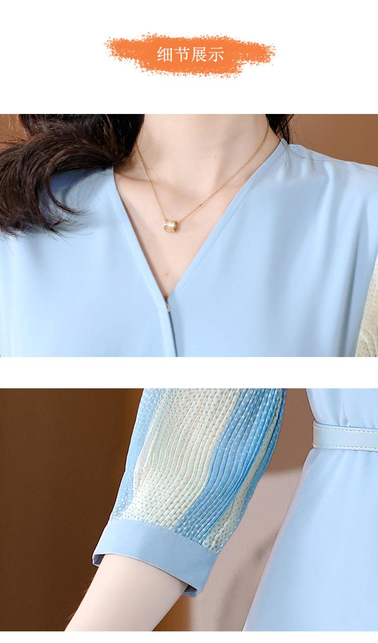 Vestido de gasa arrugada con estampado para mujer, novedad de verano 2023, elegante, a la moda, con cintura ajustada, escote en V y falda con costuras.