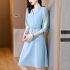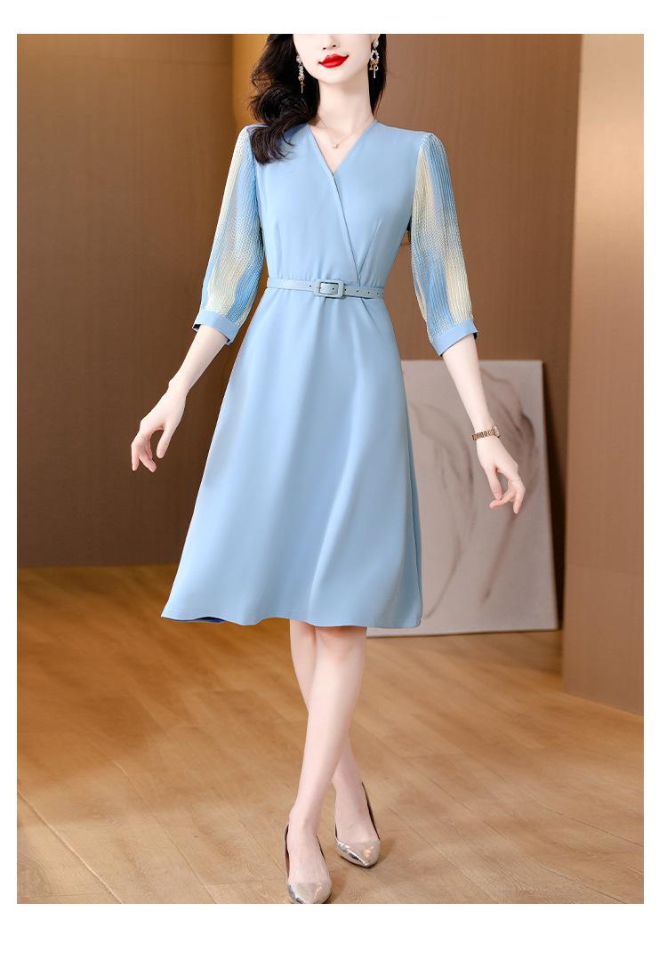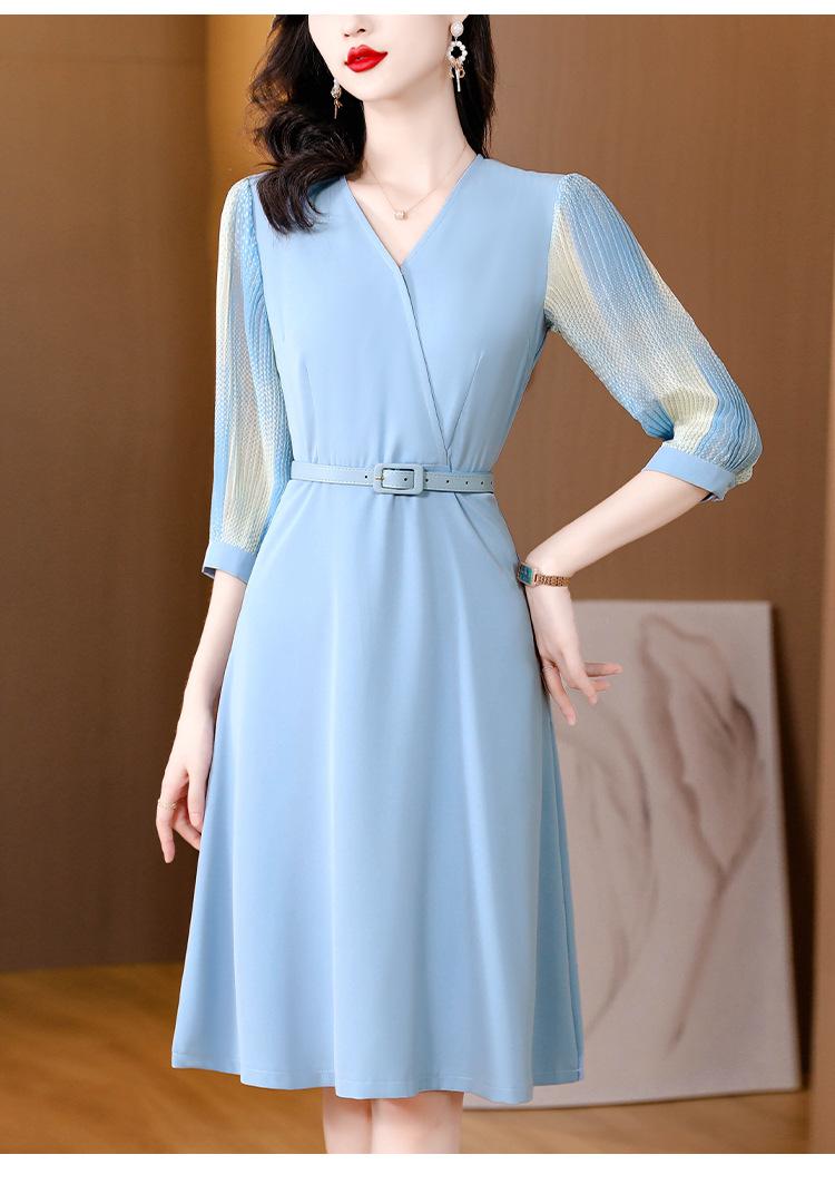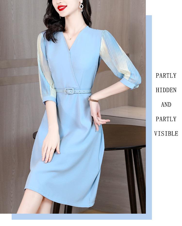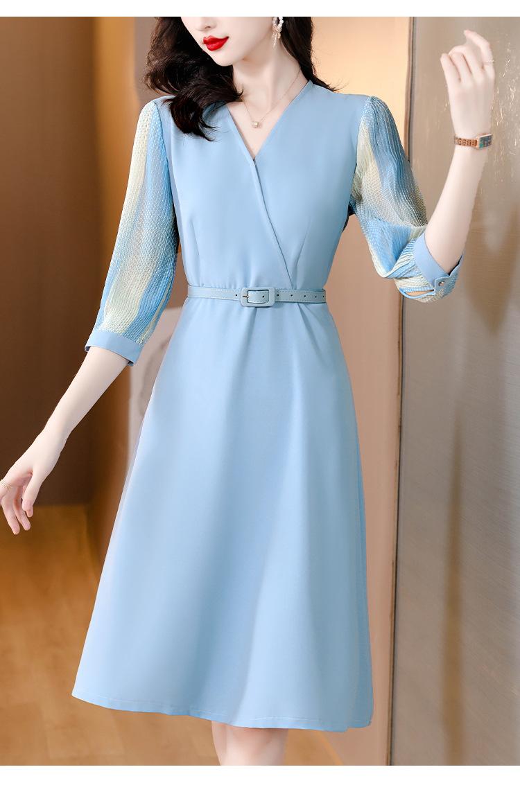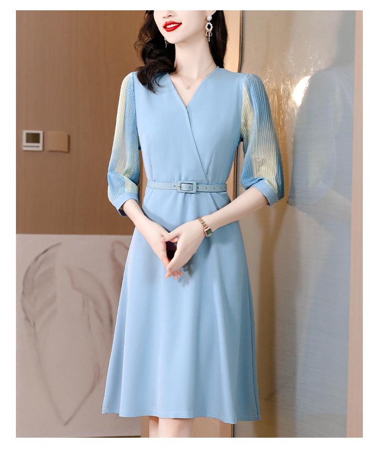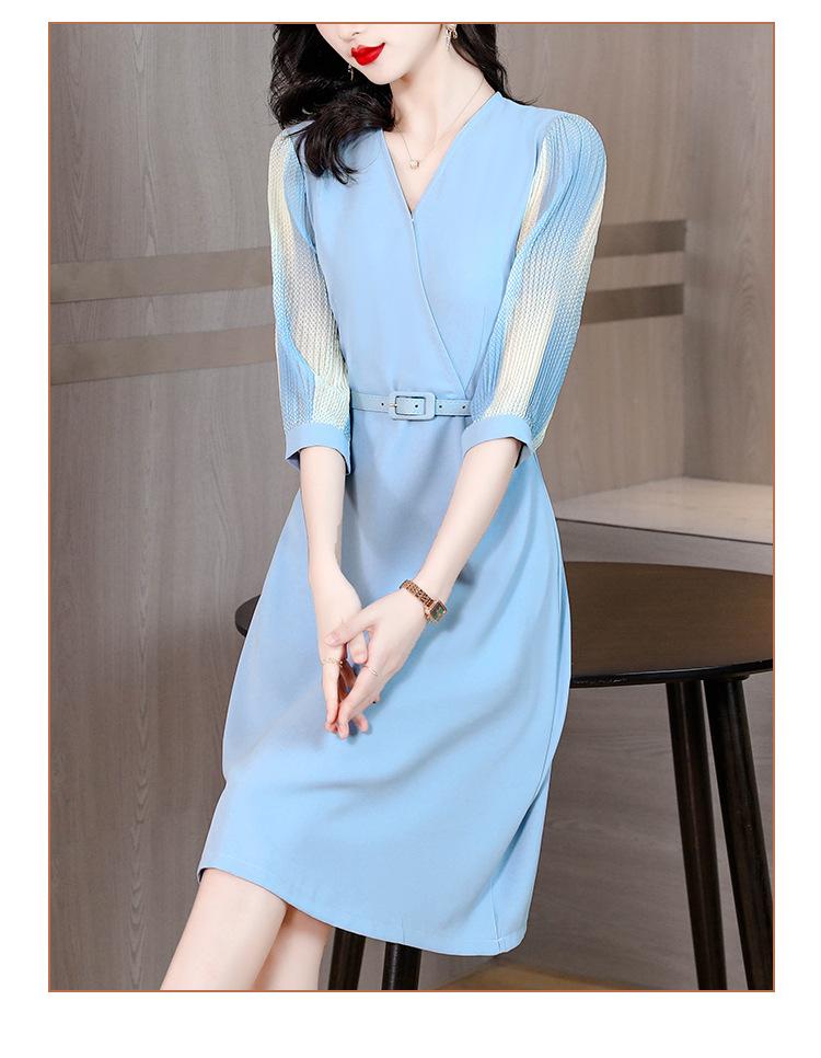 Vestido de gasa arrugada con estampado para mujer, novedad de verano 2023, elegante, a la moda, con cintura ajustada, escote en V y falda con costuras.
