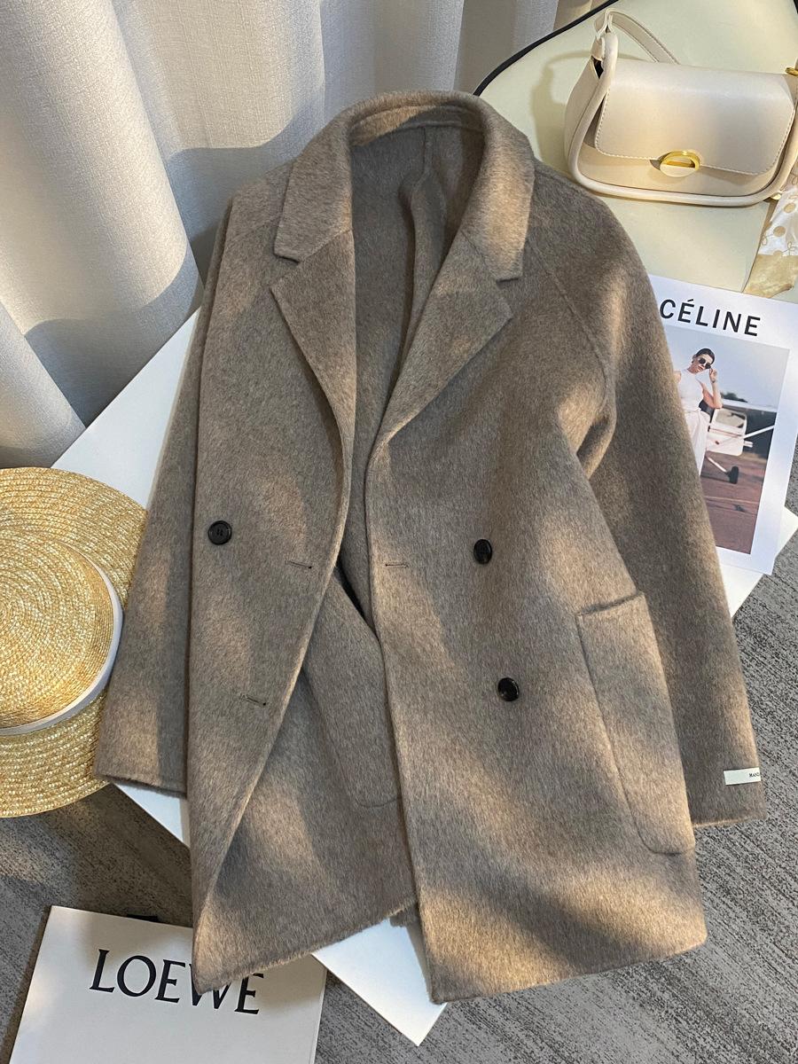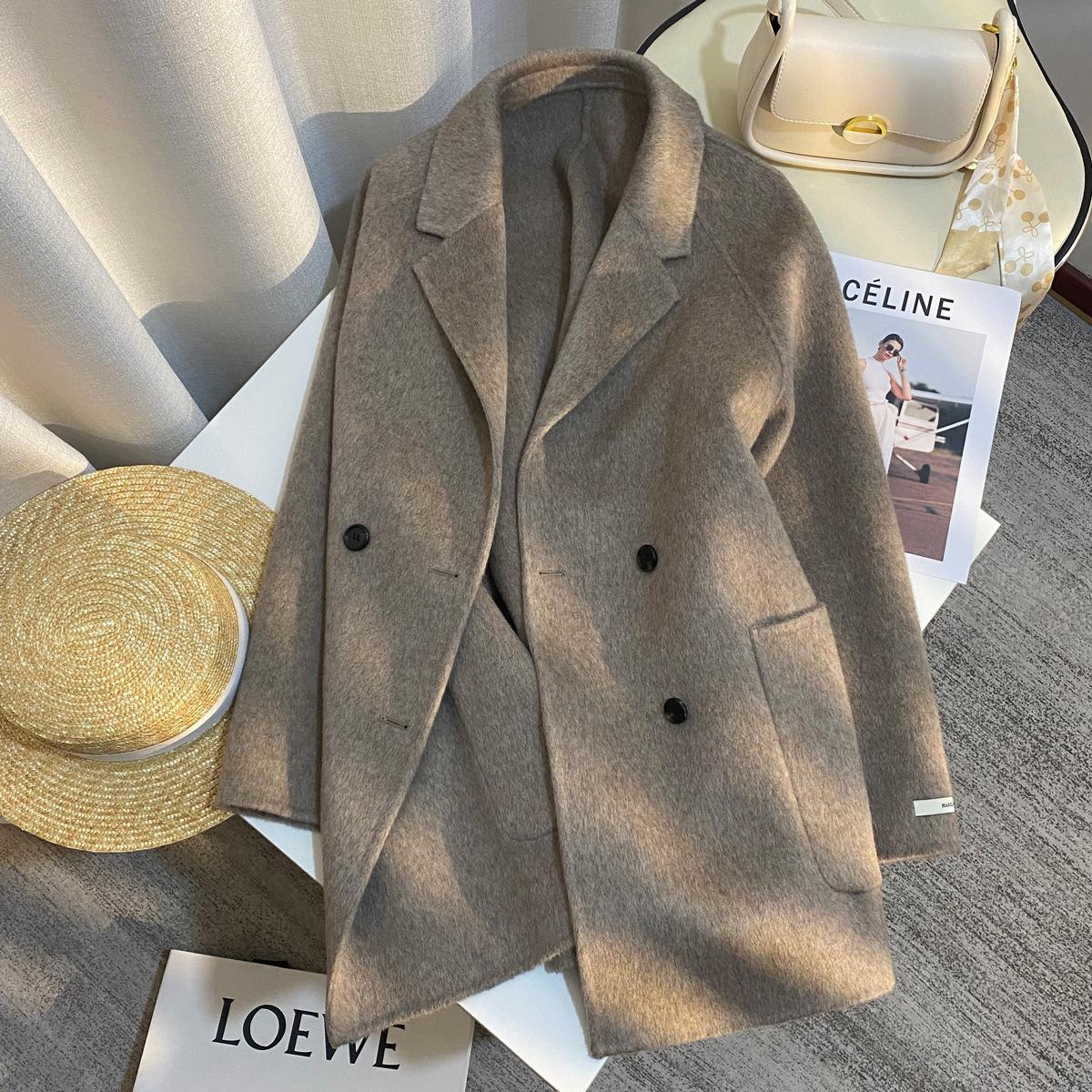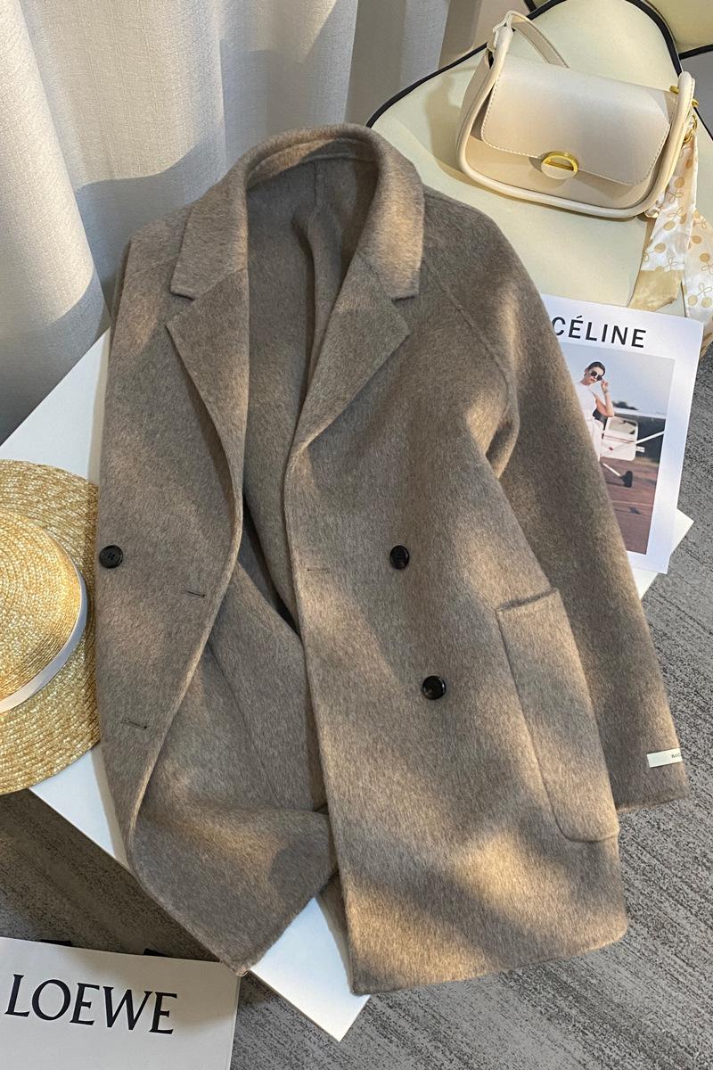 Abrigo de Lana Marrón de Doble Vista para Mujer 2024 Otoño e Invierno Nuevo Abrigo de Gama Alta de Estilo Británico de Largo Medio