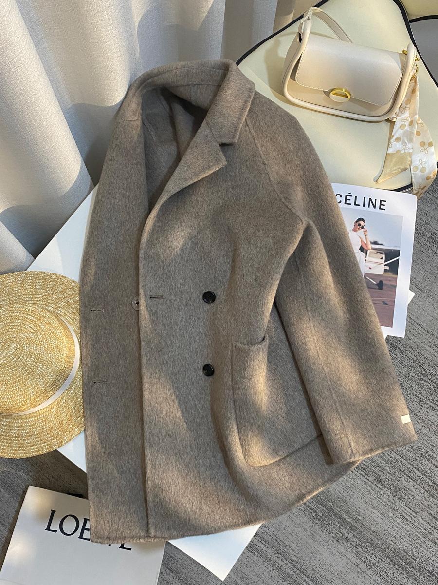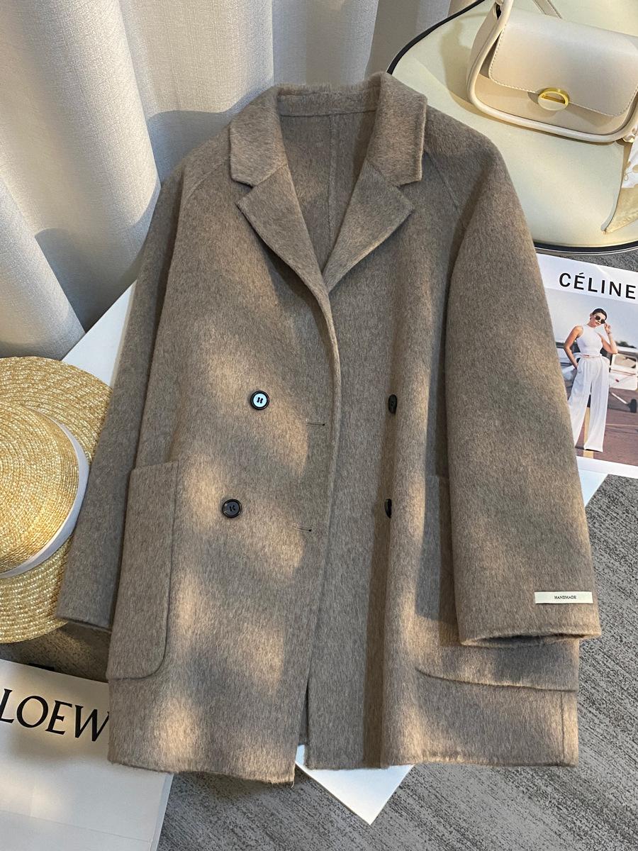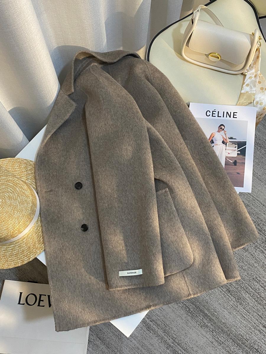 Abrigo de Lana Marrón de Doble Vista para Mujer 2024 Otoño e Invierno Nuevo Abrigo de Gama Alta de Estilo Británico de Largo Medio