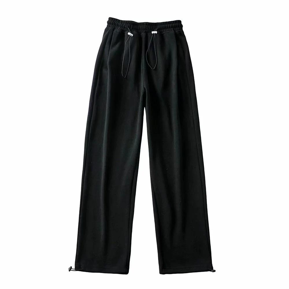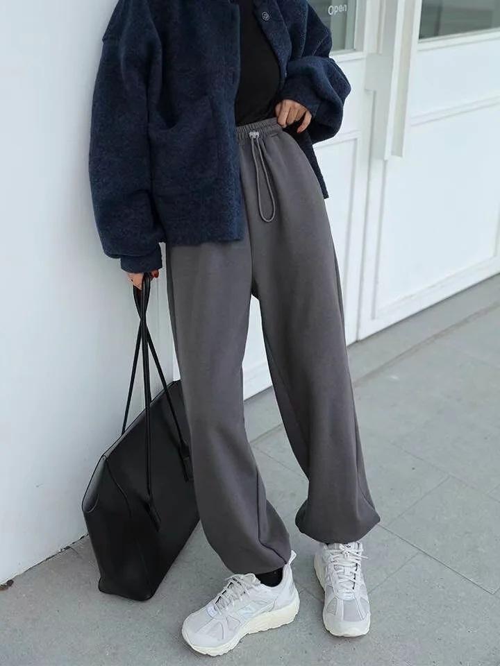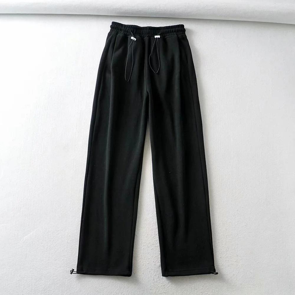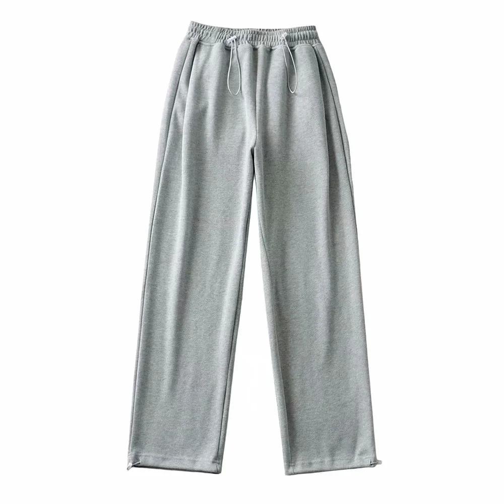 Pantalones deportivos holgados con cordón ajustable en la pierna, pantalones de fregona para mujer, pantalones deportivos de pierna ancha drapeados de moda explosiva de otoño.