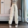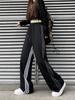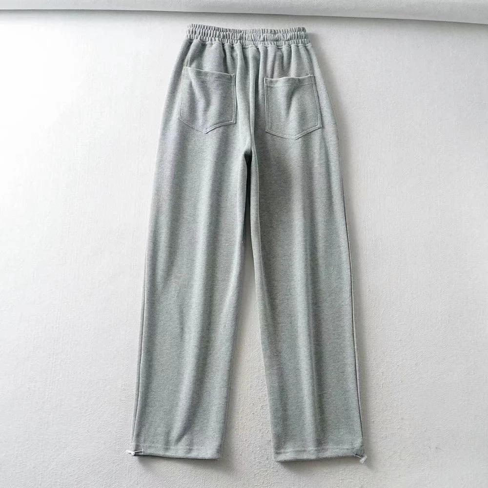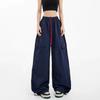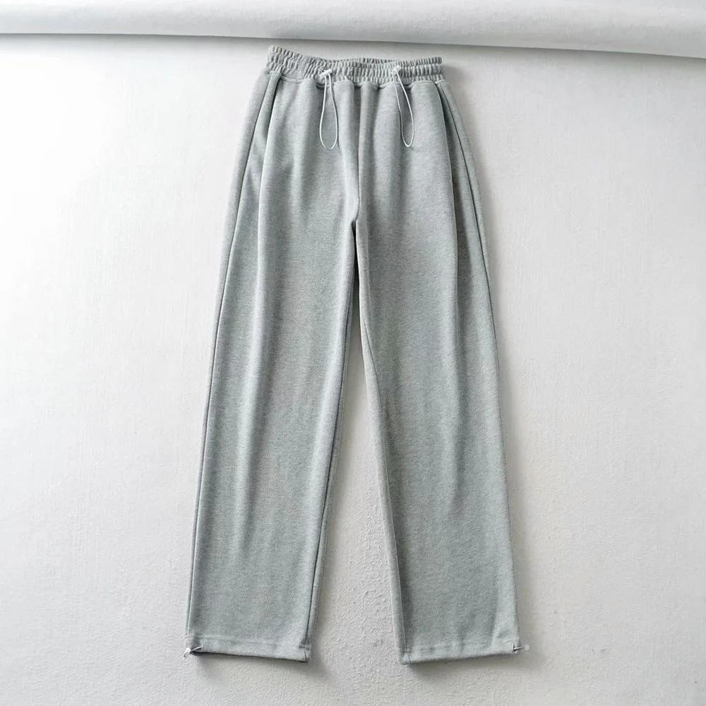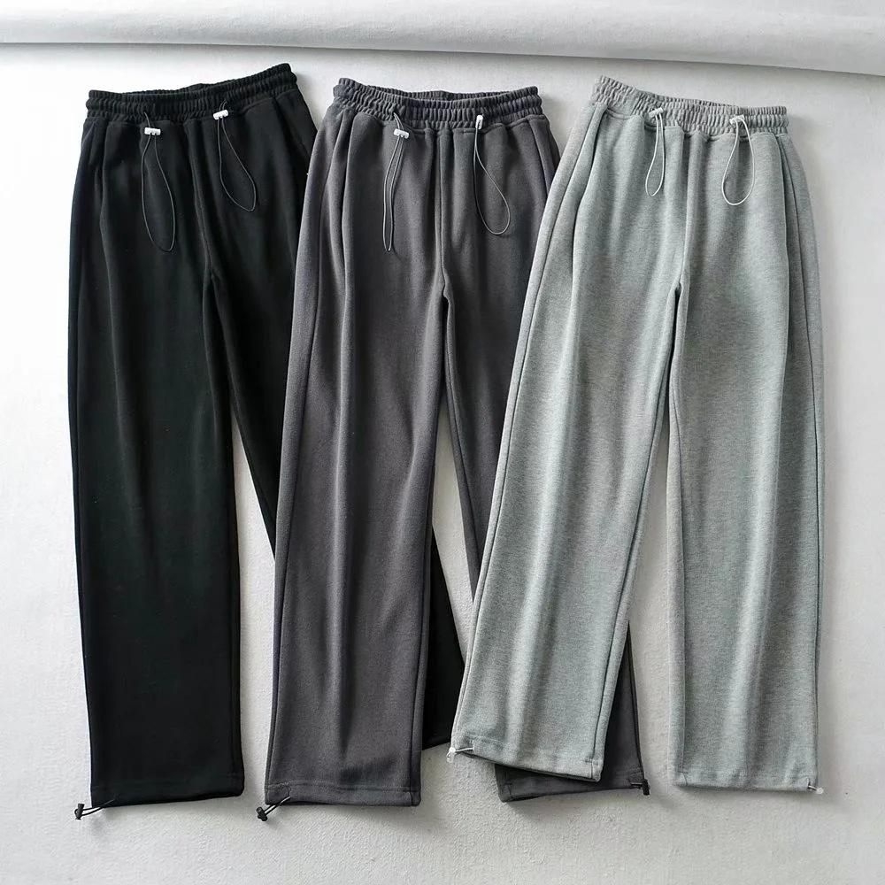 Pantalones deportivos holgados con cordón ajustable en la pierna, pantalones de fregona para mujer, pantalones deportivos de pierna ancha drapeados de moda explosiva de otoño.