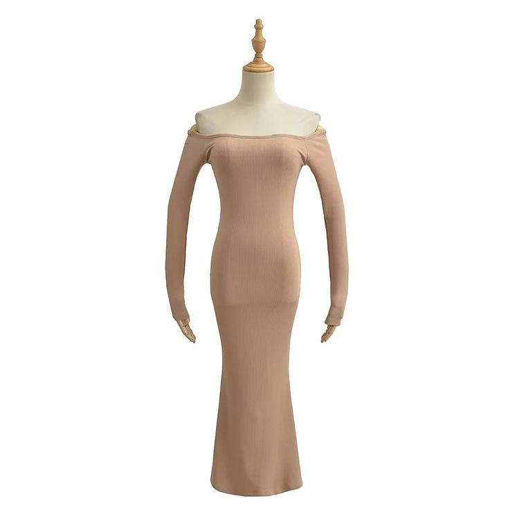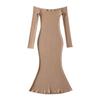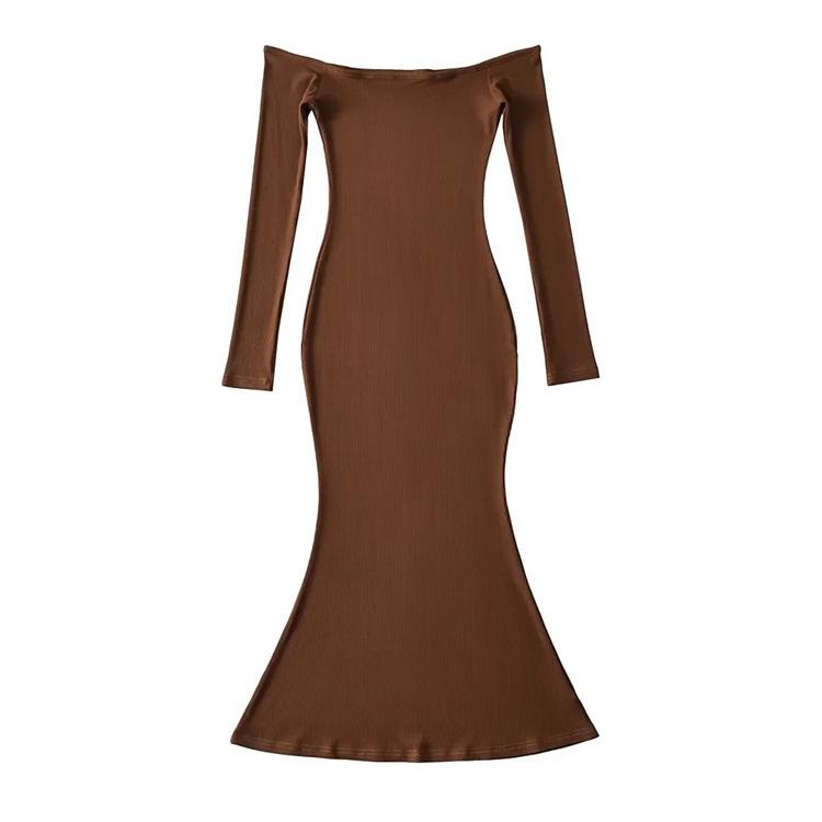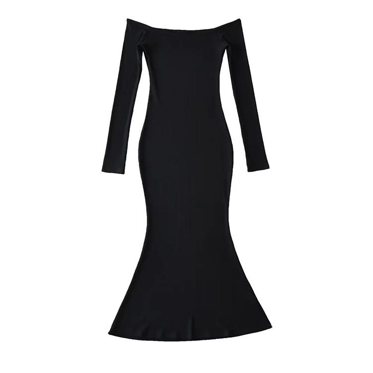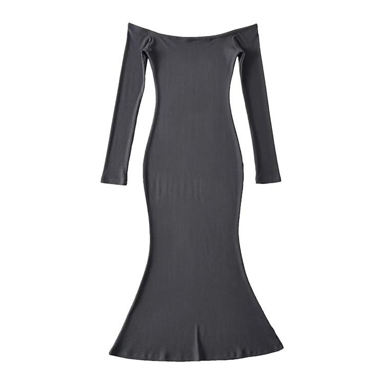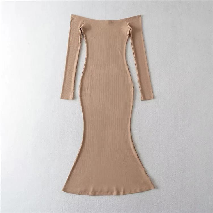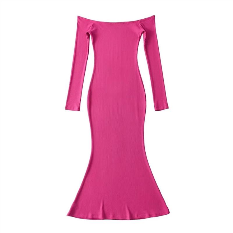 Vestido de color liso con hombros descubiertos y cola de pez, estilo europeo y americano, ajustado y sexy, para mujer