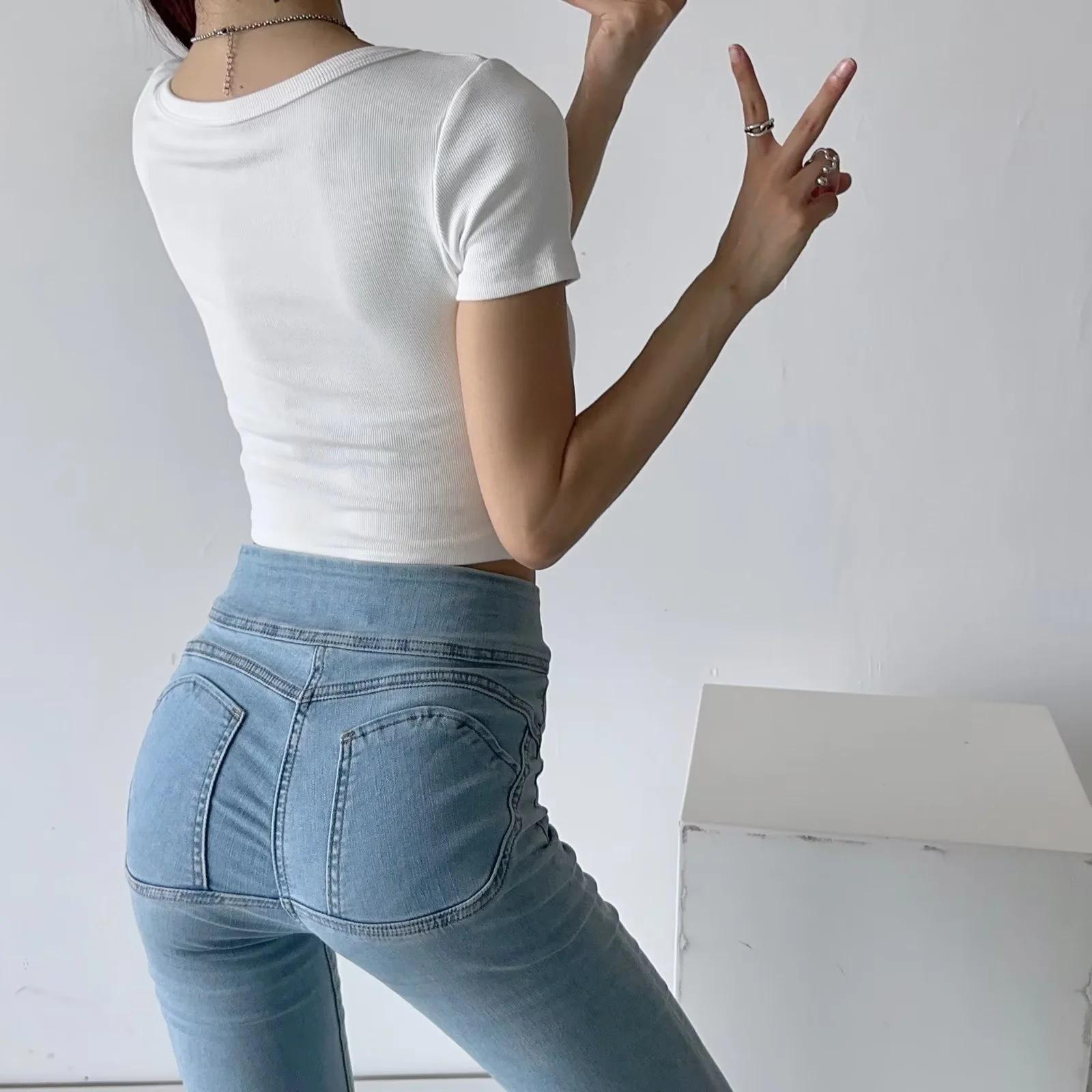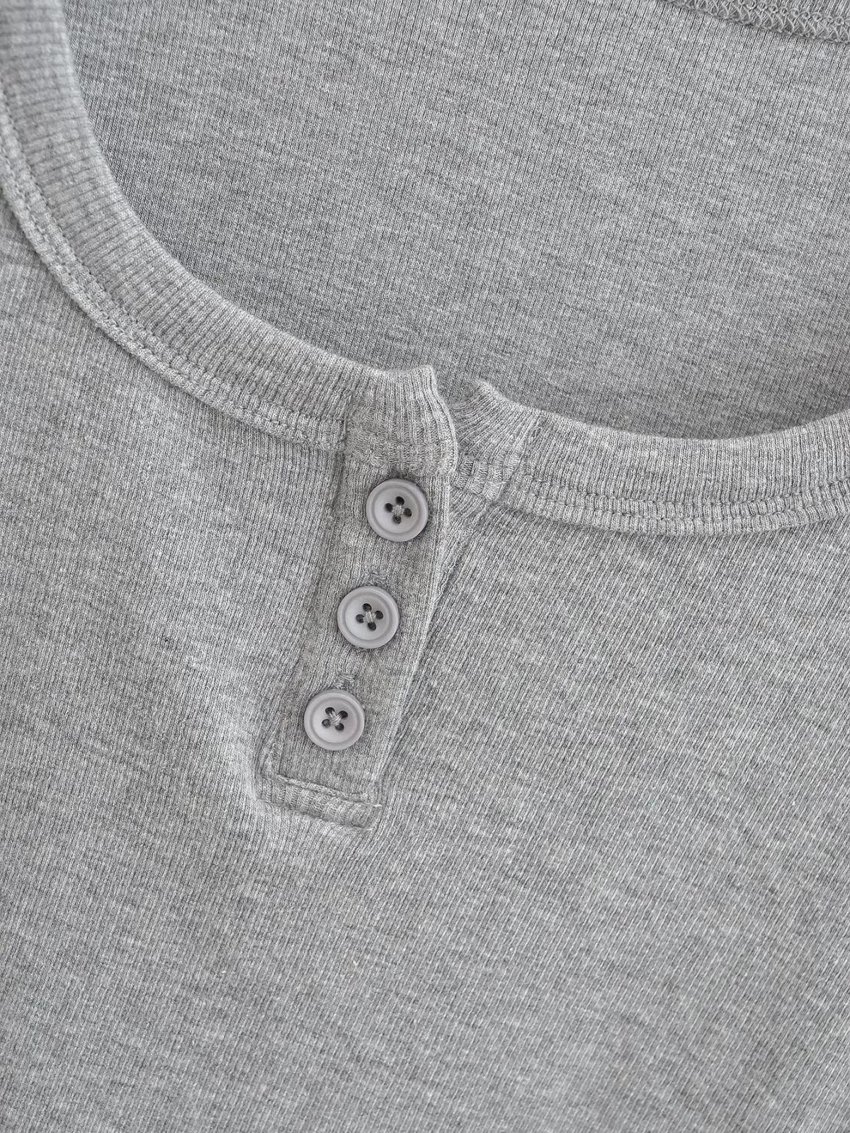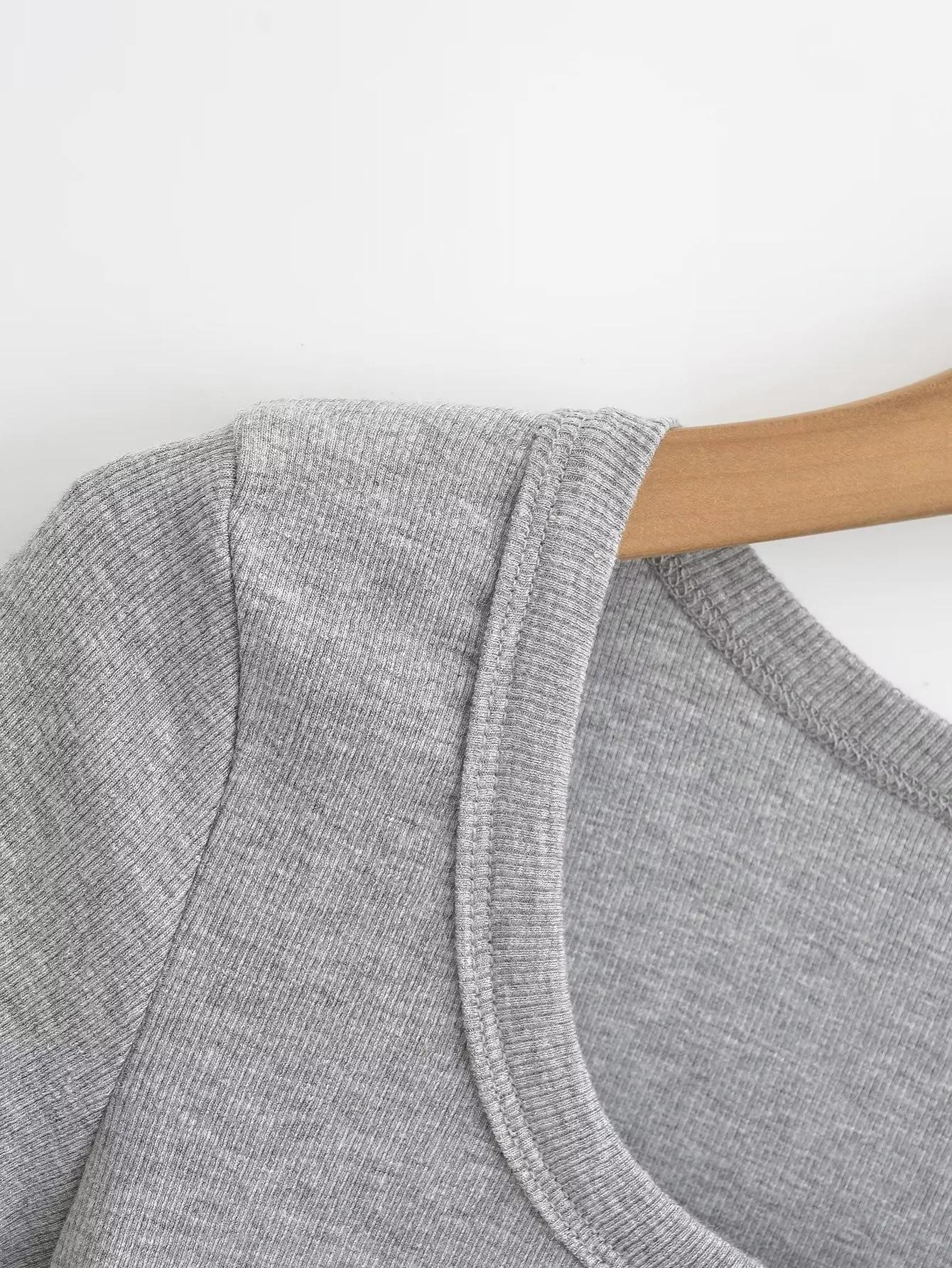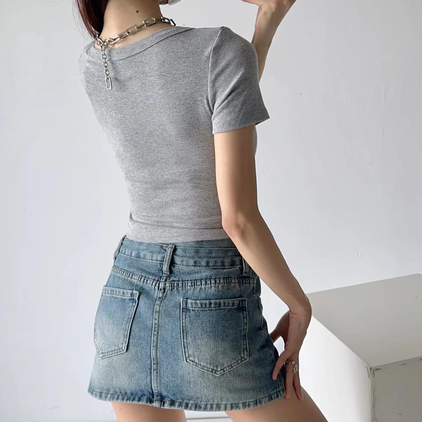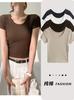 Camiseta de manga corta elástica con botones y cuello en U para mujer, camisa básica de color liso con hombros descubiertos, otoño 2023, top corto