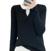 Camisa de punto de lana con cuello redondo de dos piezas falsas para mujer 24 primavera y otoño nuevo jersey ajustado que combina con todo estilo occidental suéter fino