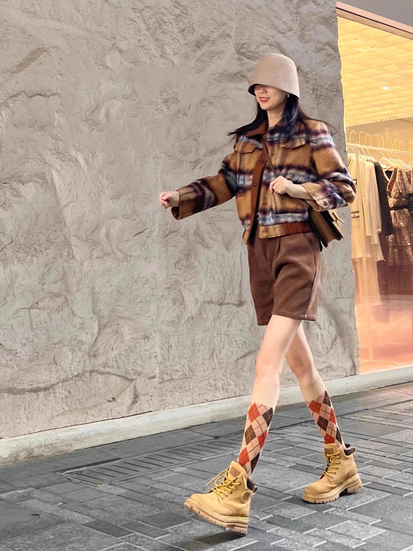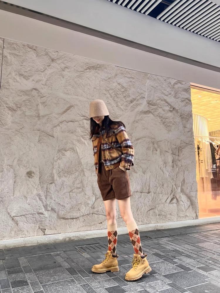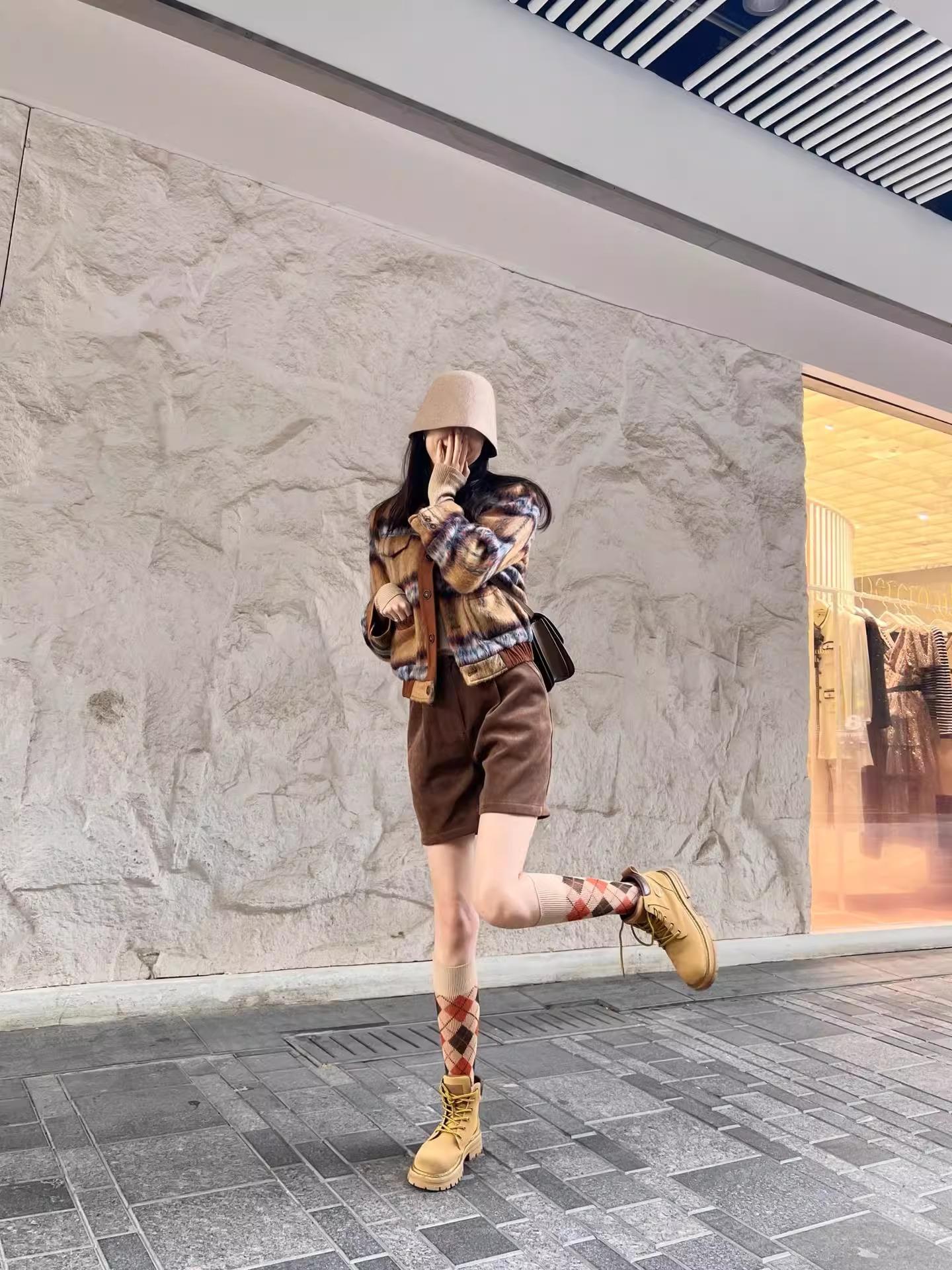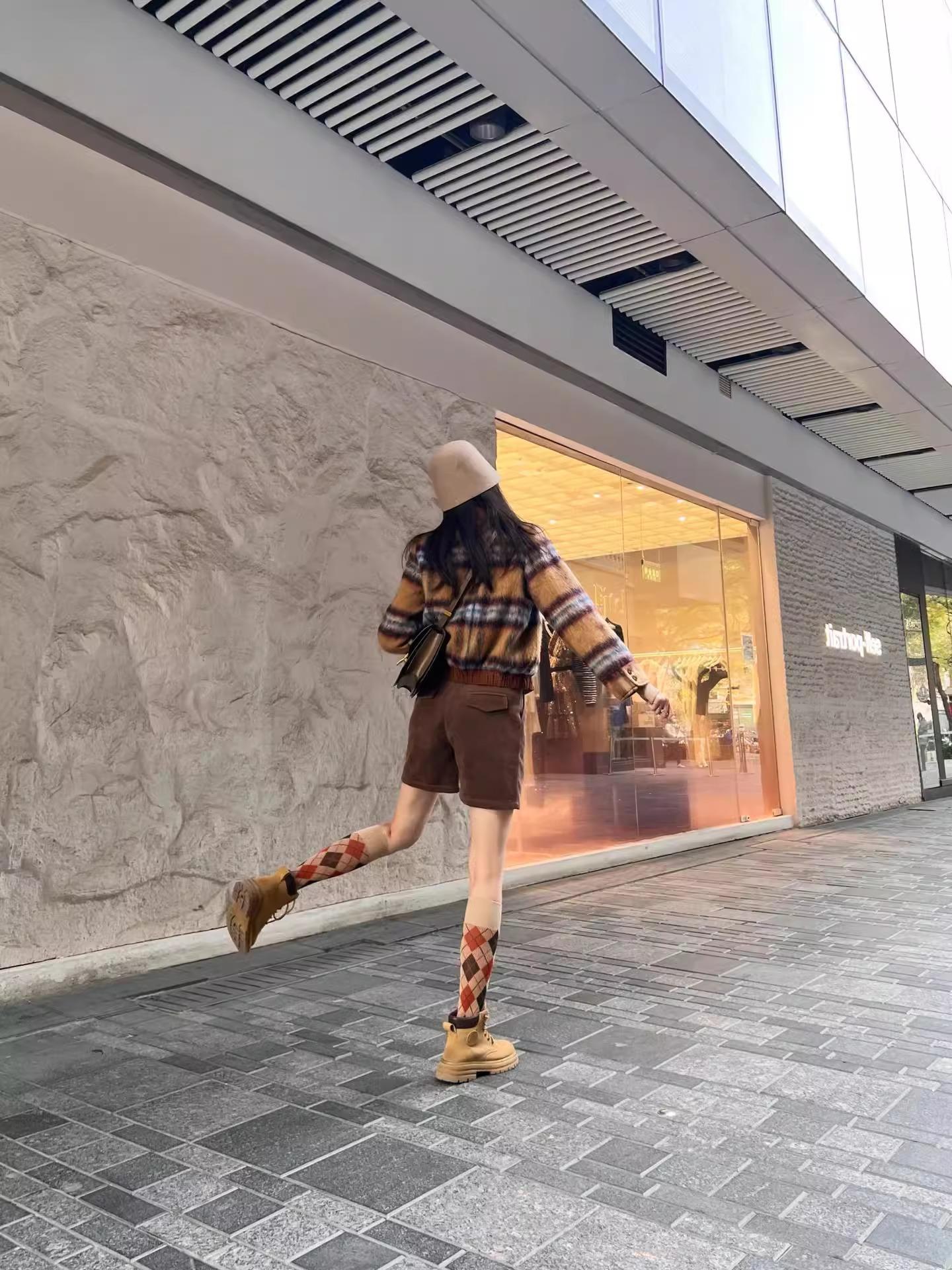Abrigo de Cuadros Marrones Corto de Alta Gama para Personas Pequeñas, Nuevo Estilo Otoño e Invierno para Mujer 2023 Diseño Popular Tops Nicho