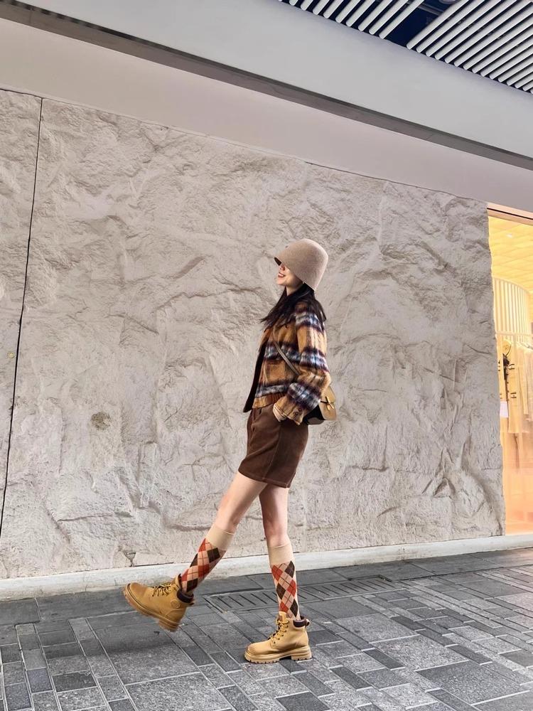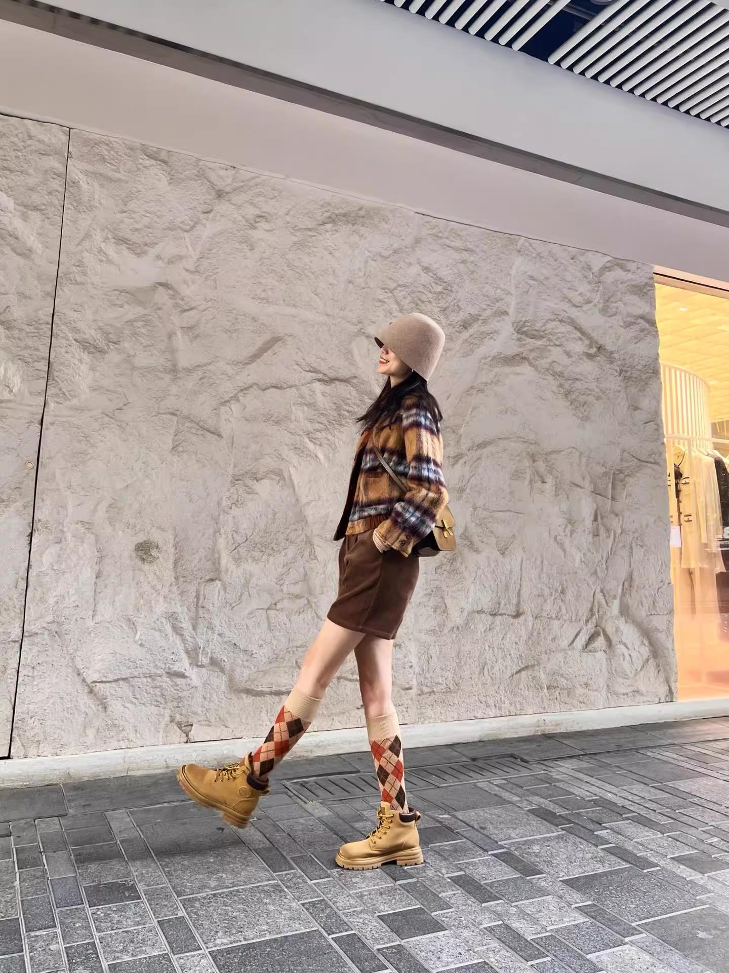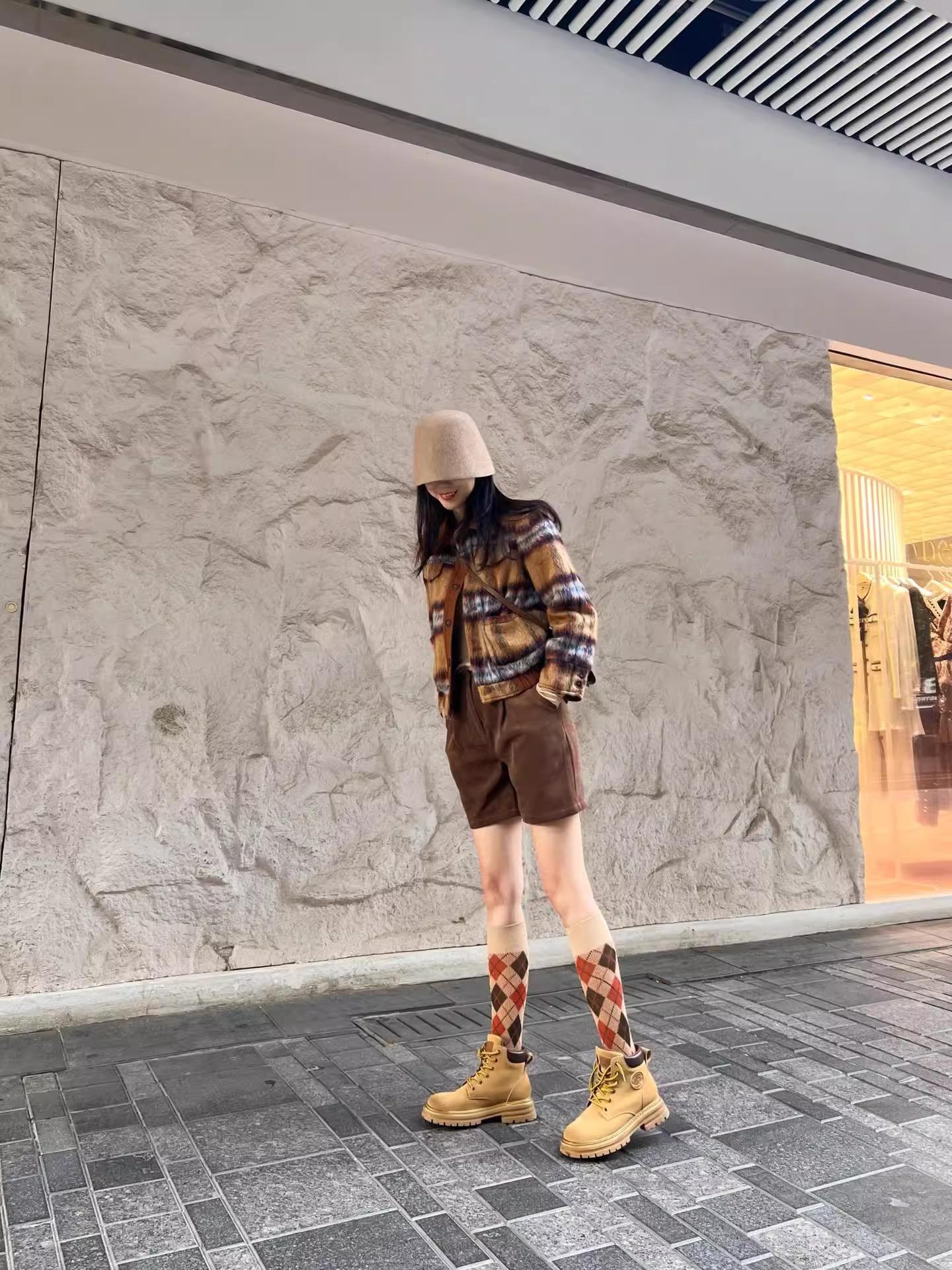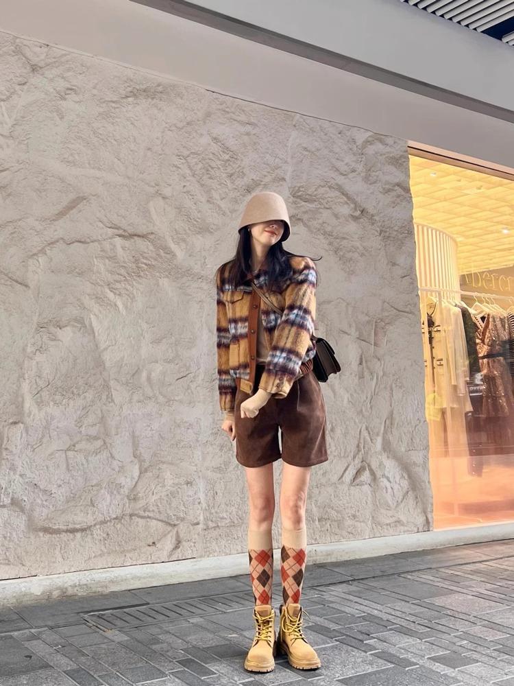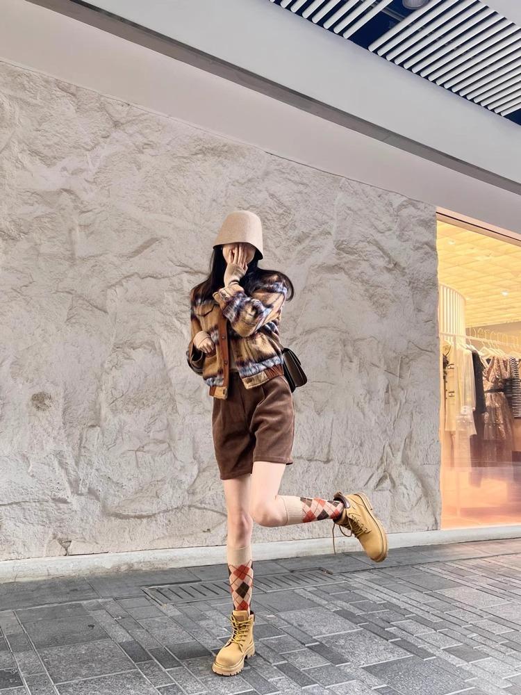 Abrigo de Cuadros Marrones Corto de Alta Gama para Personas Pequeñas, Nuevo Estilo Otoño e Invierno para Mujer 2023 Diseño Popular Tops Nicho