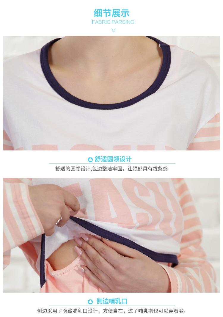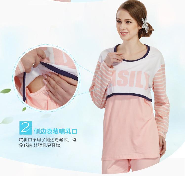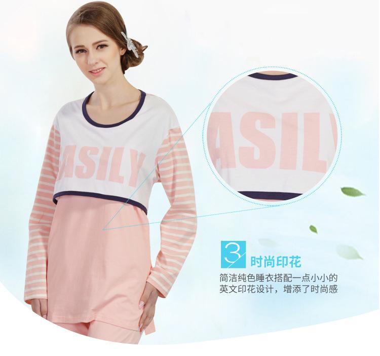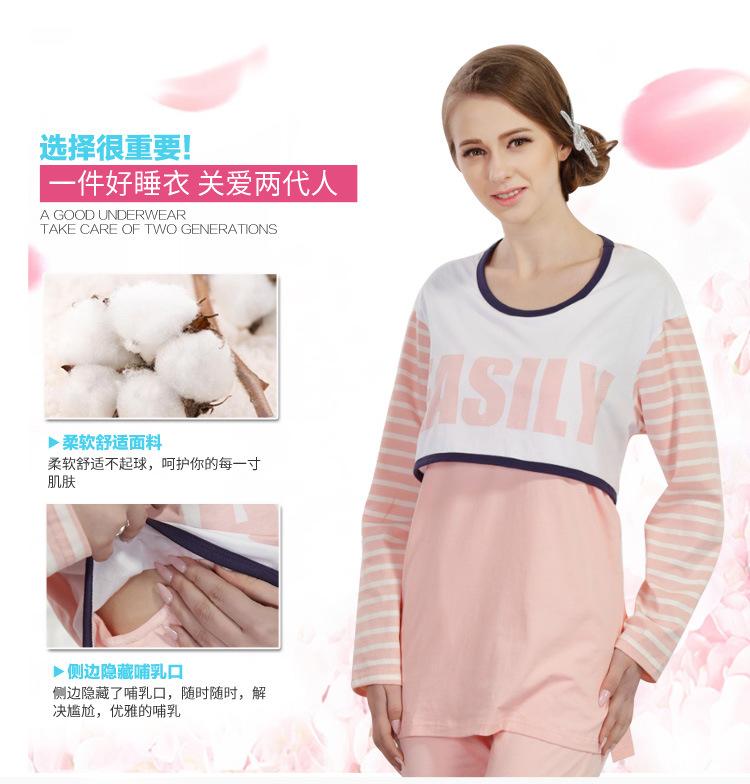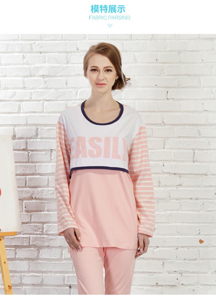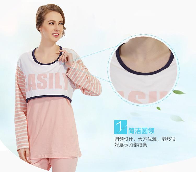 Set para Hogar de Ancianos de Cuello Redondo a Rayas en Color de Contraste Ropa de Confinamiento para Maternidad Suéter de Lactancia de Algodón Puro Manga Larga