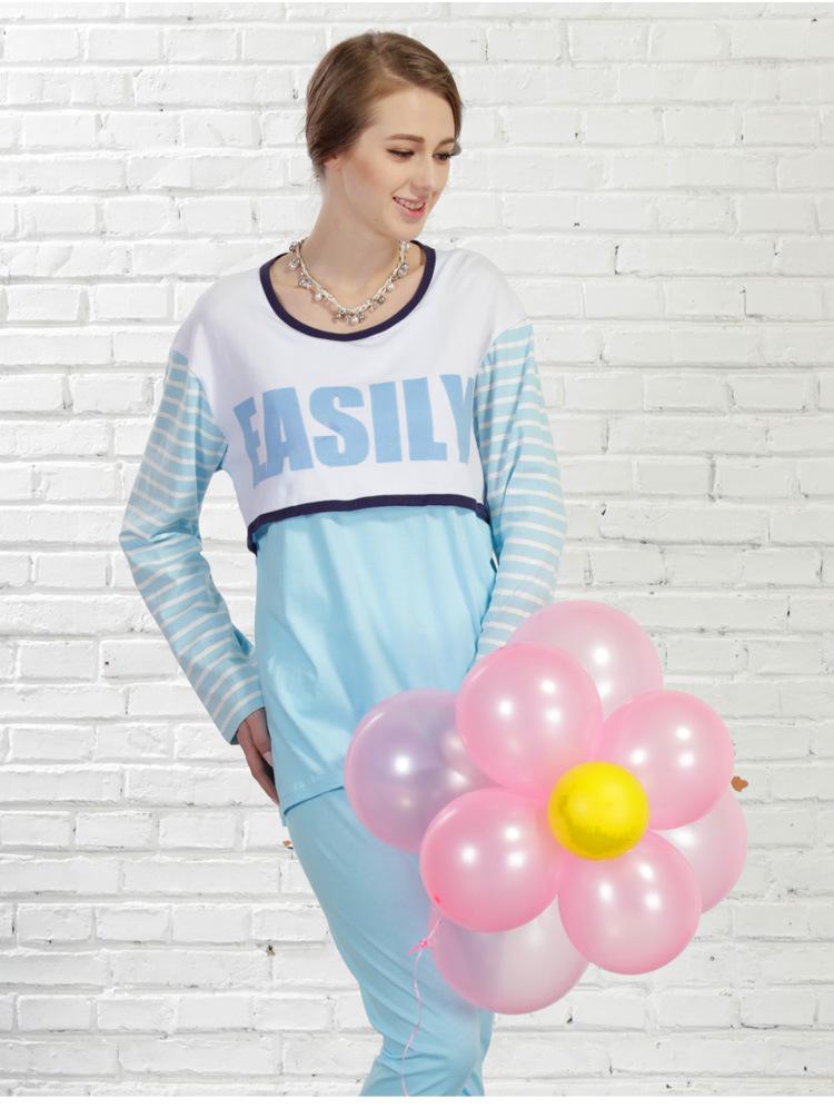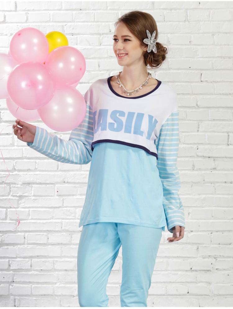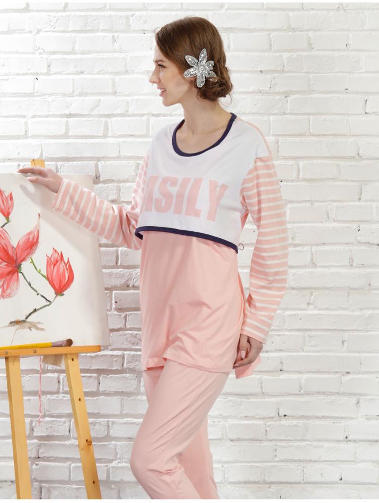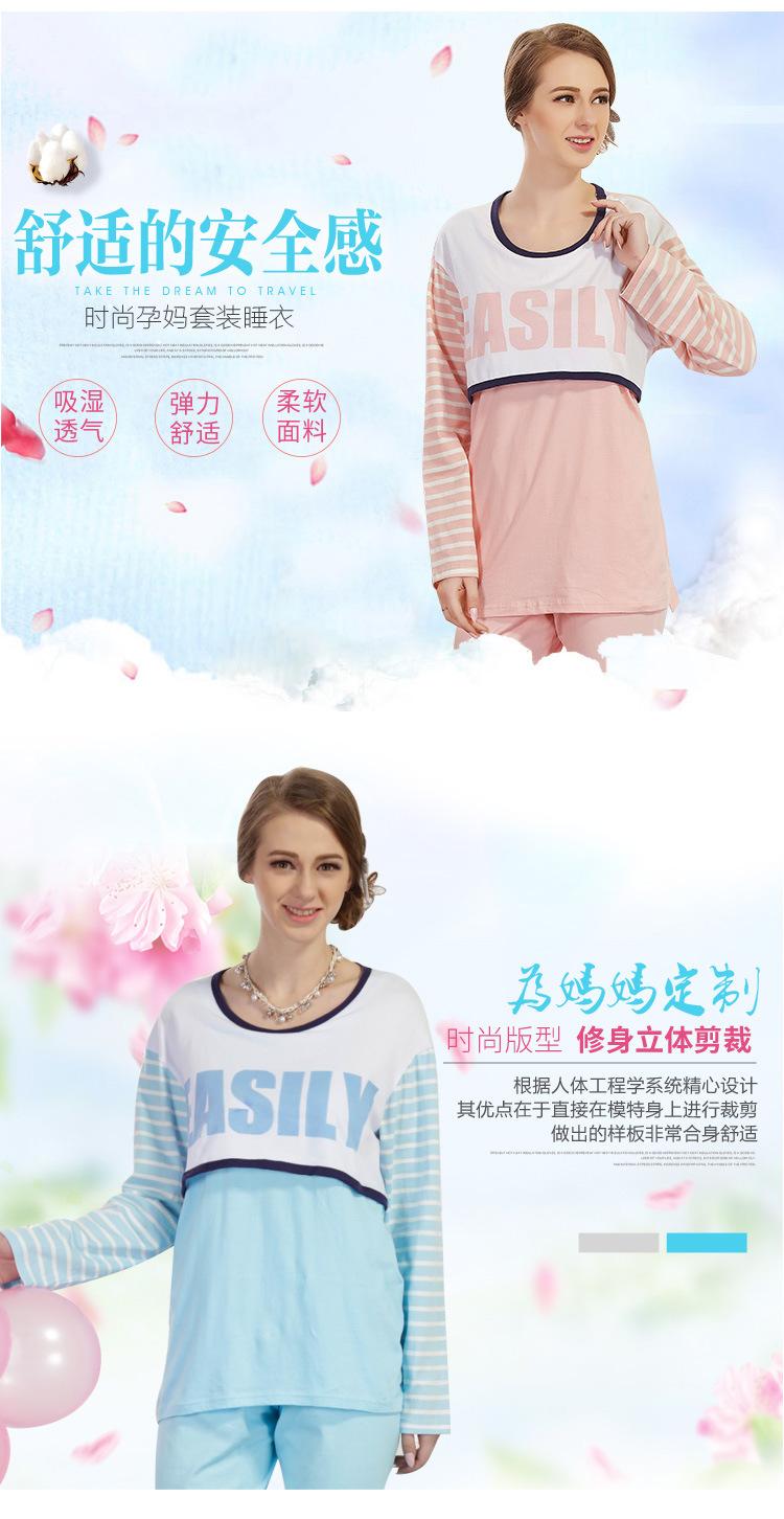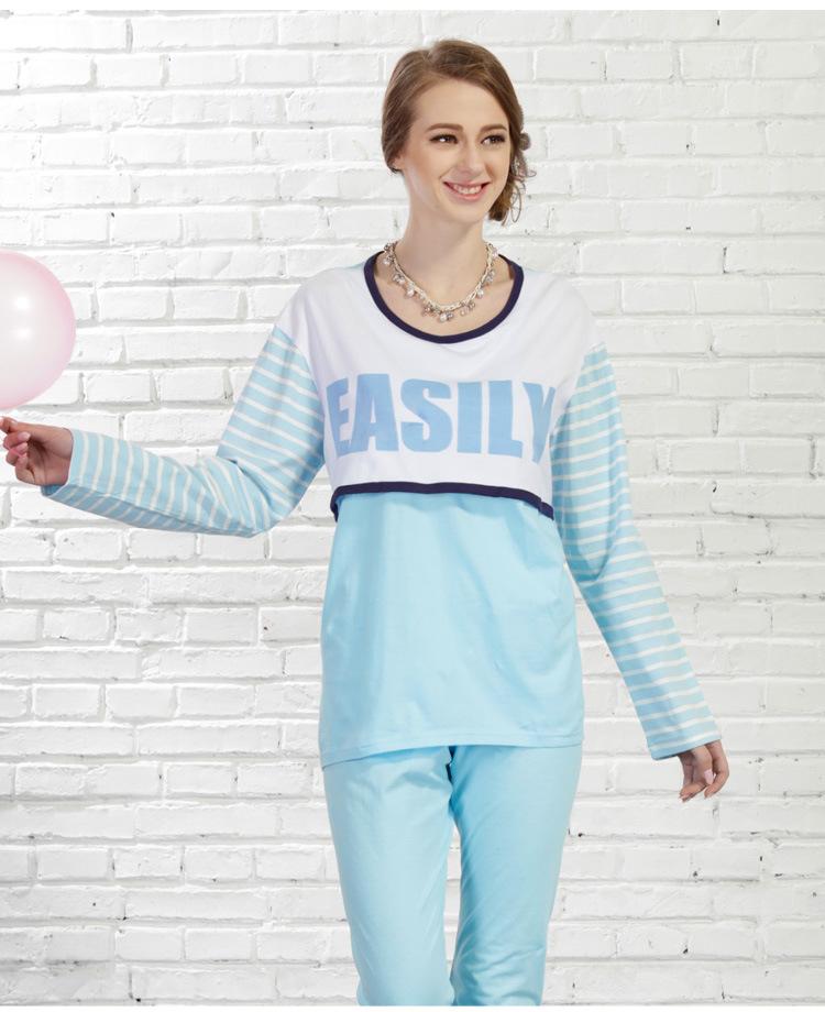 Set para Hogar de Ancianos de Cuello Redondo a Rayas en Color de Contraste Ropa de Confinamiento para Maternidad Suéter de Lactancia de Algodón Puro Manga Larga