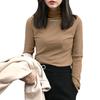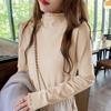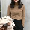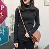 Camiseta básica de cuello medio alto para mujer, jersey de otoño e invierno con letras bordadas, corte entallado, color liso, de manga larga, para estudiantes, 2019