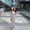 Traje Casual de Otoño e Invierno Nuevo 2024 para Mujer, Falso Dos Piezas Estilo Coreano Elegante Pantalón de Punto de Pierna Ancha, Conjunto de Dos Piezas Moderno que Reduce la Edad