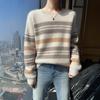 Suéter de cachemira de cuello redondo para mujer, jersey de cachemira pura, jersey holgado de primavera, top versátil, camisa de fondo de punto