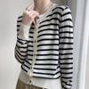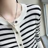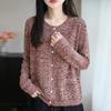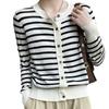 2025 Nuevo Otoño e Invierno Suéter Tejido de Lana de Manga Larga con Cuello Redondo Chaqueta Cárdigan Tejida a Rayas con Bloques de Color Moda para Mujer