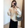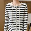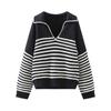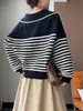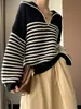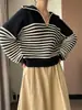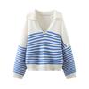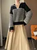 Suéter de Punto a Rayas con Cuello en V Mengzi Xi, Estilo Holgado y Casual, Bloque de Color, Nuevo Suéter de Otoño e Invierno Ajustado 30% Lana X270