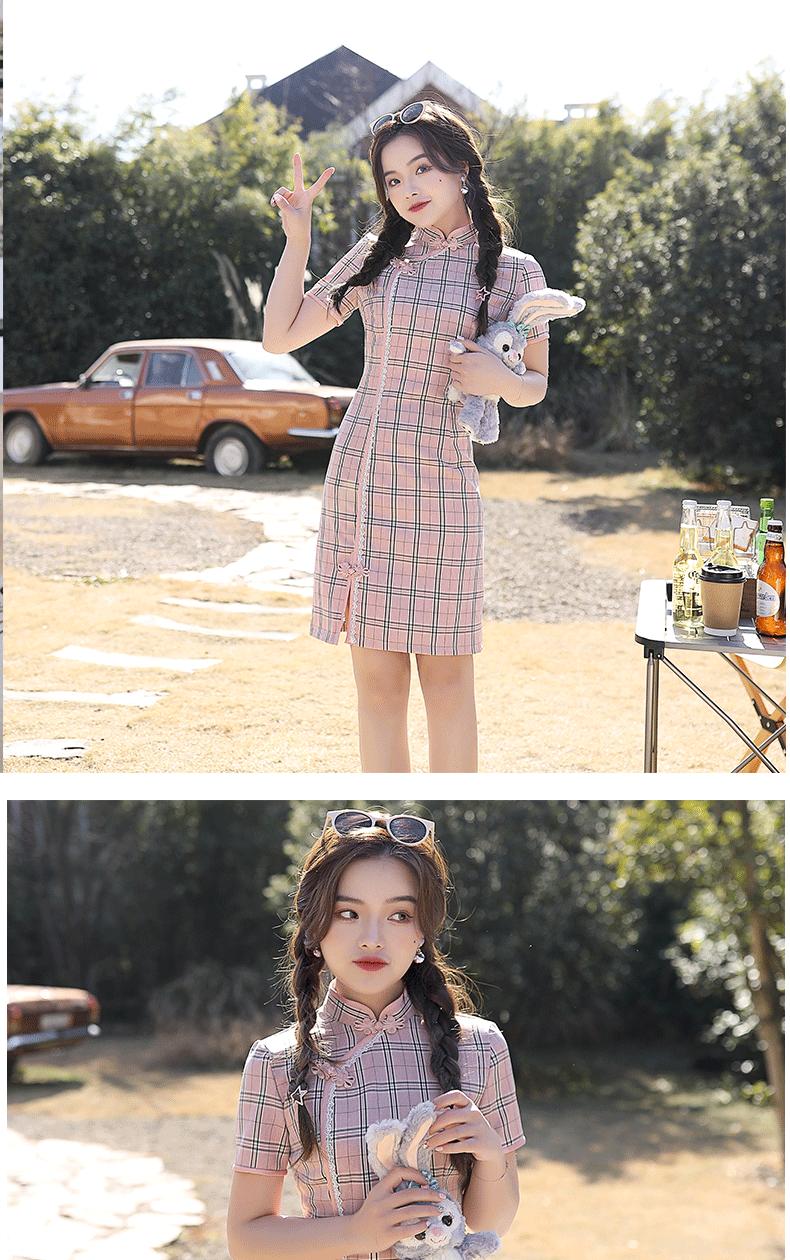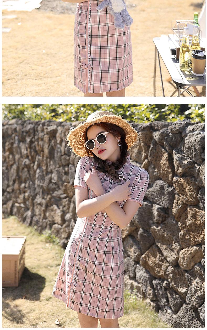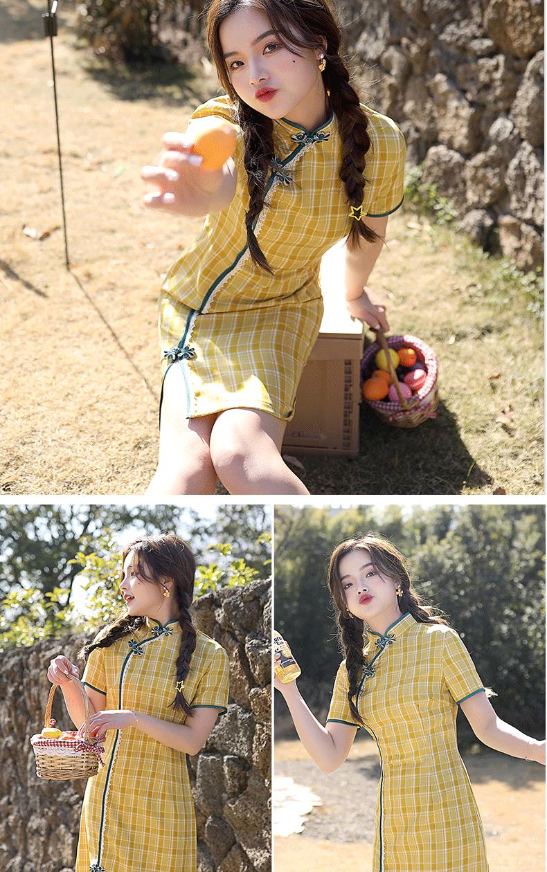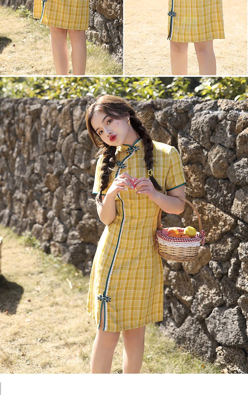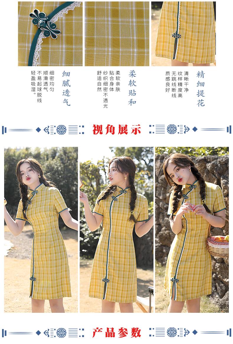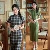 Vestido cheongsam corto a cuadros con abertura frontal, primavera y verano 2023, estilo chino, fresco y mejorado para niñas.