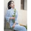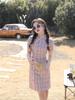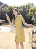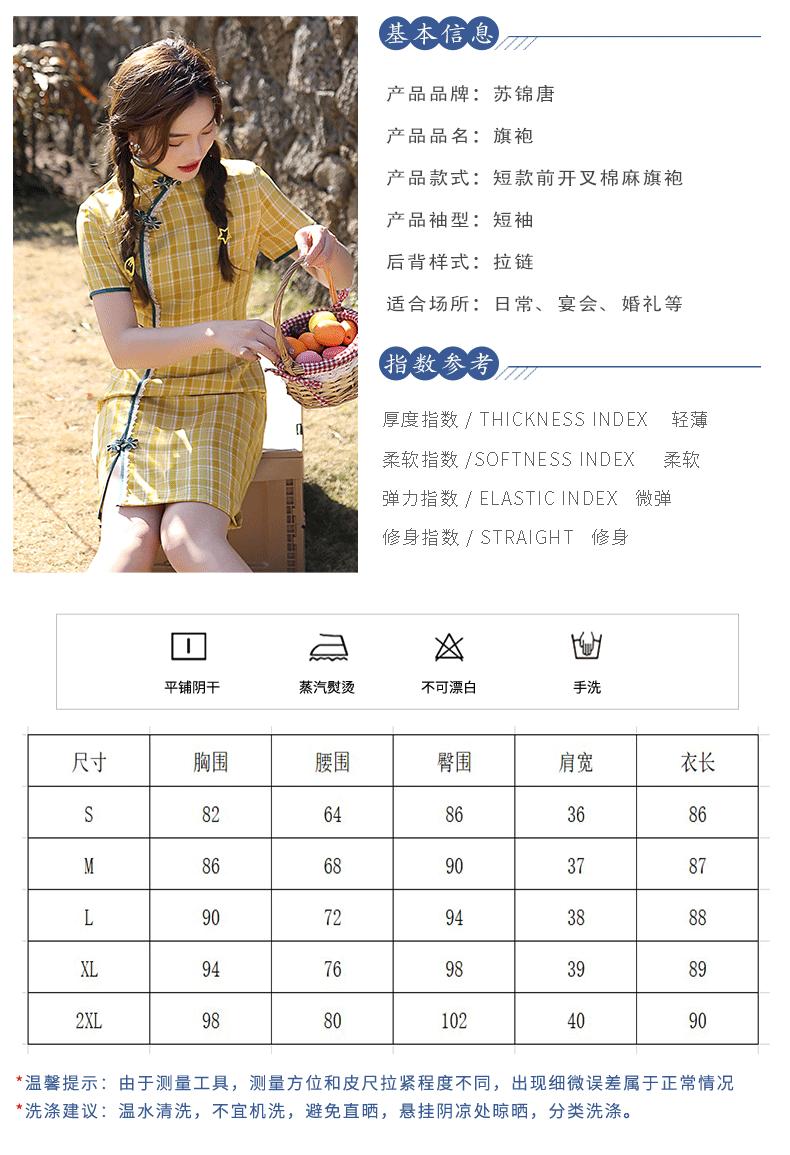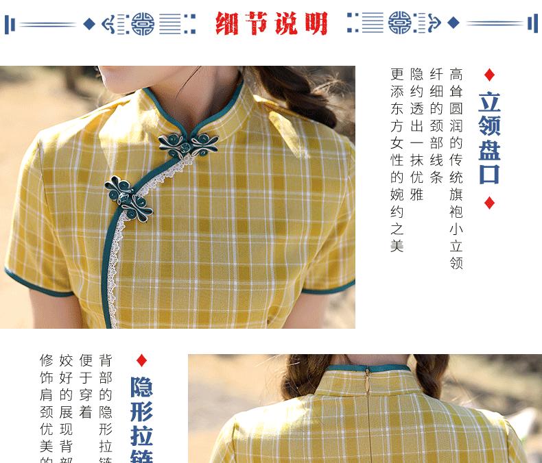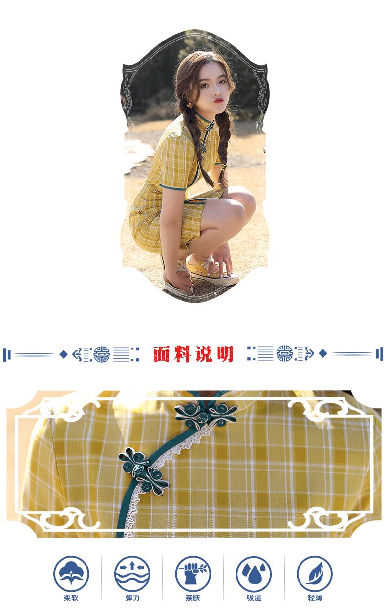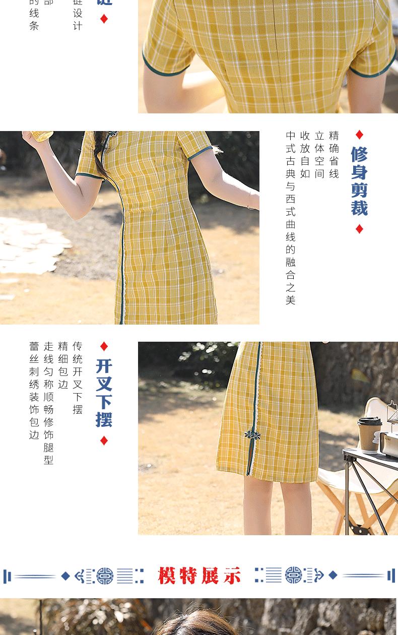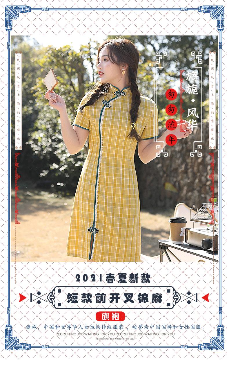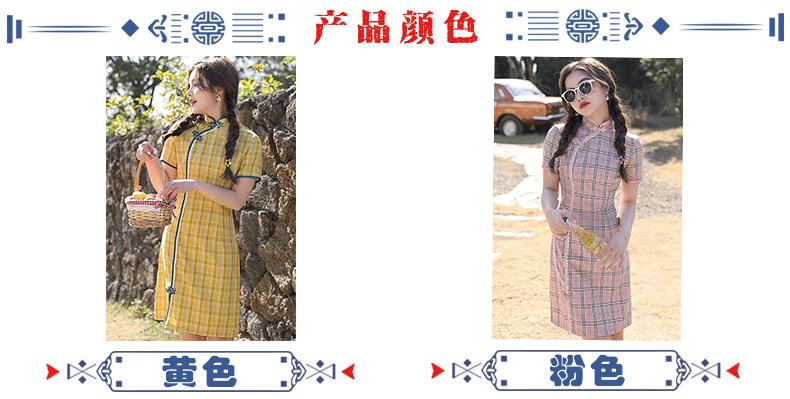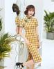 Vestido cheongsam corto a cuadros con abertura frontal, primavera y verano 2023, estilo chino, fresco y mejorado para niñas.