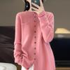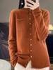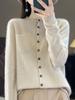 Nuevo Cárdigan de Otoño 100% Lana para Mujer, Cuello Redondo, Tejido de Punto de Lana de Moda con Múltiples Botones, Chaqueta de Prenda de una Sola Línea sin Costuras