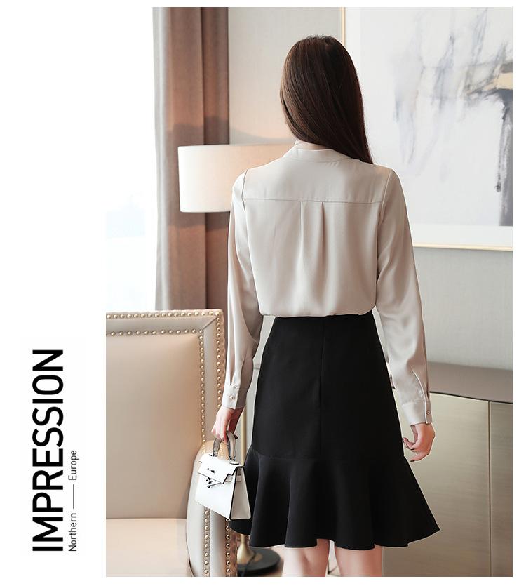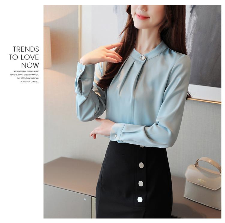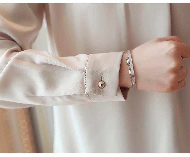Camisa Profesional Nueva Otoño 2025 Diseño Nicho para Mujer Estilo Coreano Manga Larga Satén Chifón Top Pulóver para Mujer