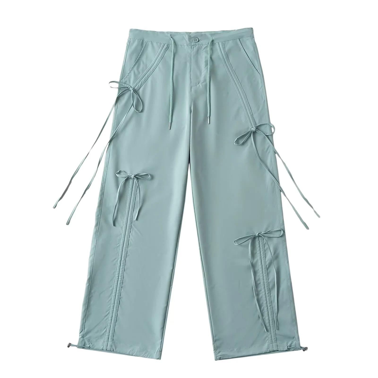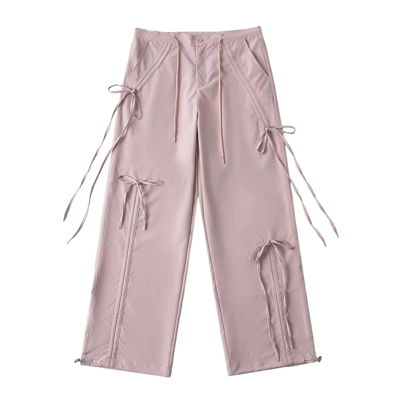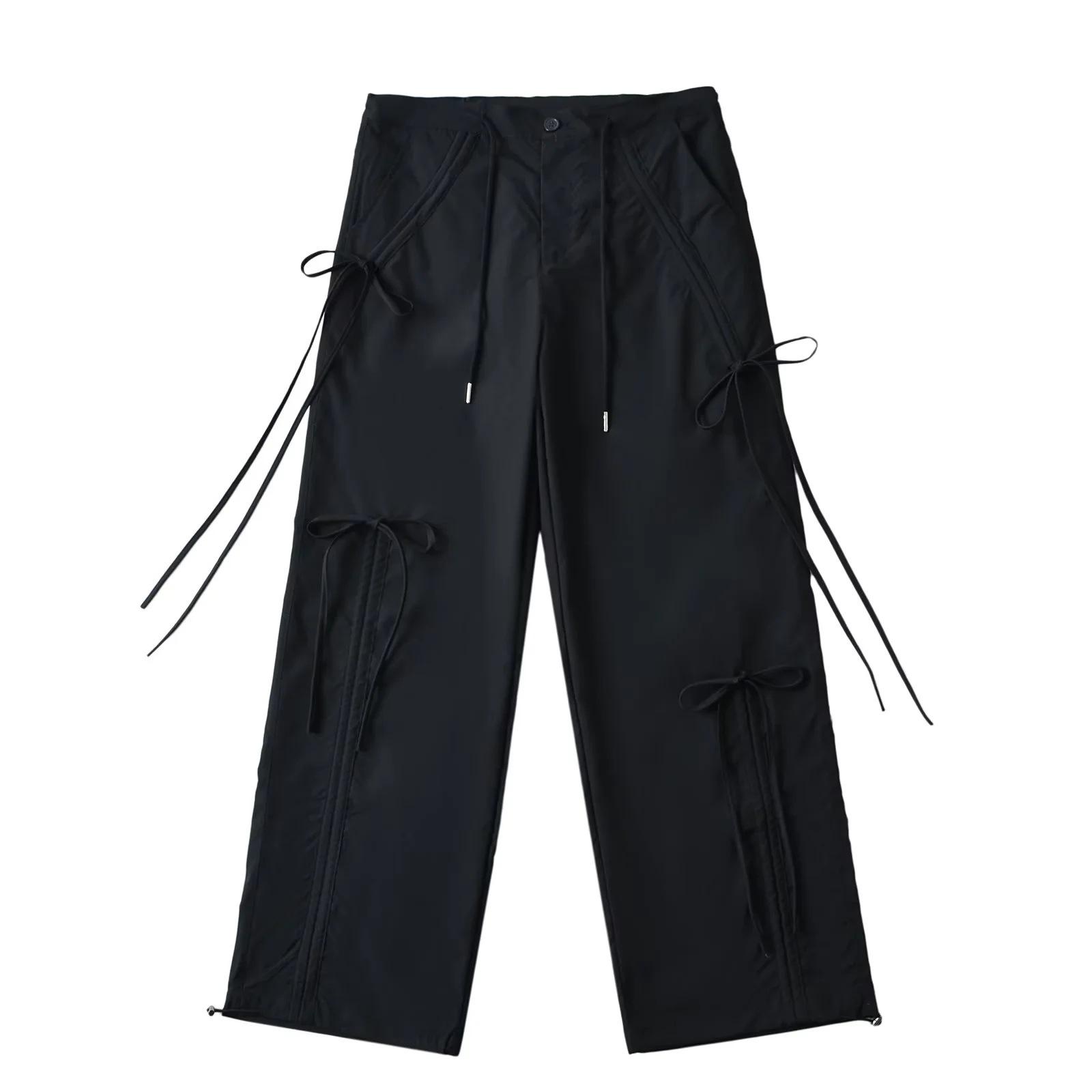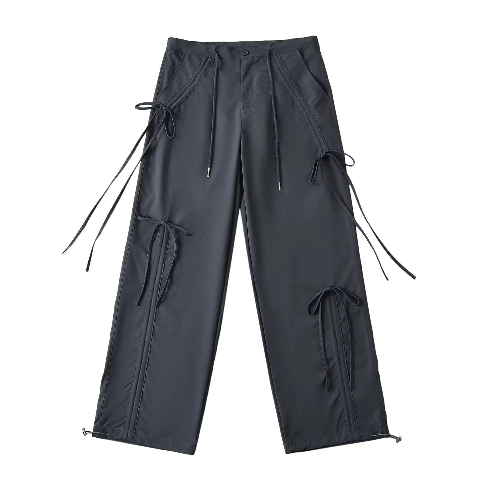 Monos americanos con cordones para mujer, pantalones casuales holgados de estilo hip hop con cordón y tobillos rectos, nuevo diseño 2024