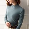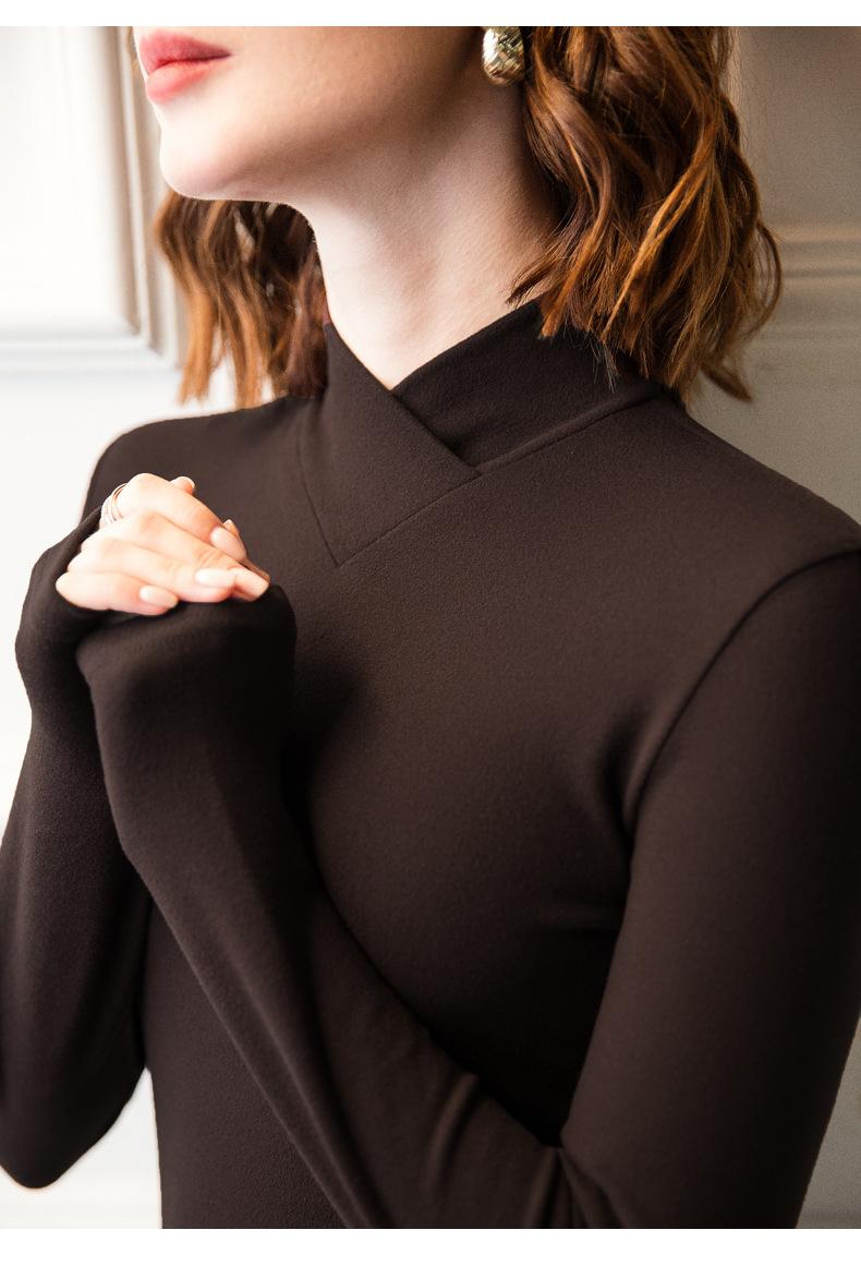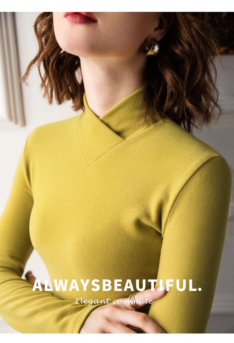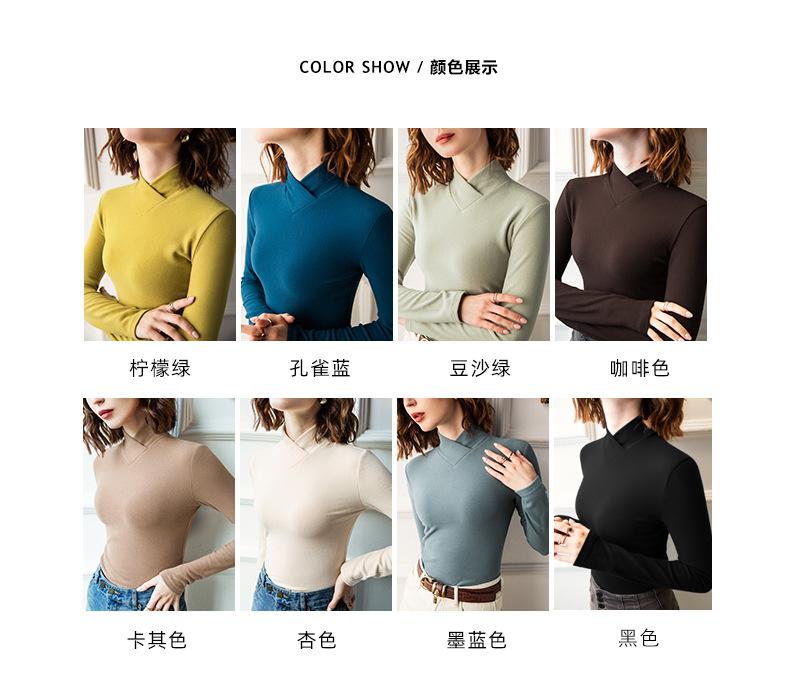 Camiseta interior de terciopelo de doble cara con camisa pequeña de estilo occidental, top versátil de media tortuga de cuello alto grueso para otoño e invierno Nuevo