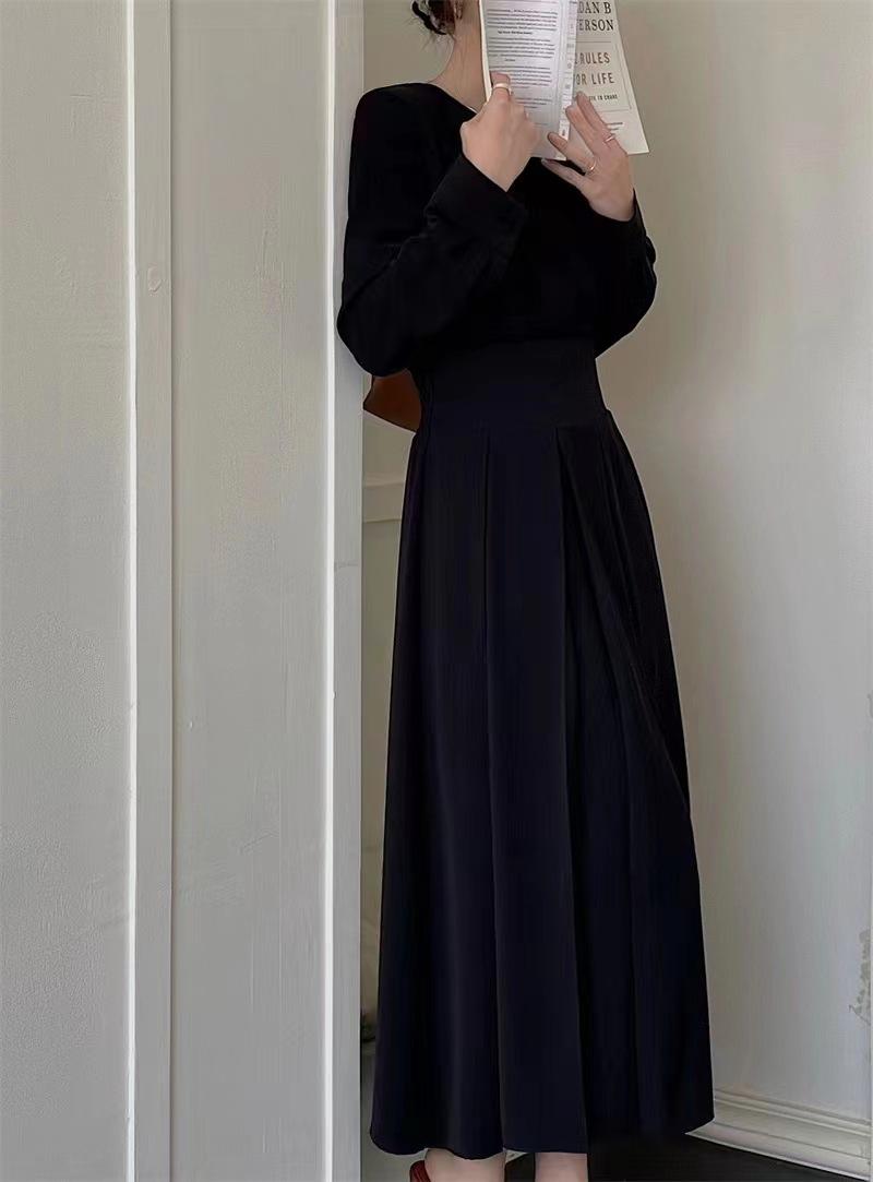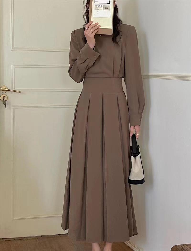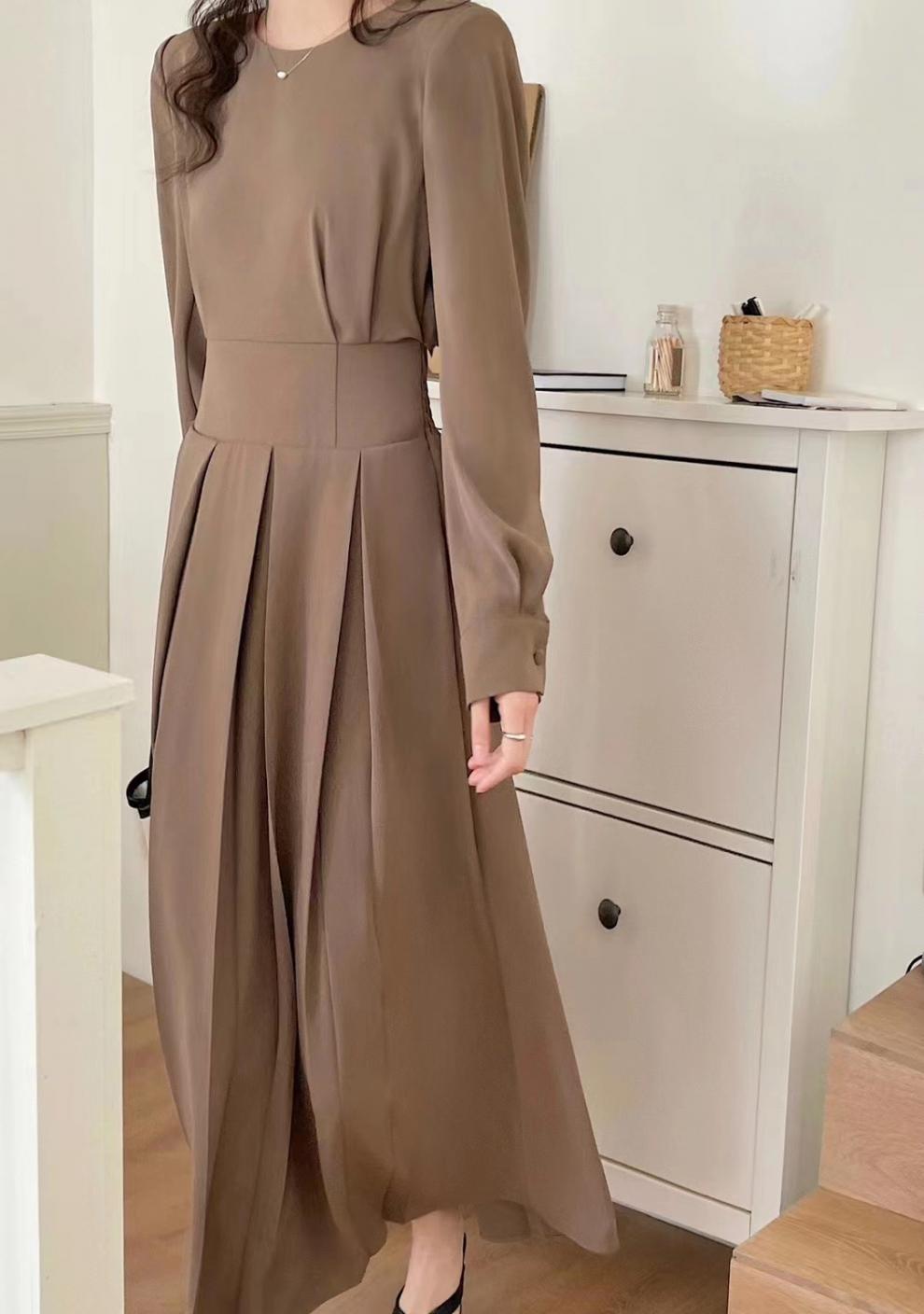 Vestido plisado de cintura alta para mujer, de color liso, con manga larga y cintura alta para otoño e invierno.