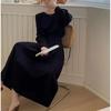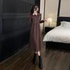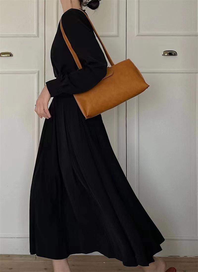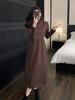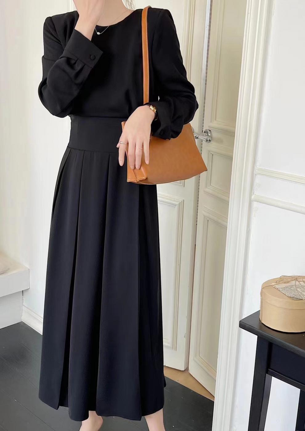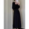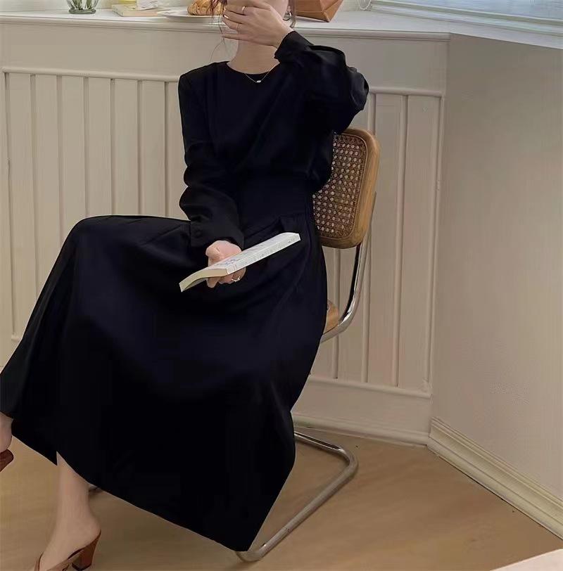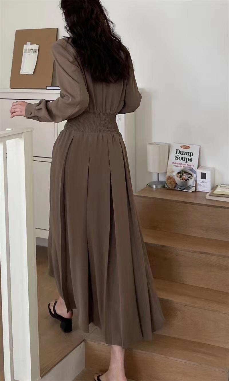 Vestido plisado de cintura alta para mujer, de color liso, con manga larga y cintura alta para otoño e invierno.
