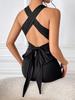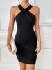 Otoño e Invierno 2025 Nueva Ropa Transfronteriza Europea y Americana Sexy Tirantes Descubiertos Elástico Elegante Vestido Halter Cubre Caderas