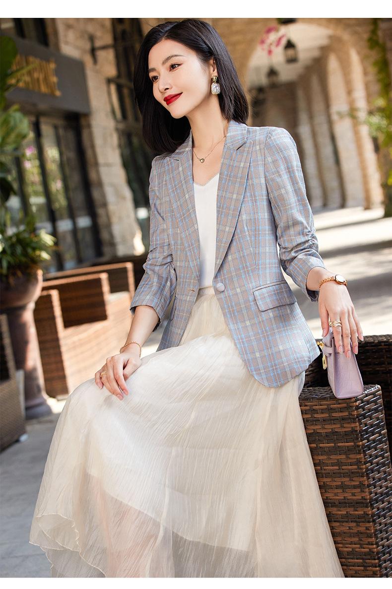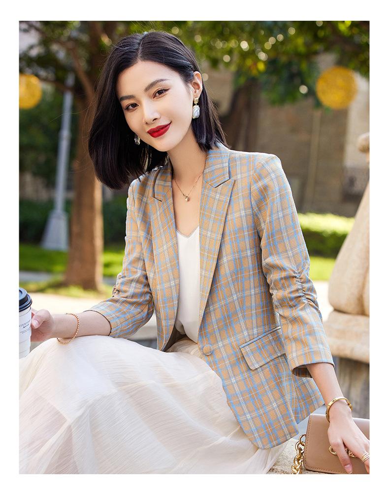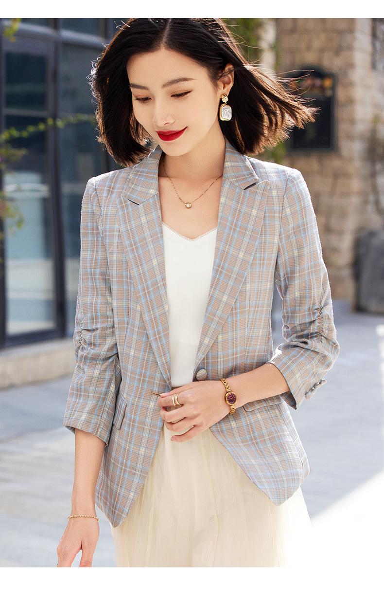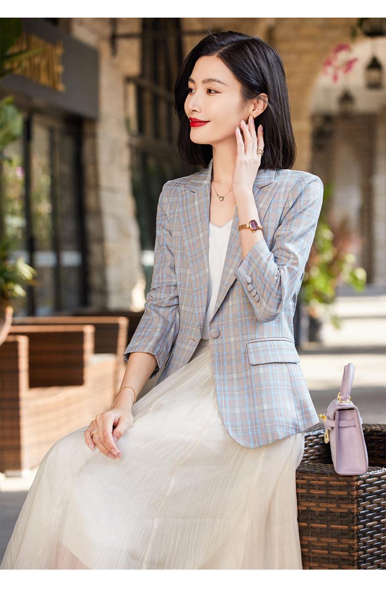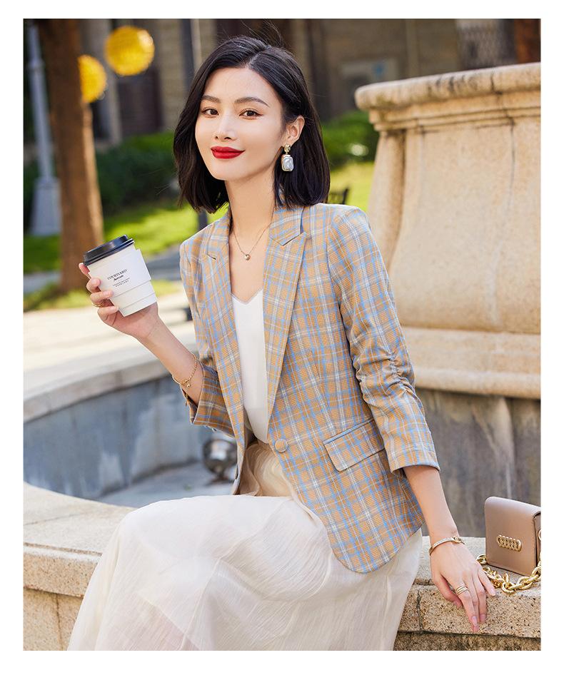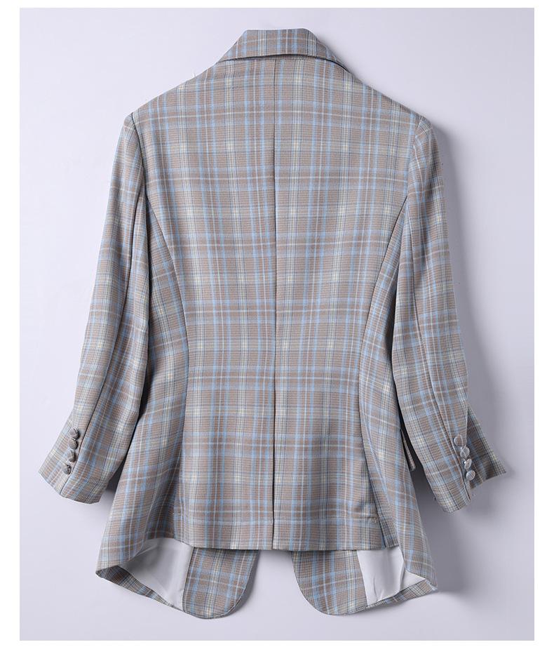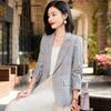 Chaqueta de traje fina de manga tres cuartos a cuadros retro para mujer 2023 nuevo estilo Hong Kong elegante traje pequeño estilo británico superior