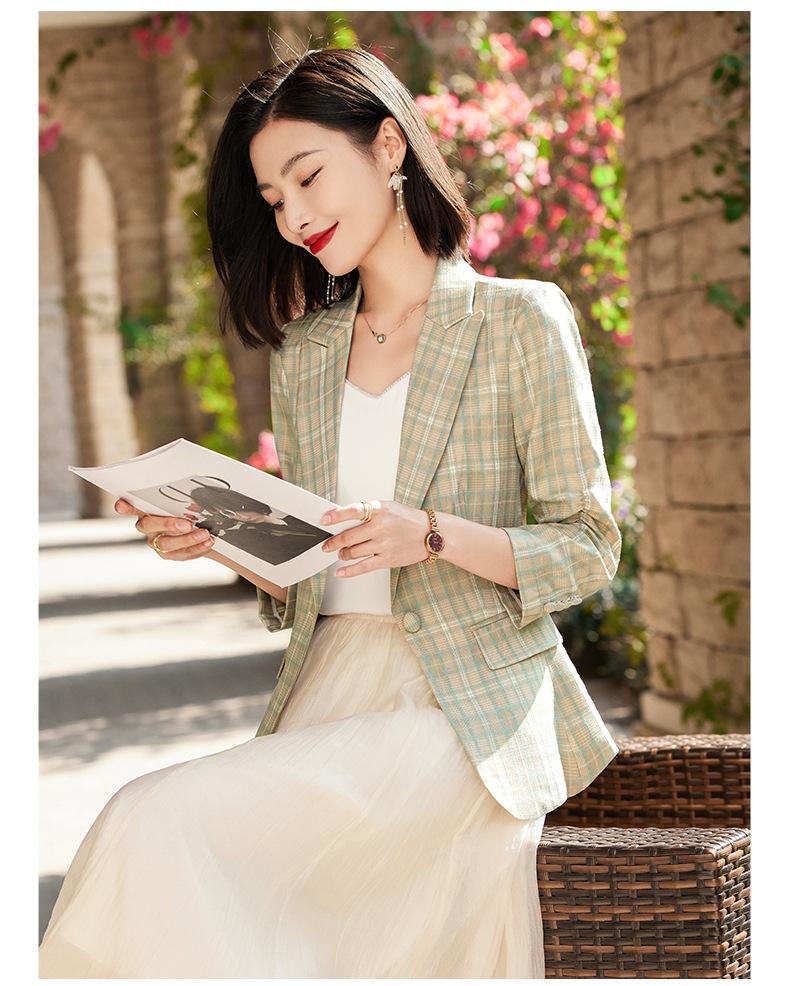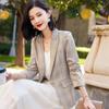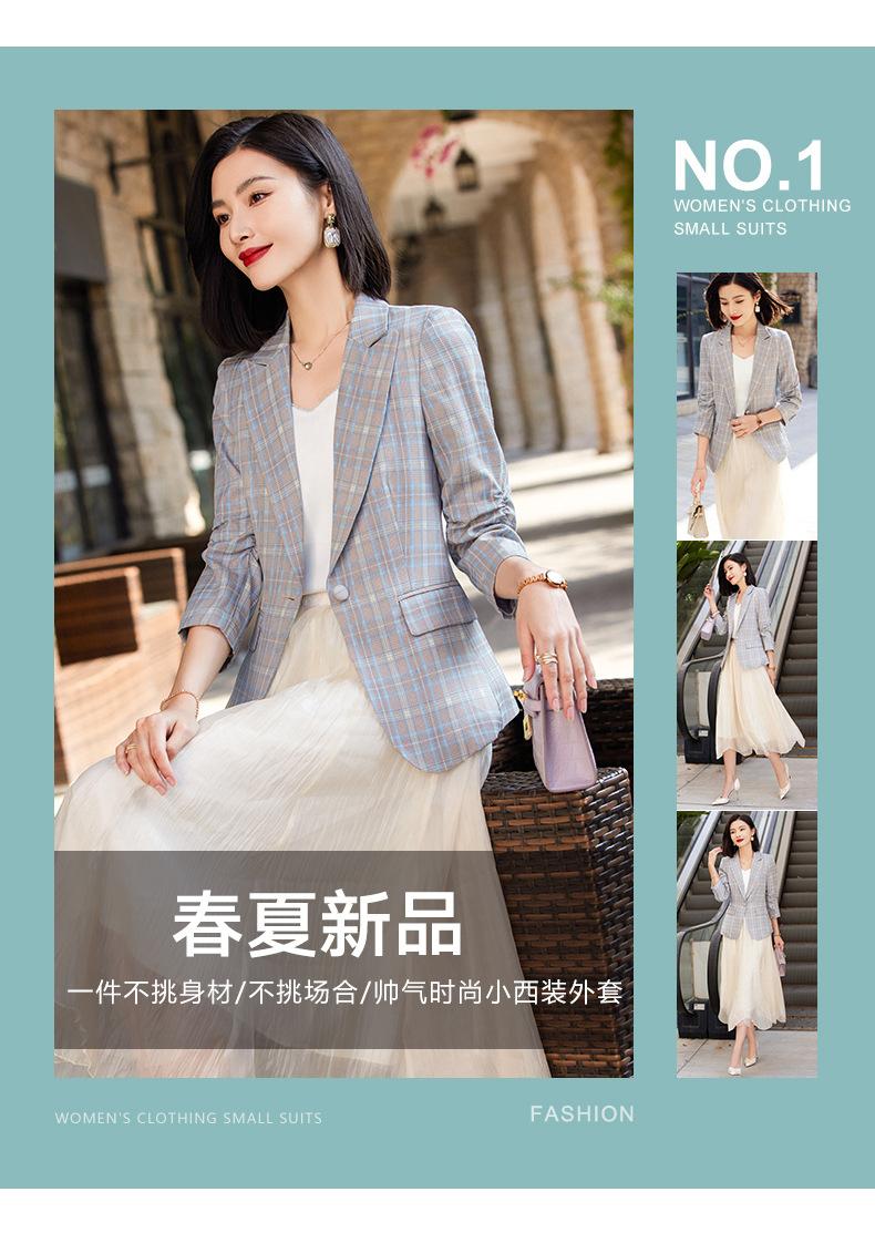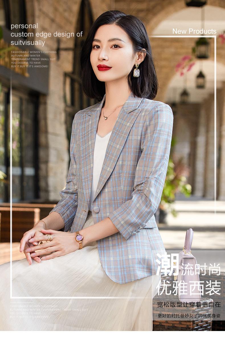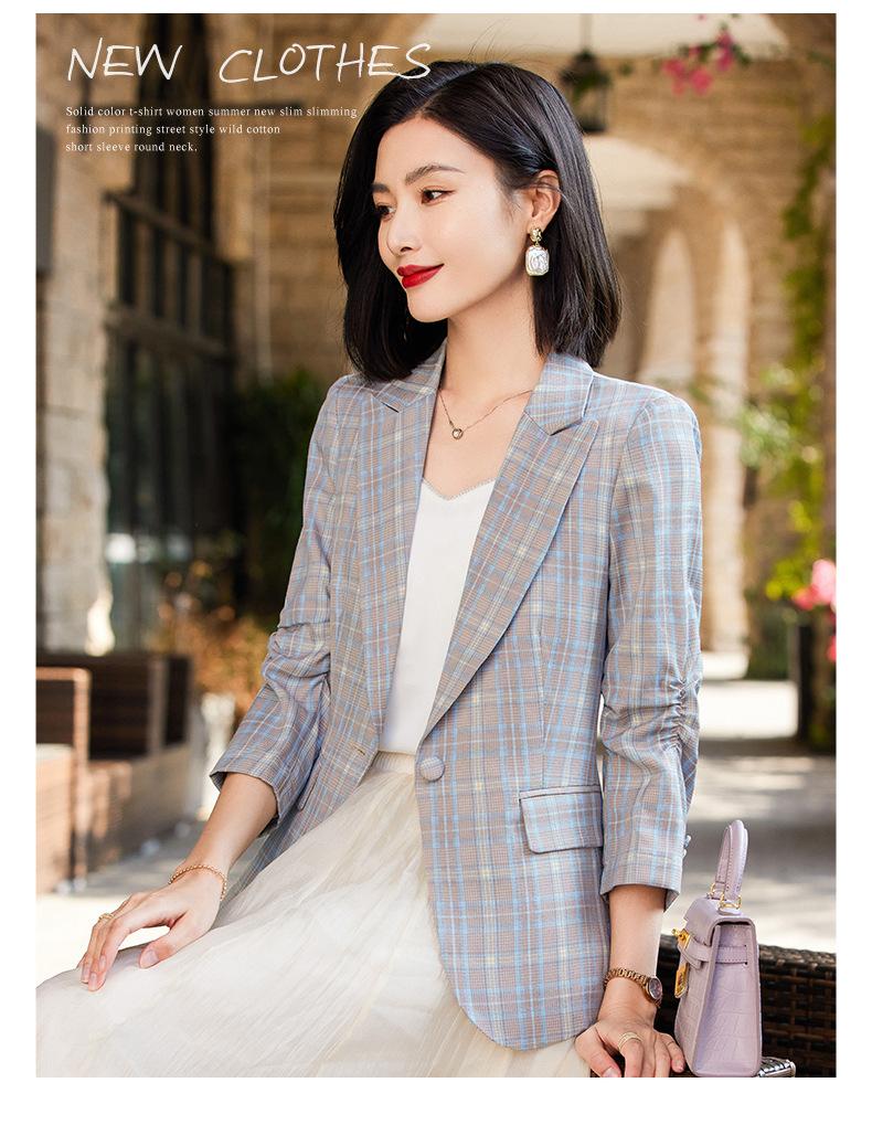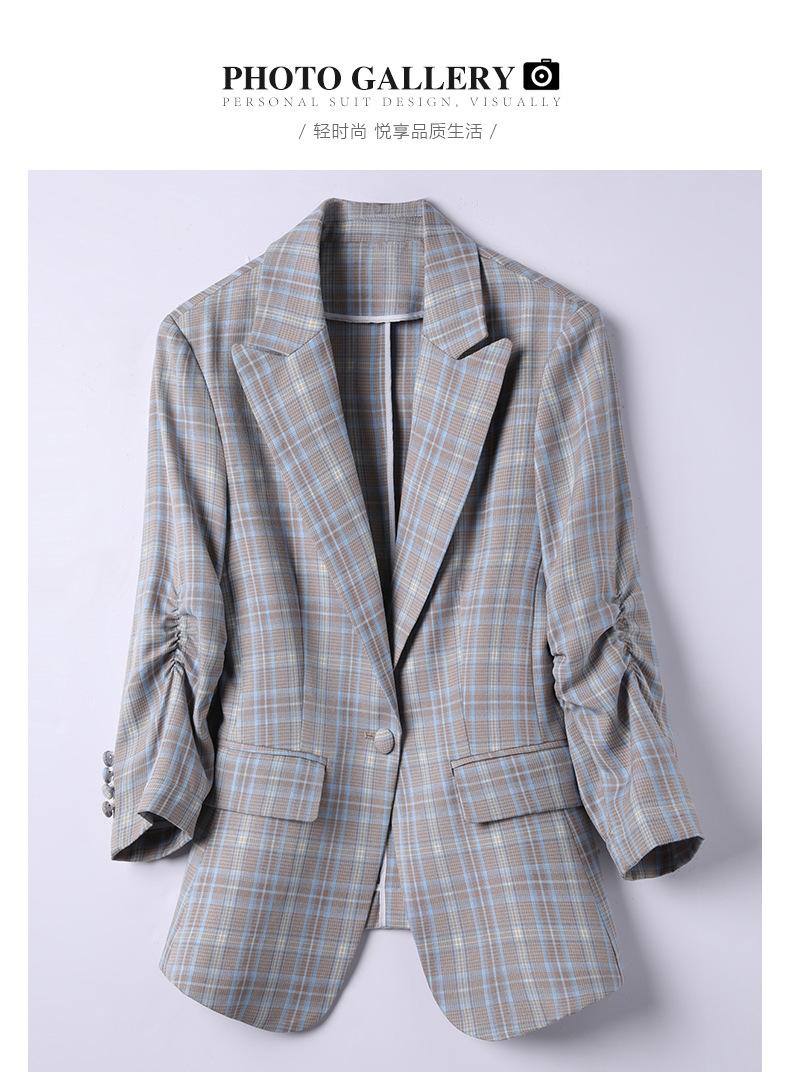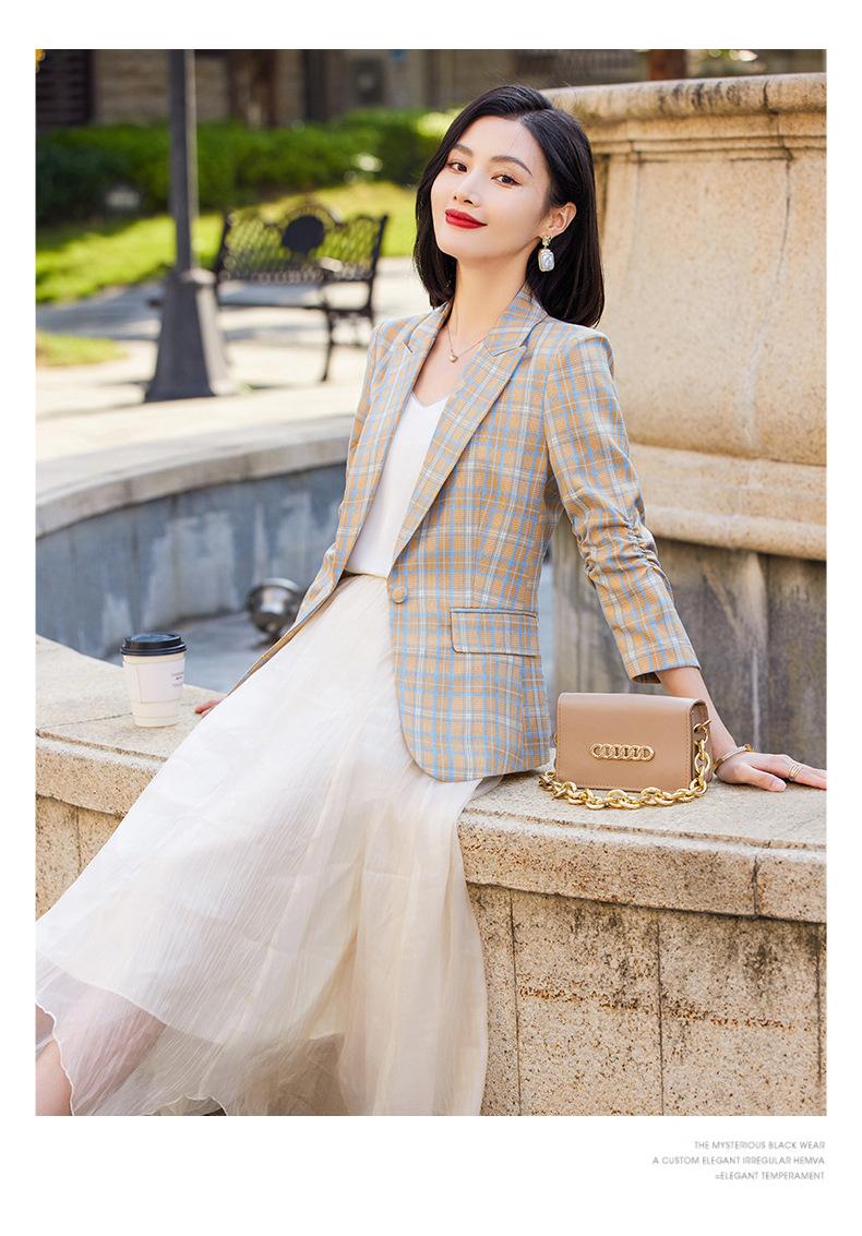 Chaqueta de traje fina de manga tres cuartos a cuadros retro para mujer 2023 nuevo estilo Hong Kong elegante traje pequeño estilo británico superior