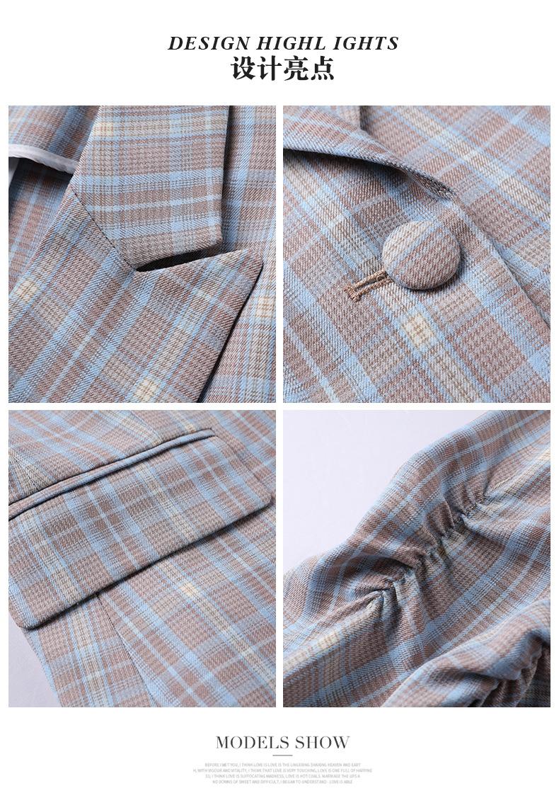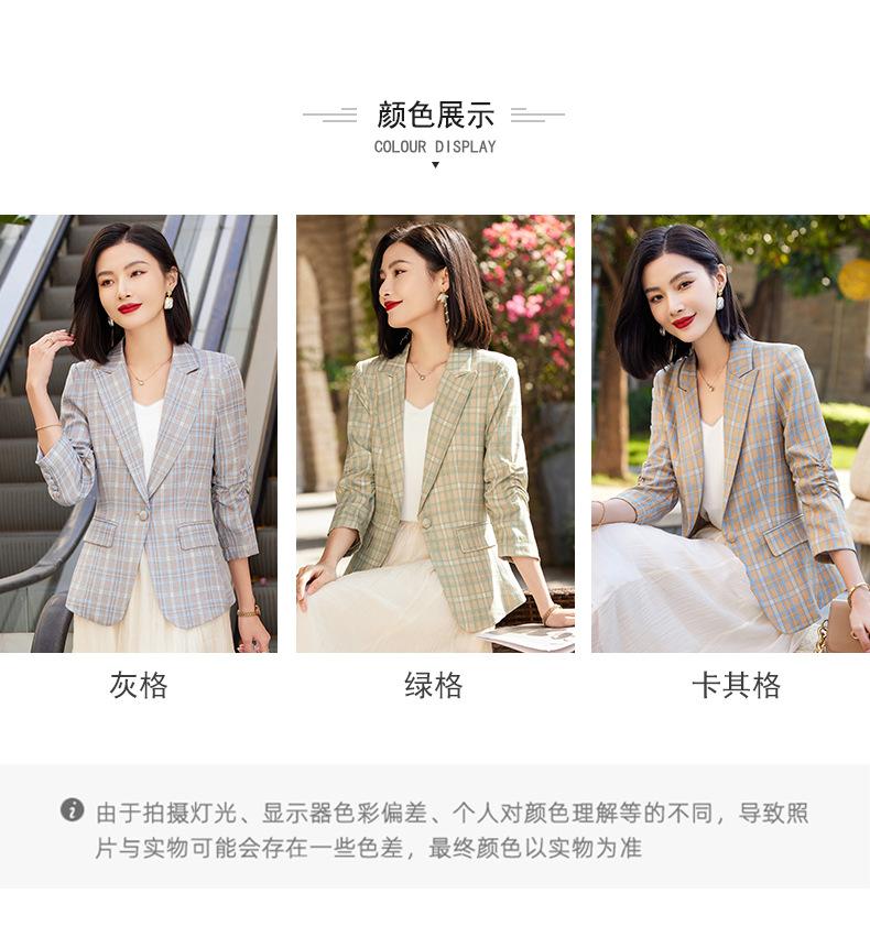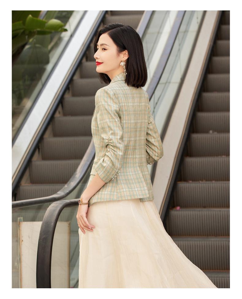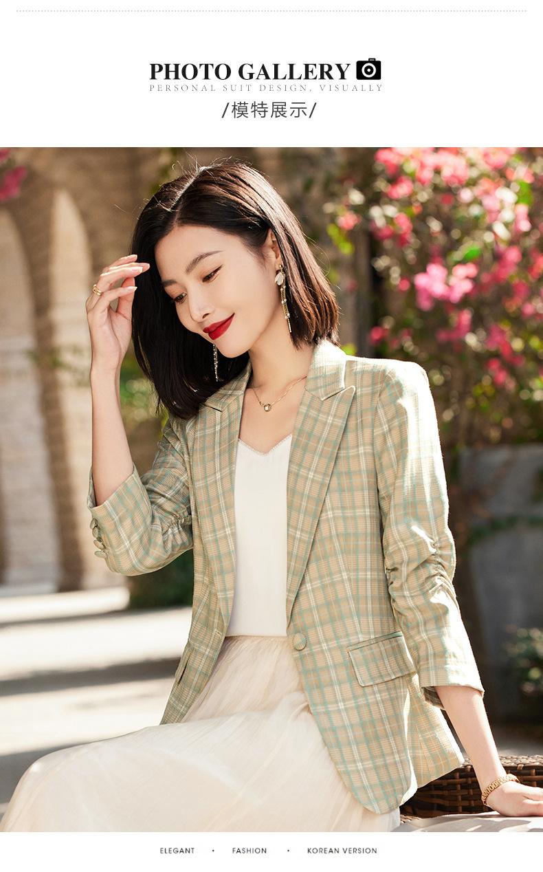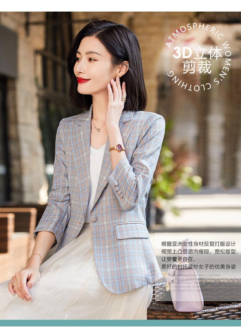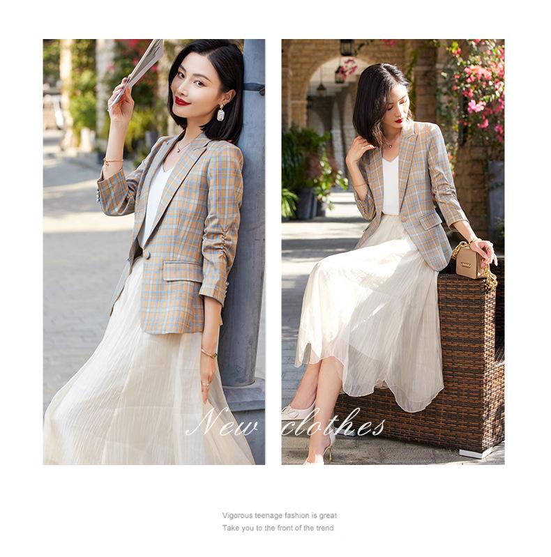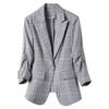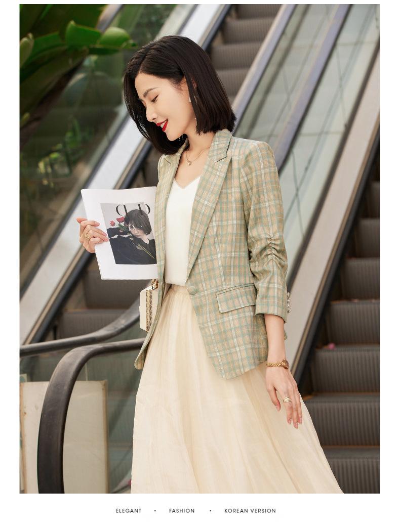 Chaqueta de traje fina de manga tres cuartos a cuadros retro para mujer 2023 nuevo estilo Hong Kong elegante traje pequeño estilo británico superior