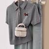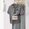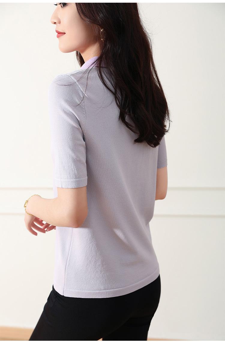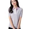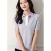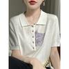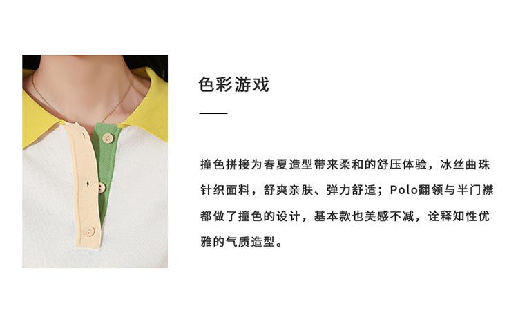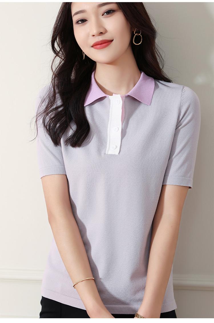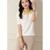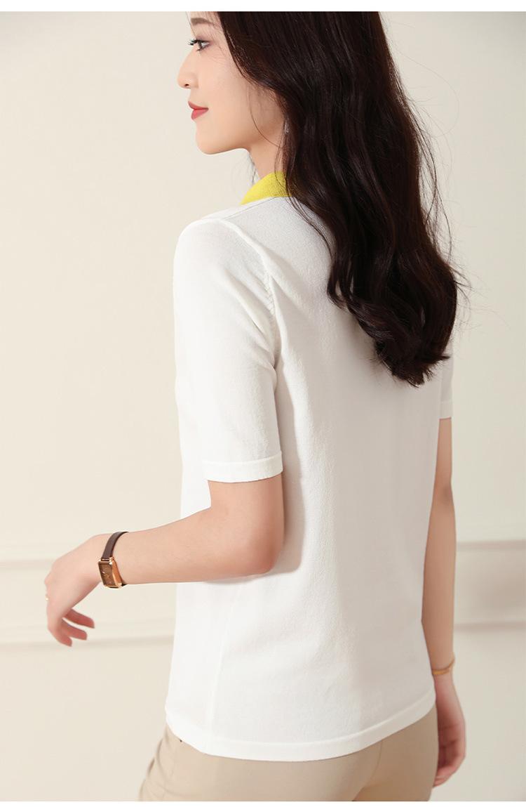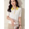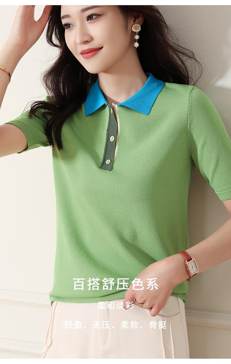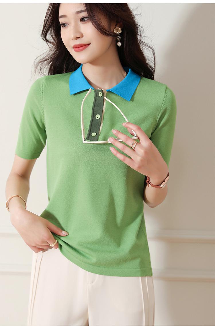 Camisa polo corta de seda de hielo, cuello base, diseño de verano para mujer 2023, corte entallado, estilo occidental, adelgazante, manga corta, color a juego.
