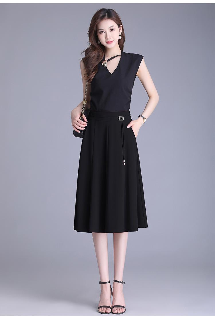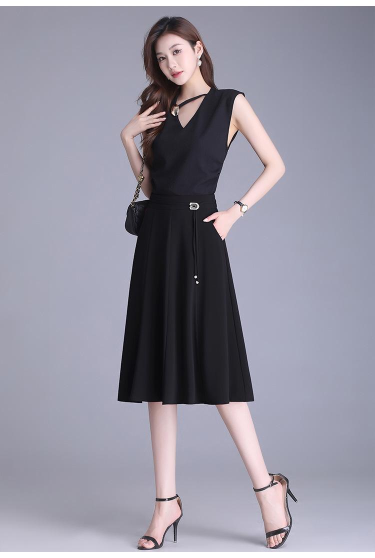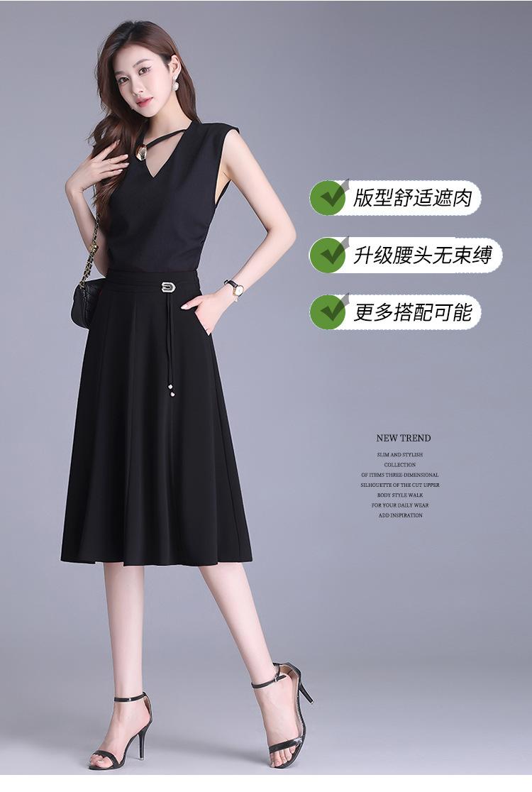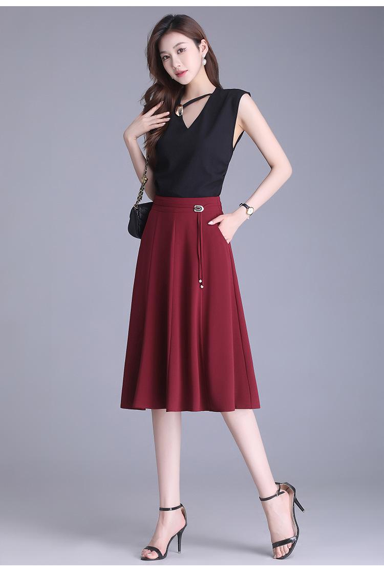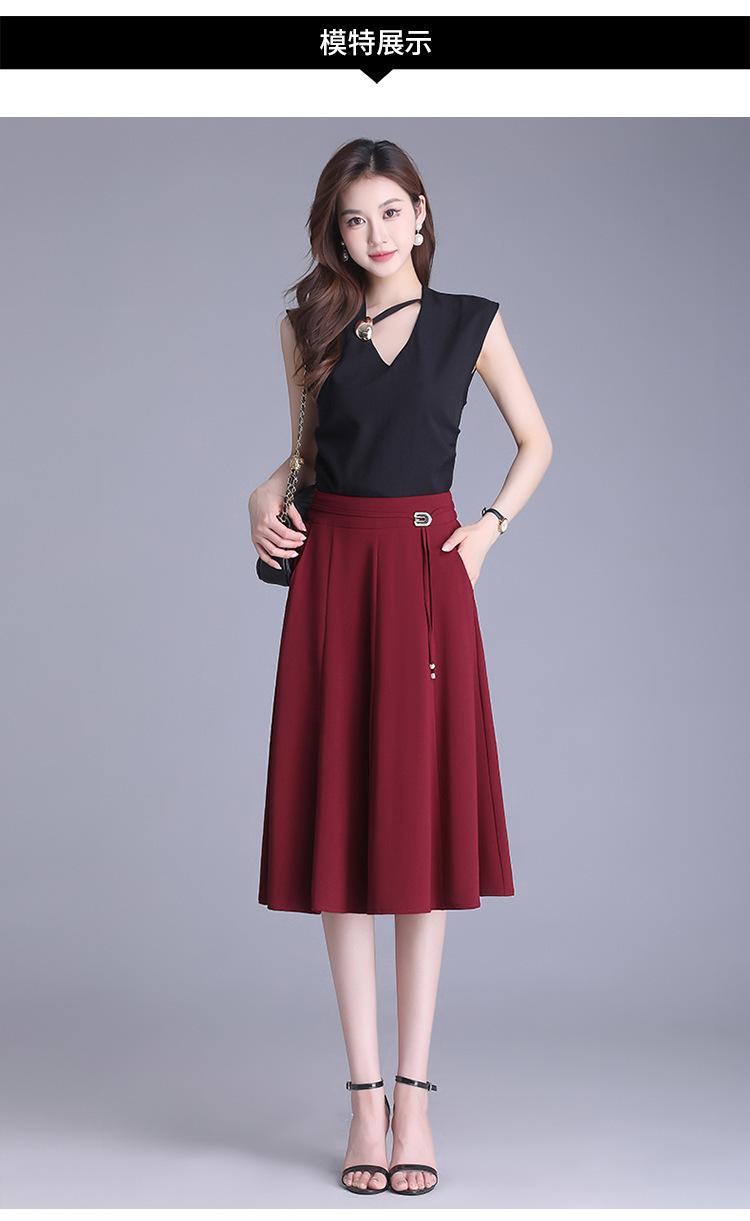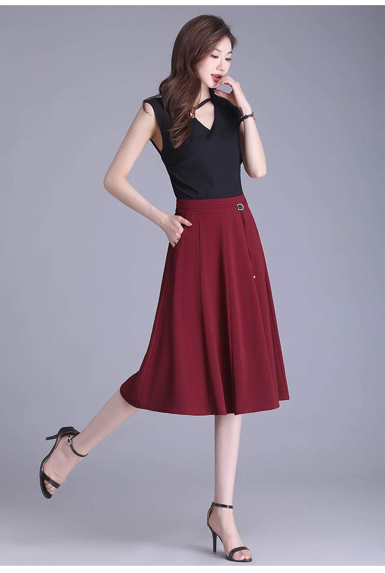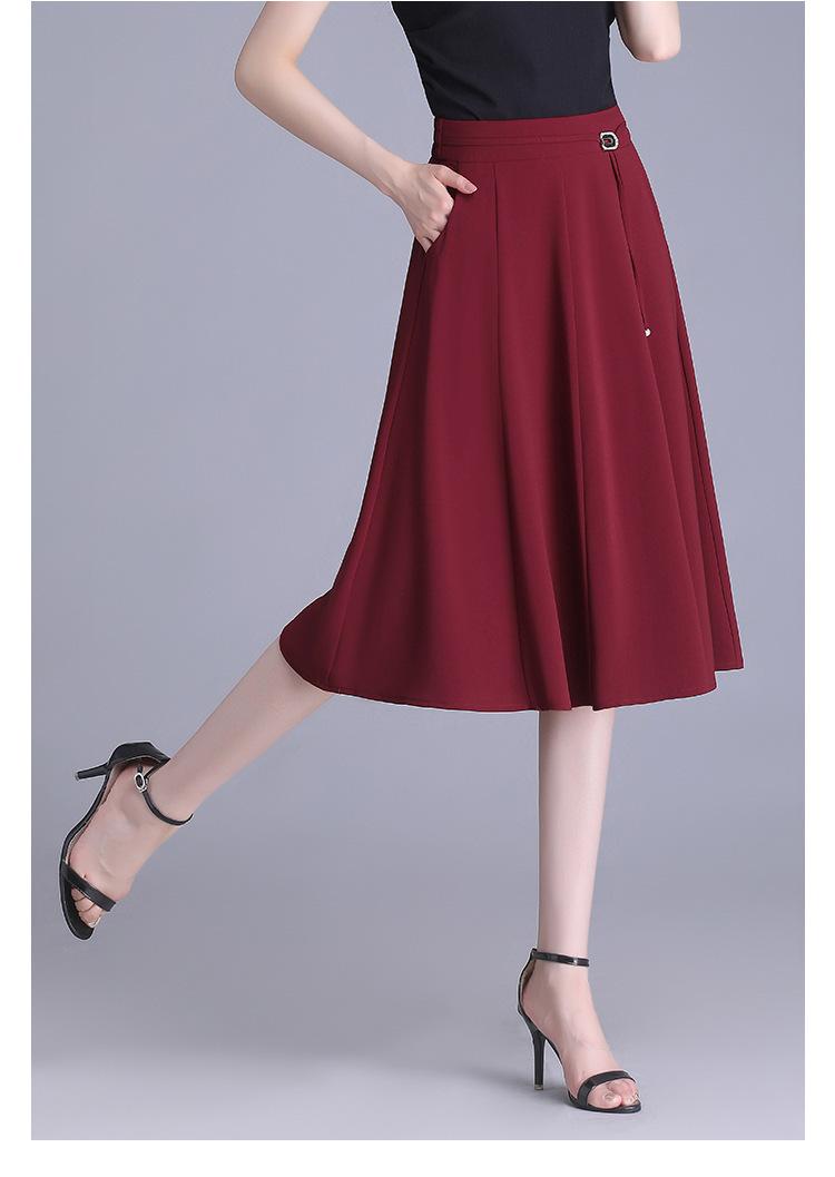 Falda de Traje Casual Simple a la Moda para Mujer 2025 Verano Nuevo Falda plisada de línea A de cintura alta con bajo amplio Falda midi