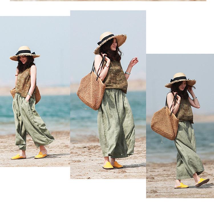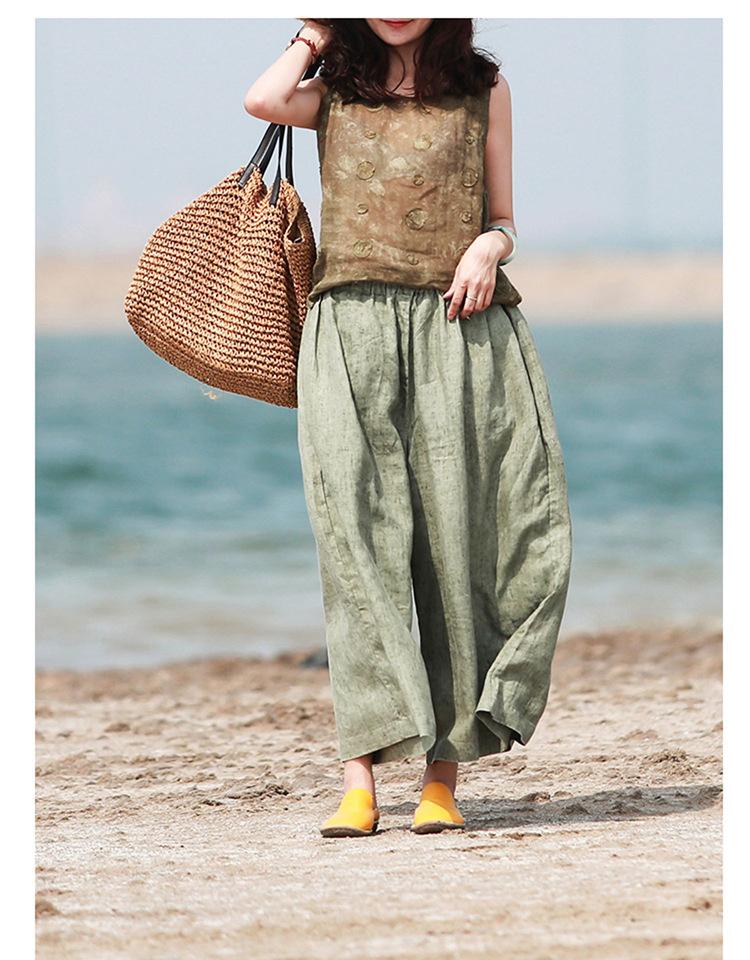 Pantalones cortos holgados de lino de primavera y verano 2023 para mujer, pantalones casuales artísticos versátiles