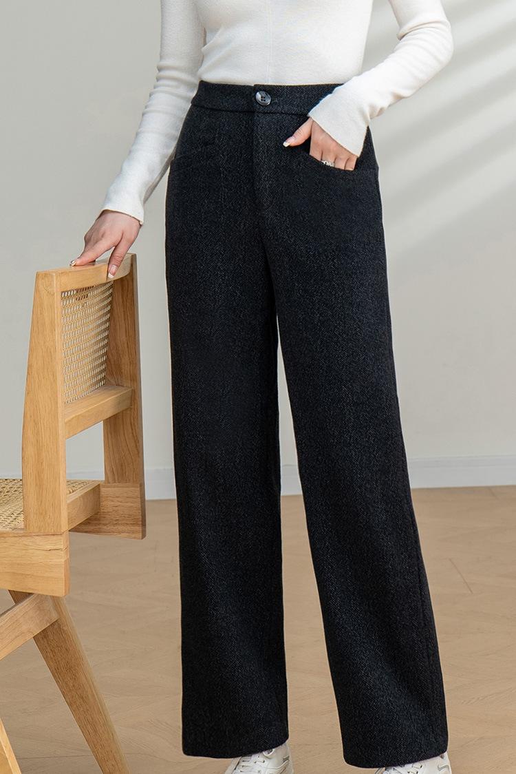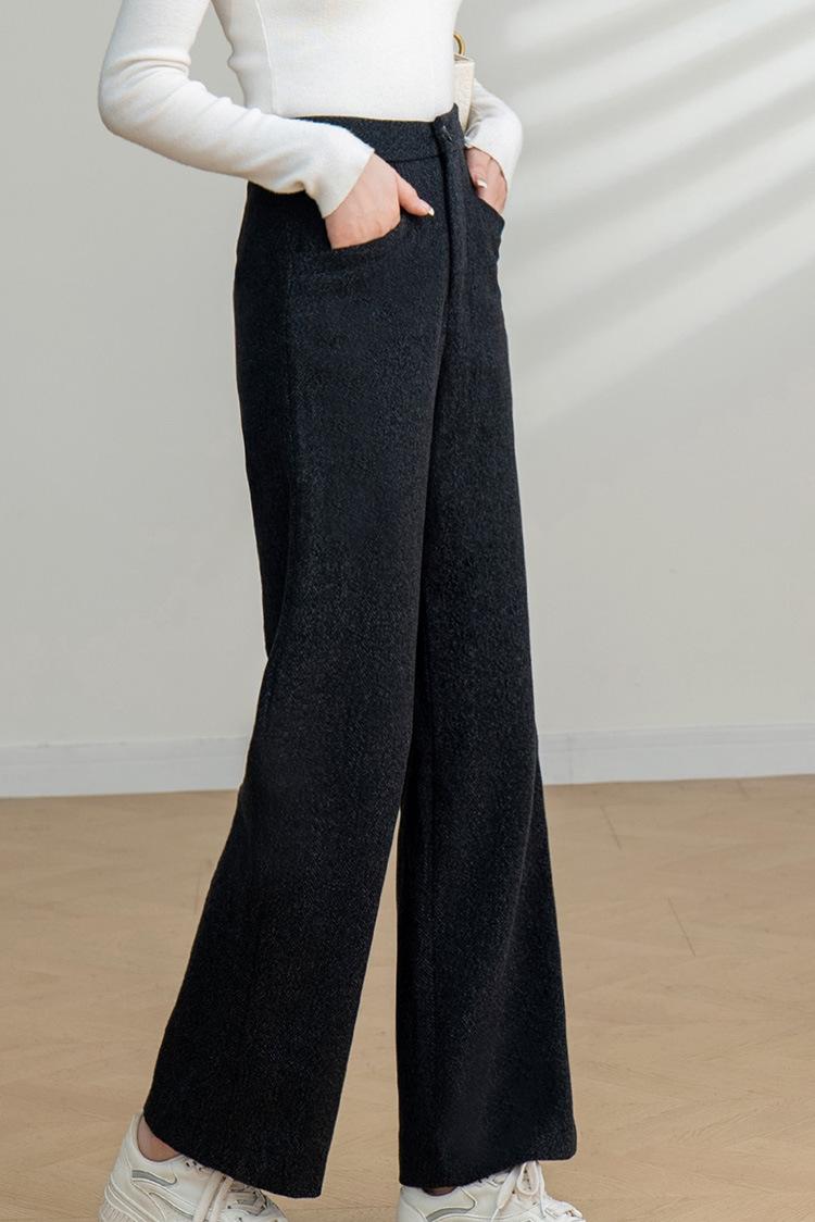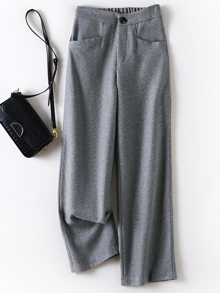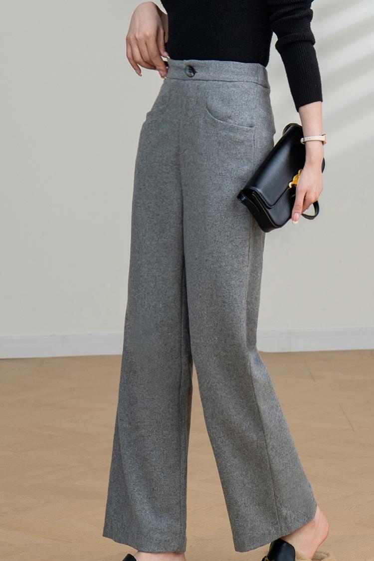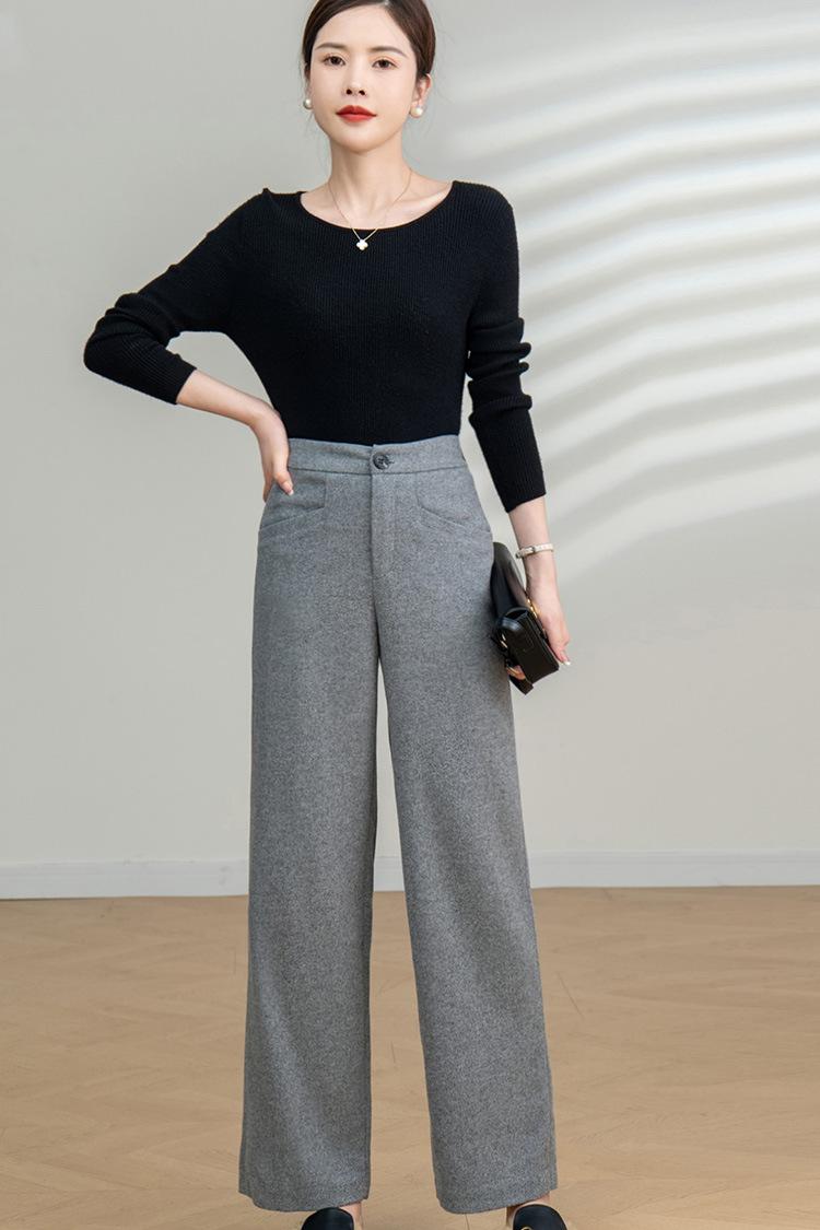 Pantalones Elegantes de Lana para Ir al Trabajo para Mujer Pantalones Largos Casuales 2025 Otoño Nuevo Pantalones de Pierna Ancha Ropa Premium para Mujer Venta al por Mayor