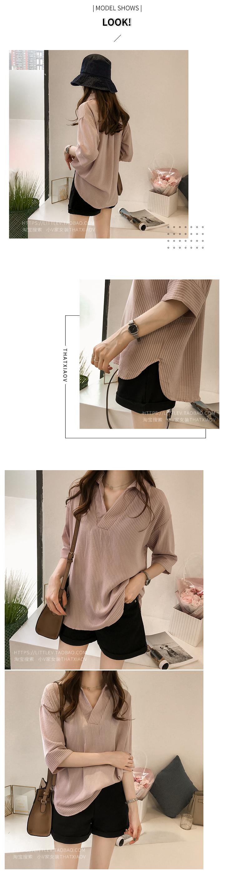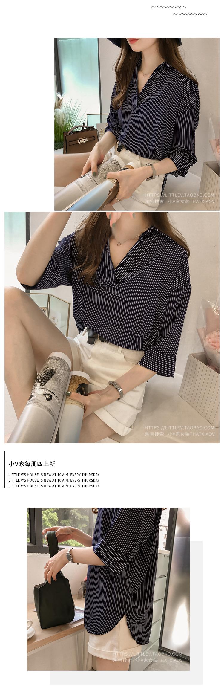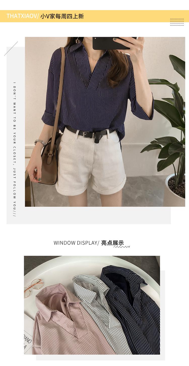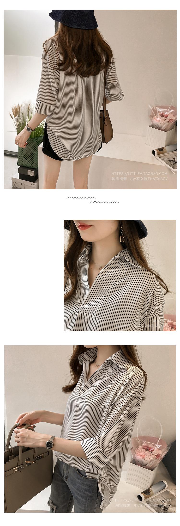 2025 Primavera y Verano Nuevo Estilo Coreano Suelto Slim Camisa a Rayas para Mujer Manga Tres Cuartos Top Versátil Camisa Casual Tendencia