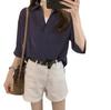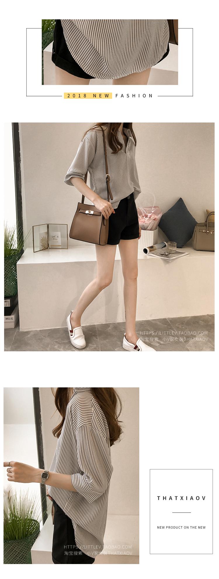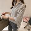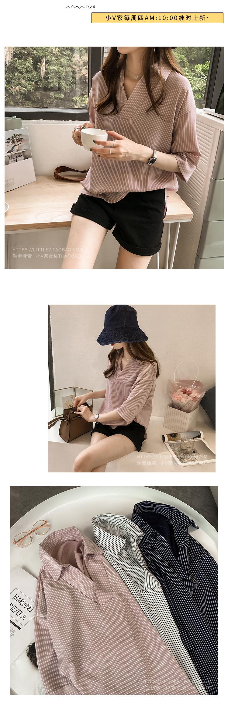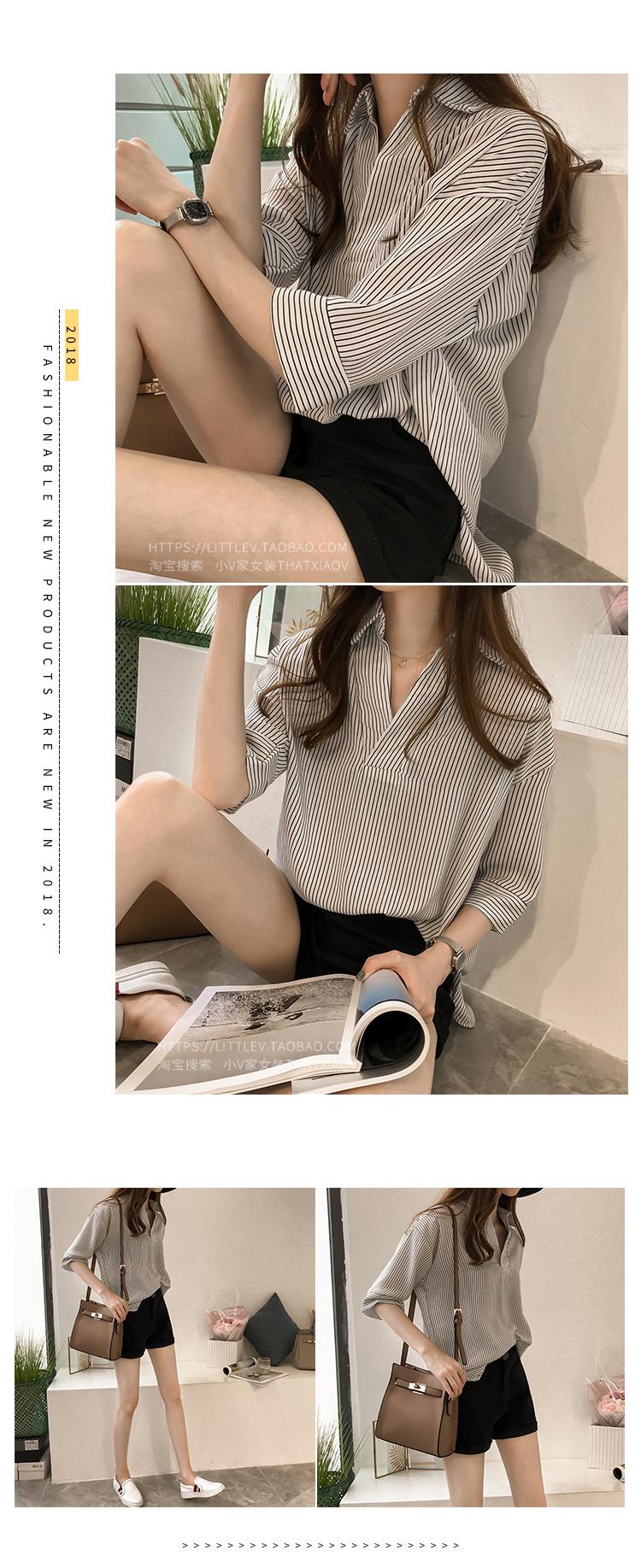 2025 Primavera y Verano Nuevo Estilo Coreano Suelto Slim Camisa a Rayas para Mujer Manga Tres Cuartos Top Versátil Camisa Casual Tendencia