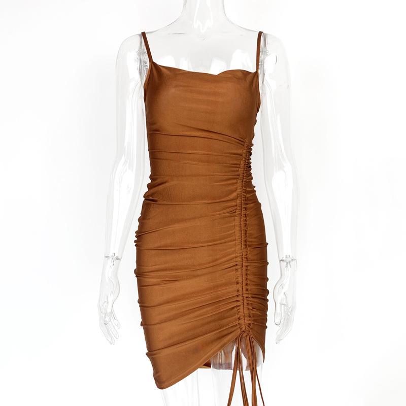 Ropa Nueva de Exportación Europea y Americana para Mujer 2025 Verano Falda Hippie con Tirantes y Cordón Ajustable Moda Moderna Sexy Vestido Ajustado
