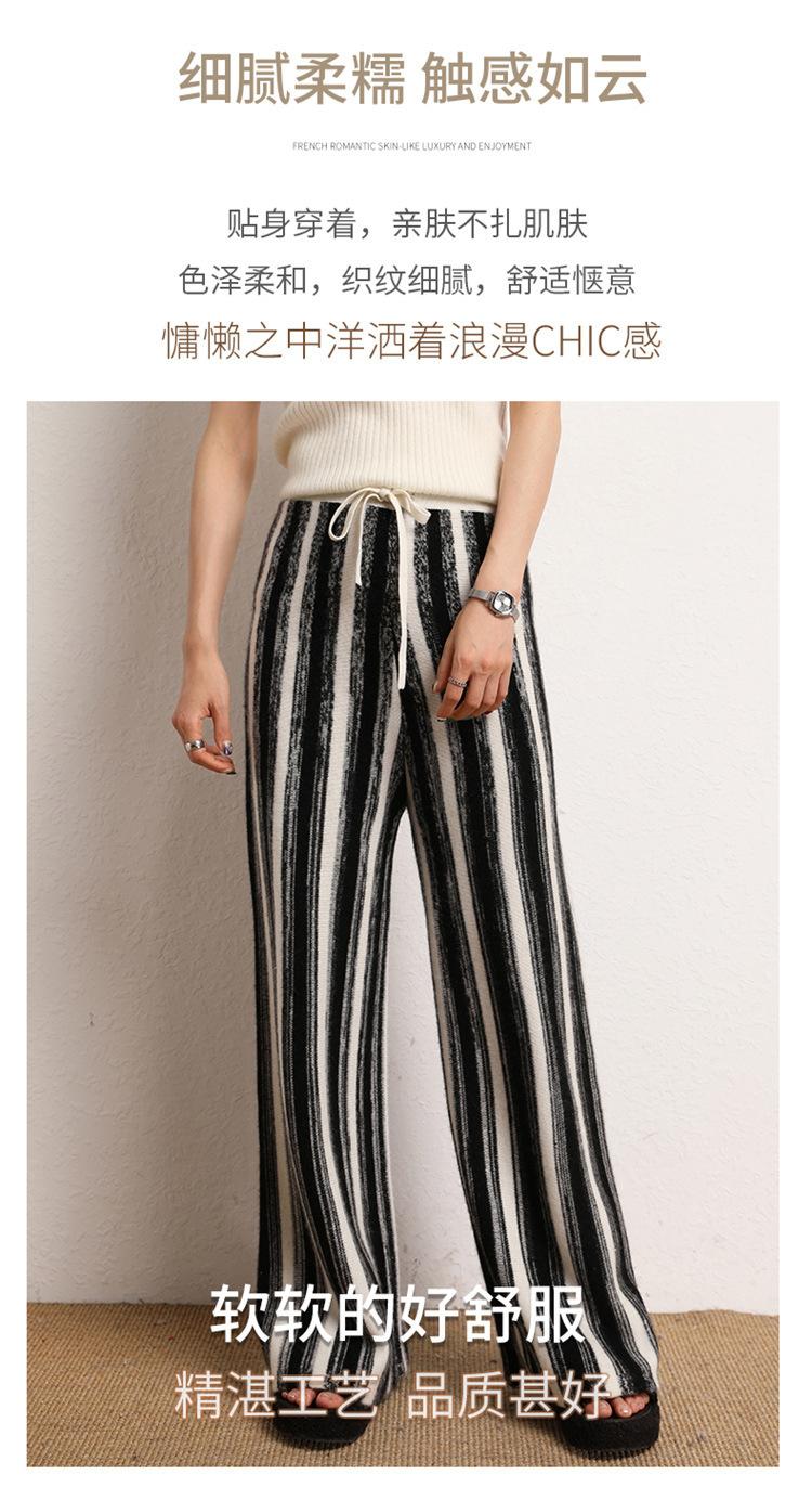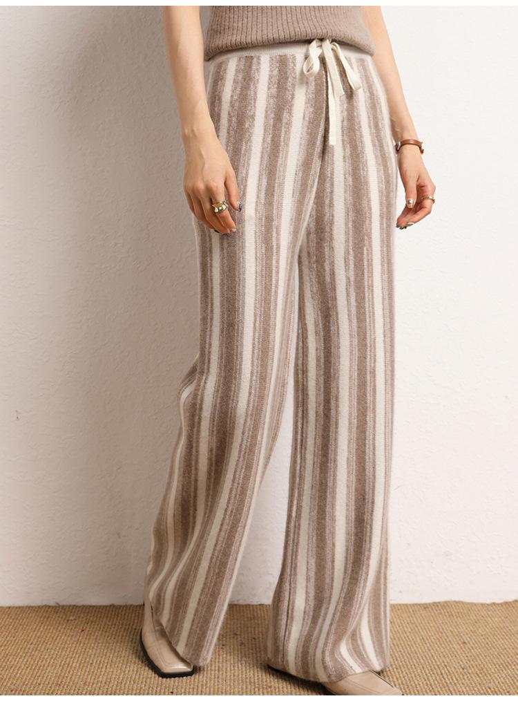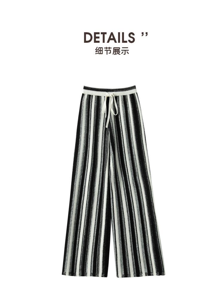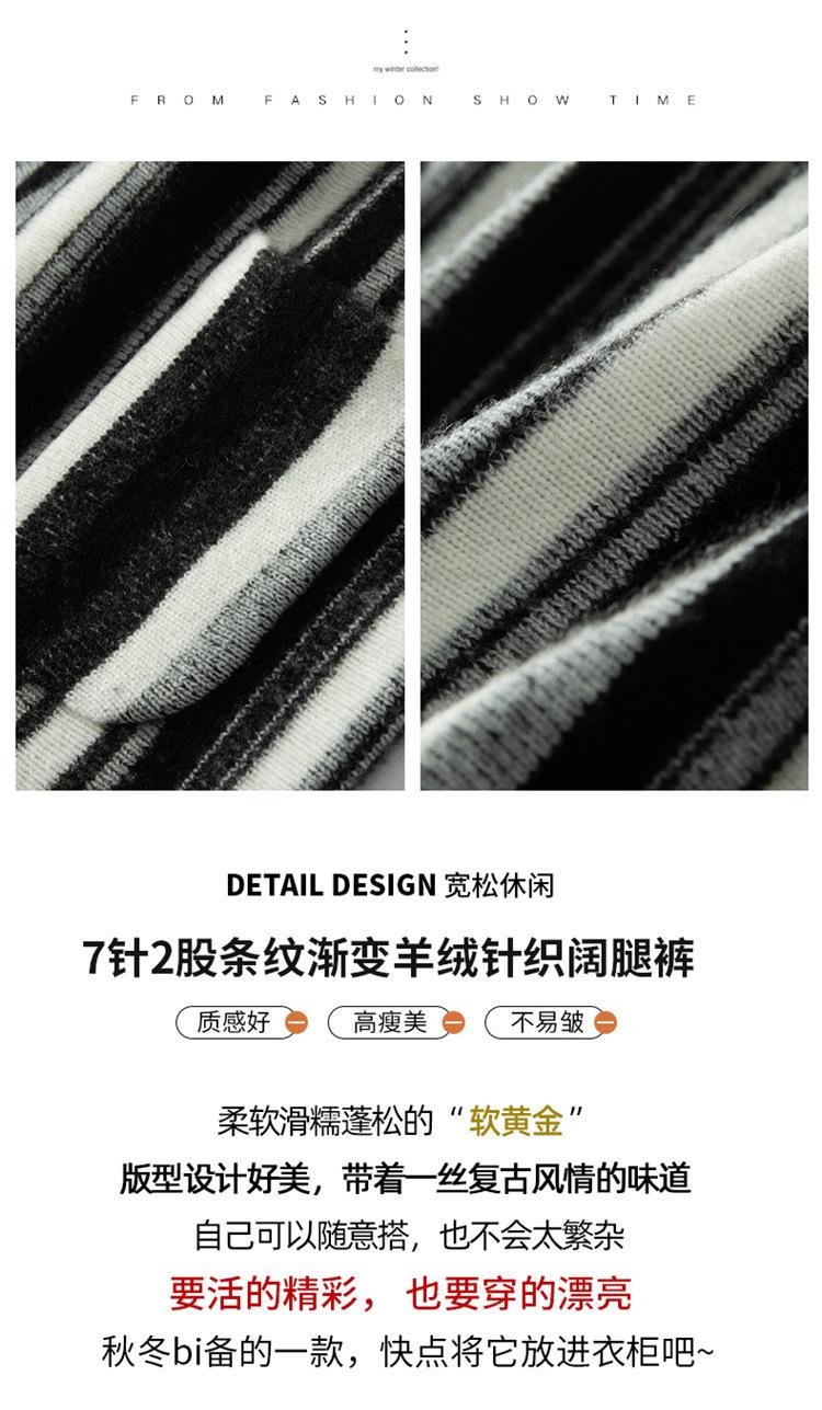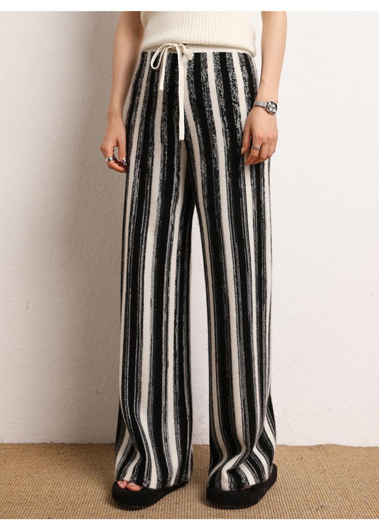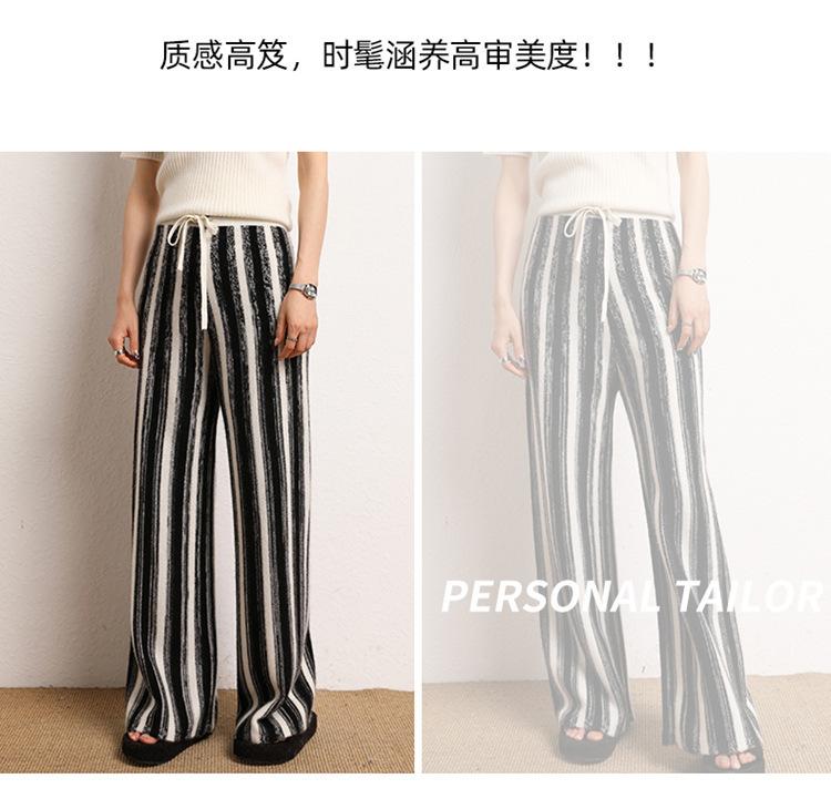 Cachemira suave cerosa 2023 otoño e invierno nuevo pantalón de mujer de cintura alta a rayas degradadas pantalón recto de pierna ancha pantalón largo