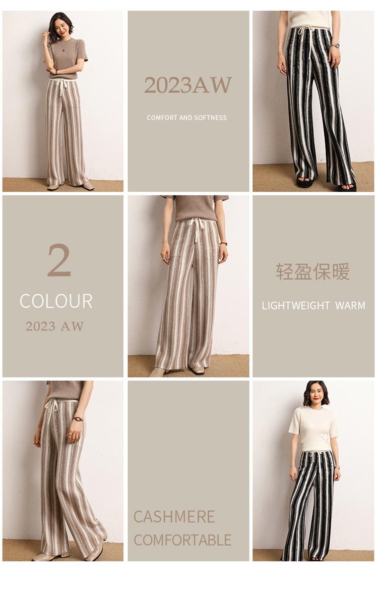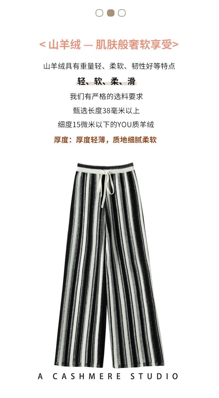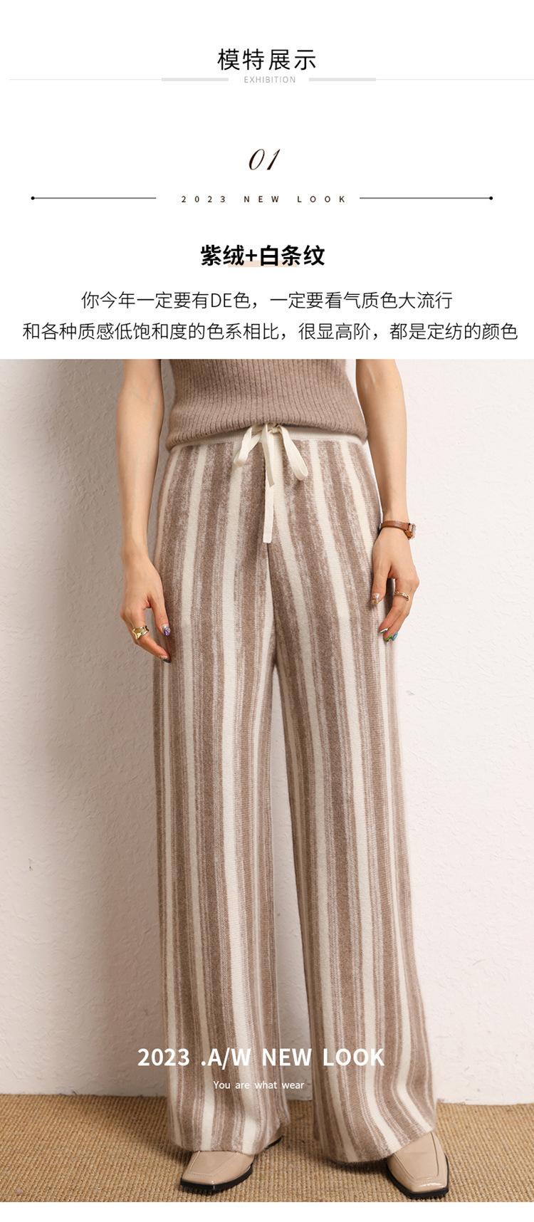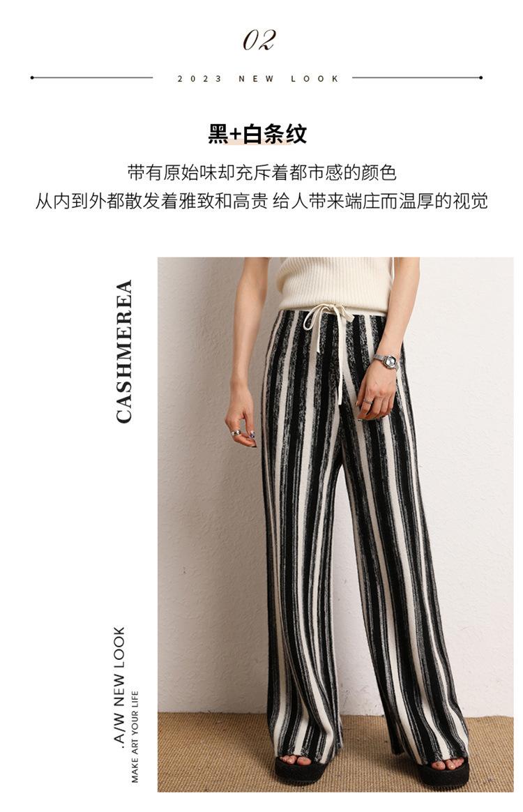 Cachemira suave cerosa 2023 otoño e invierno nuevo pantalón de mujer de cintura alta a rayas degradadas pantalón recto de pierna ancha pantalón largo