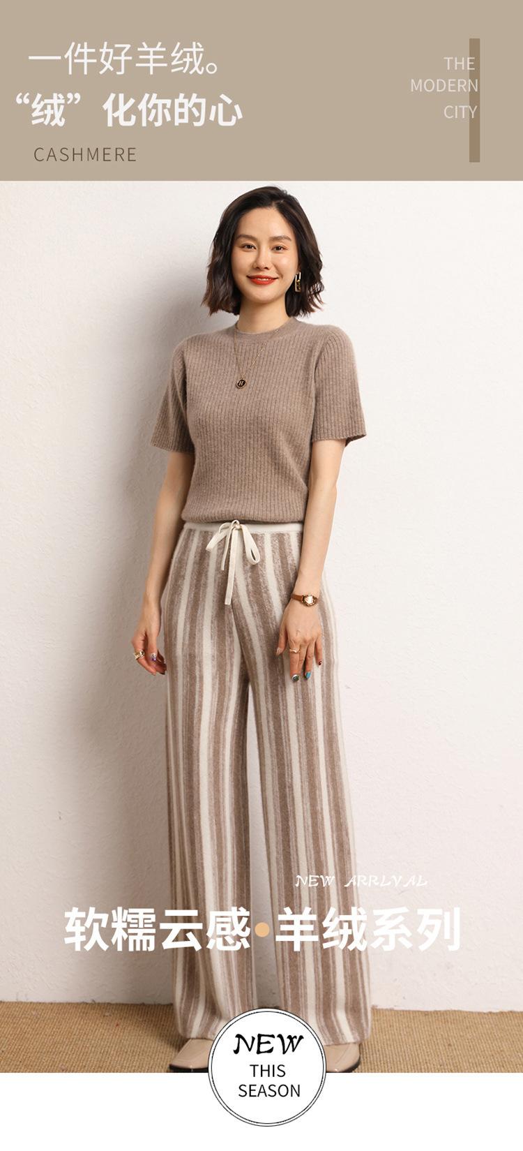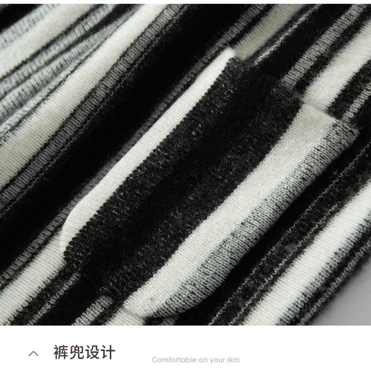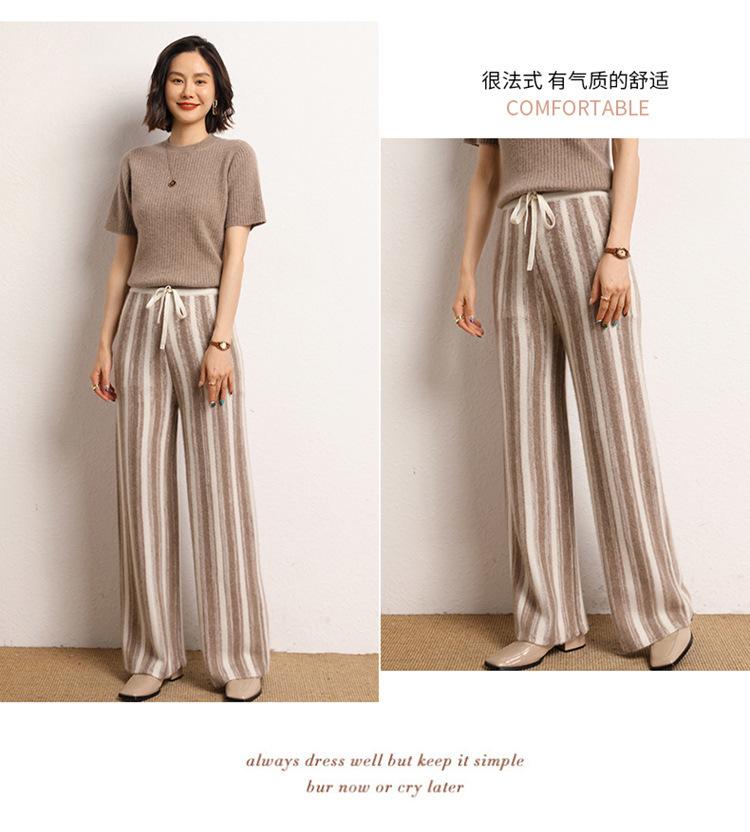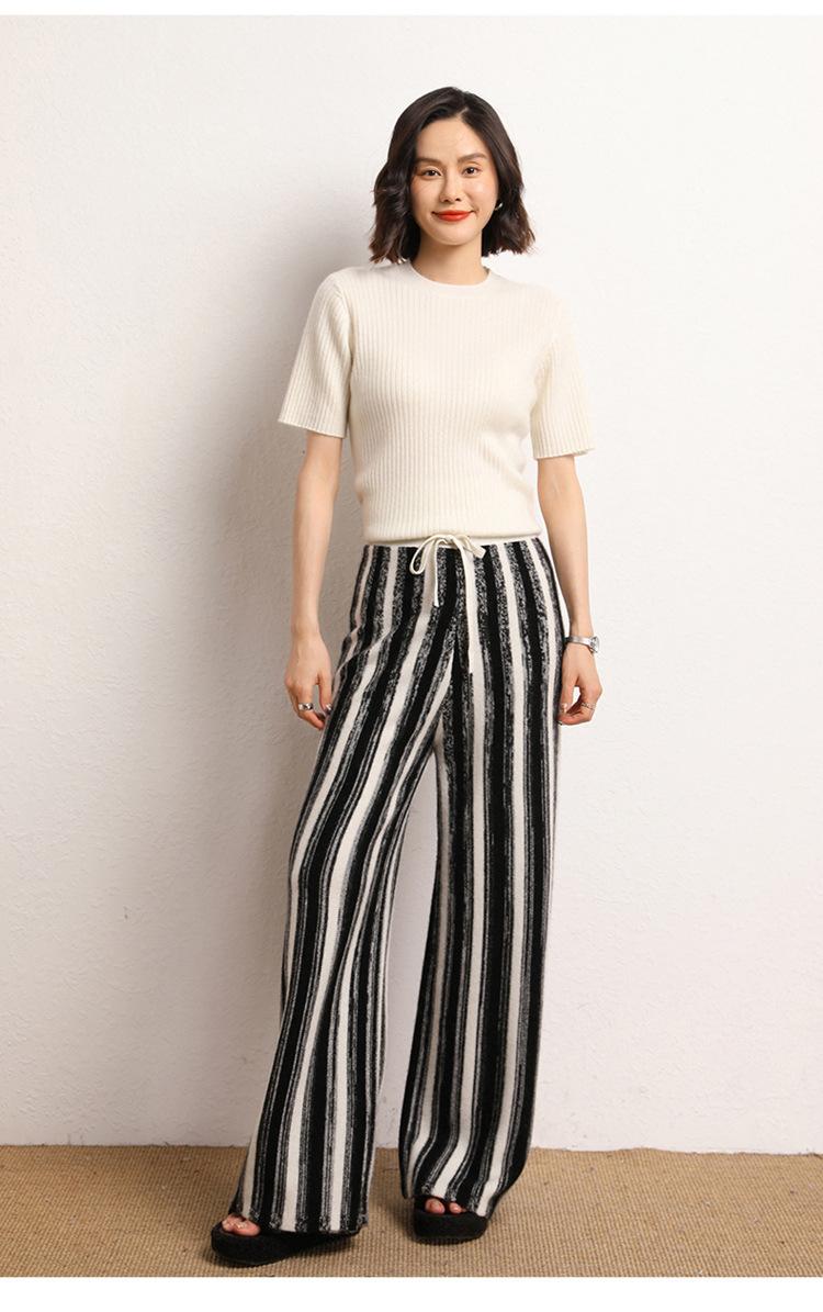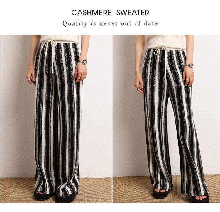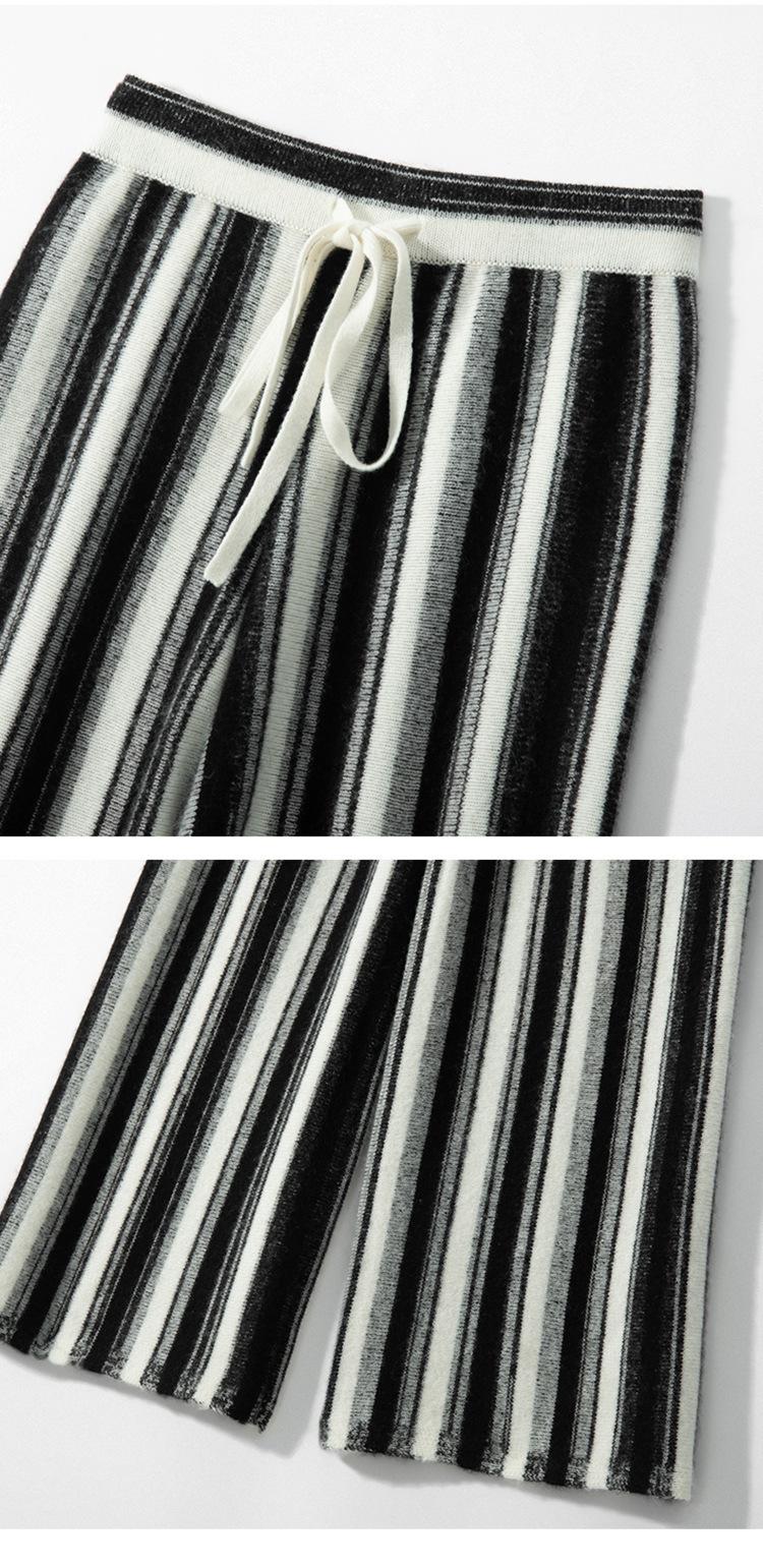 Cachemira Suave 2025 Otoño e Invierno Nuevo Pantalón de Mujer de Cintura Alta con Rayas Degradadas Pantalón Recto de Pierna Ancha Pantalón Largo