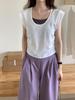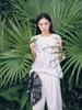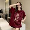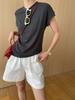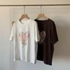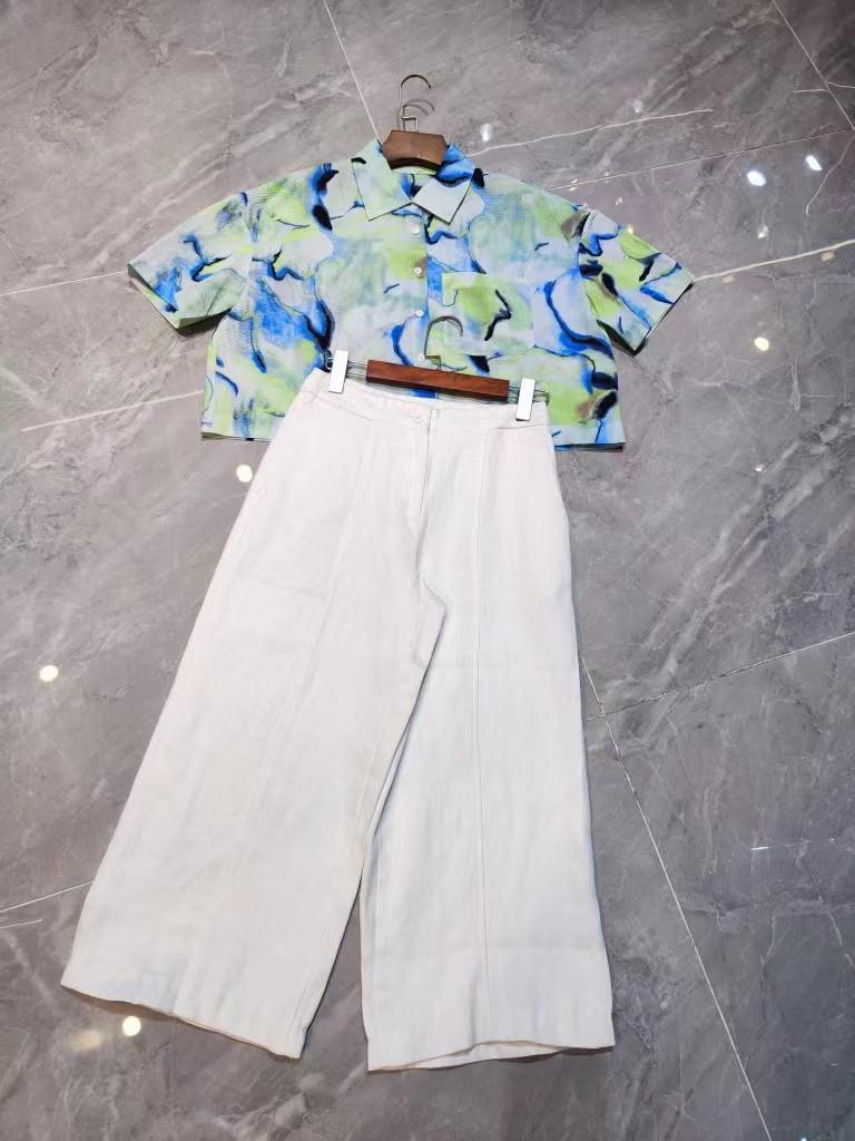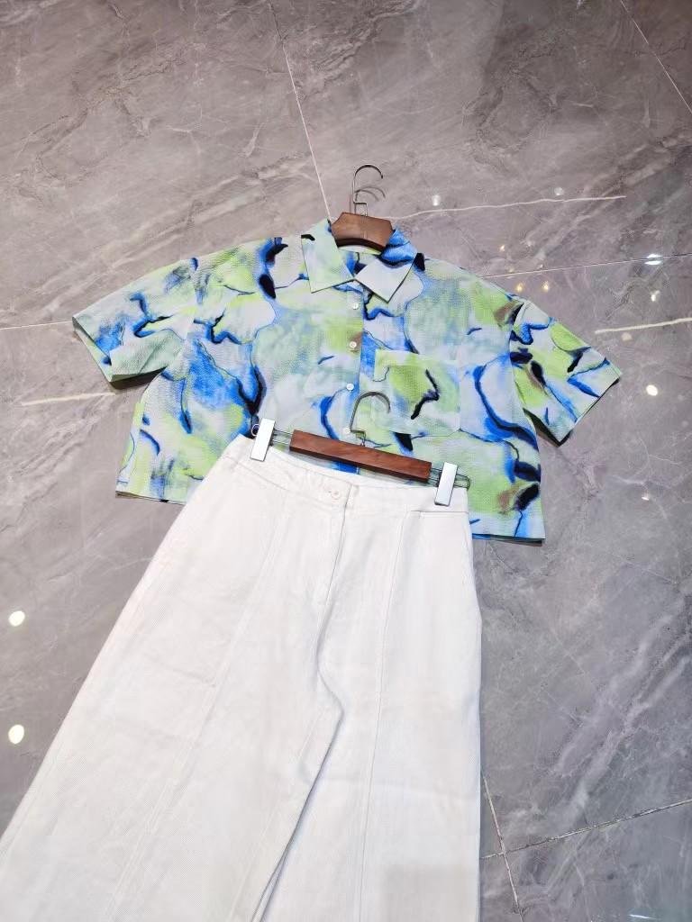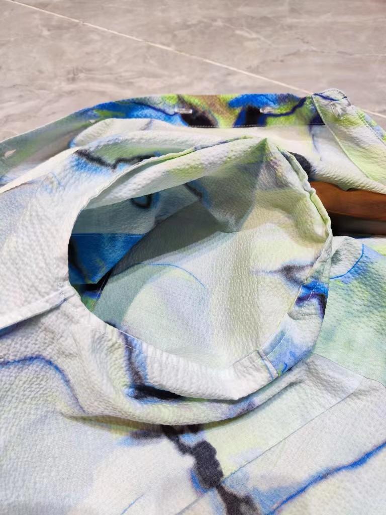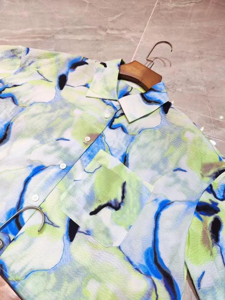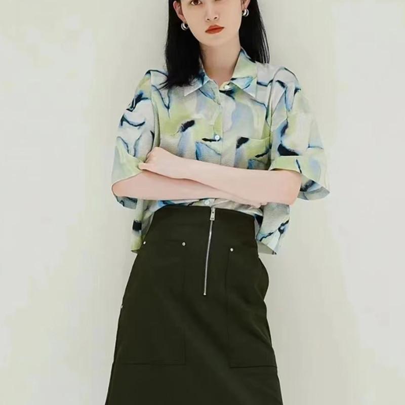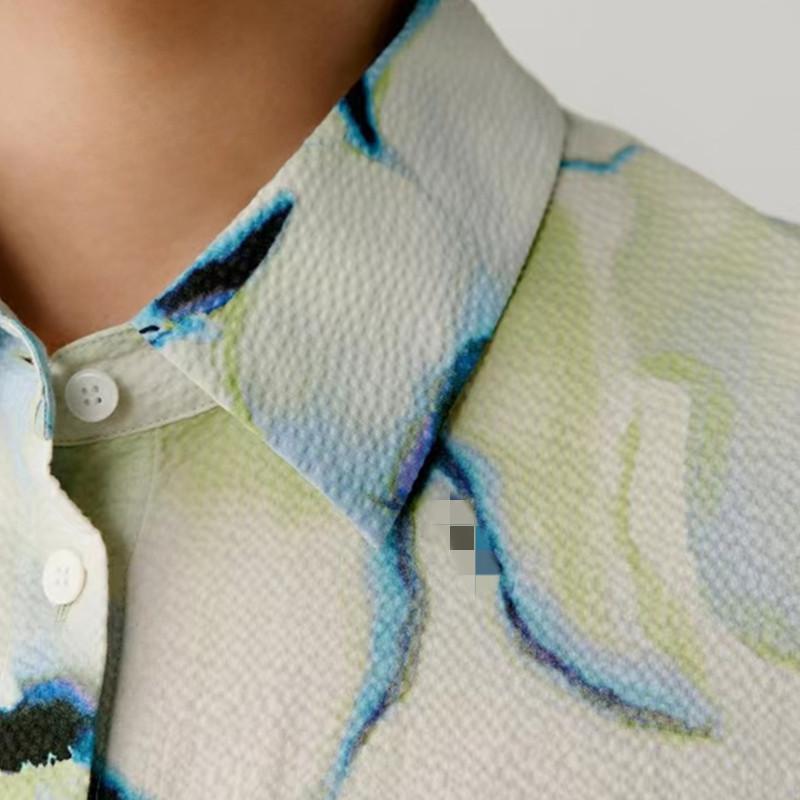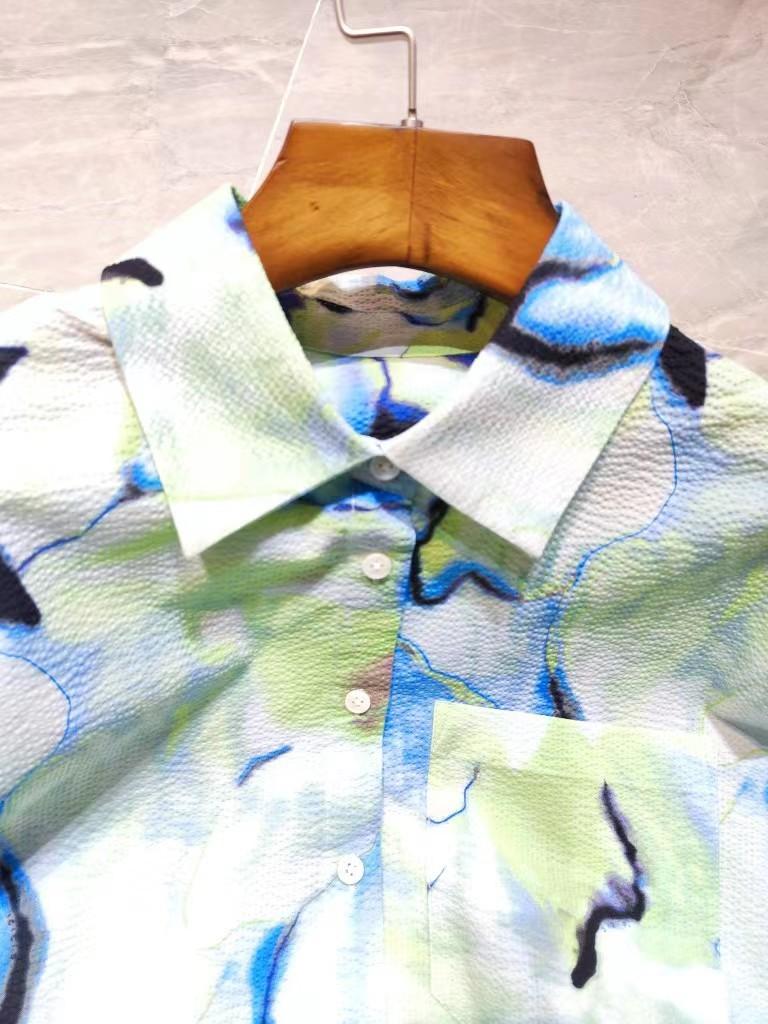 Hejia Ss Nueva Camisa de Verano de Manga Corta de Algodón Espumoso con Estampado Abstracto de Acuarela, Solapa Corta, Holgada, para Mujer