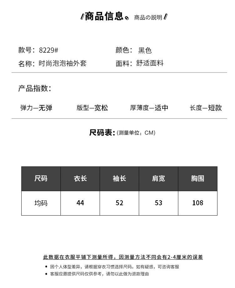 Nueva Chaqueta Corta Esponjosa de Manga Abullonada Lotte 2025 Otoño Sense of Design
