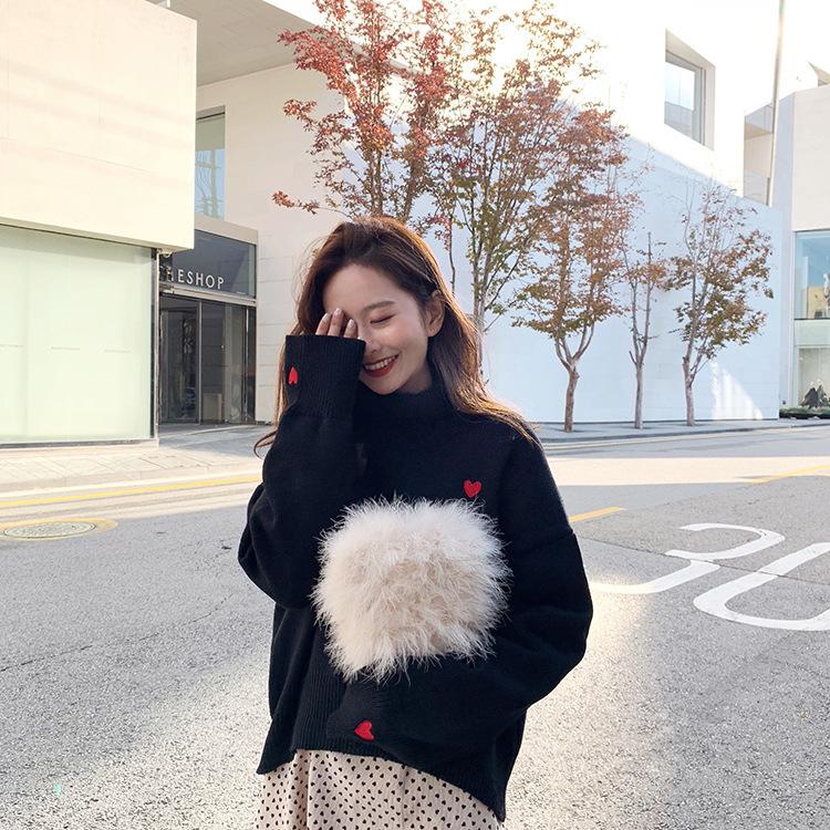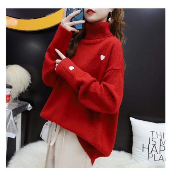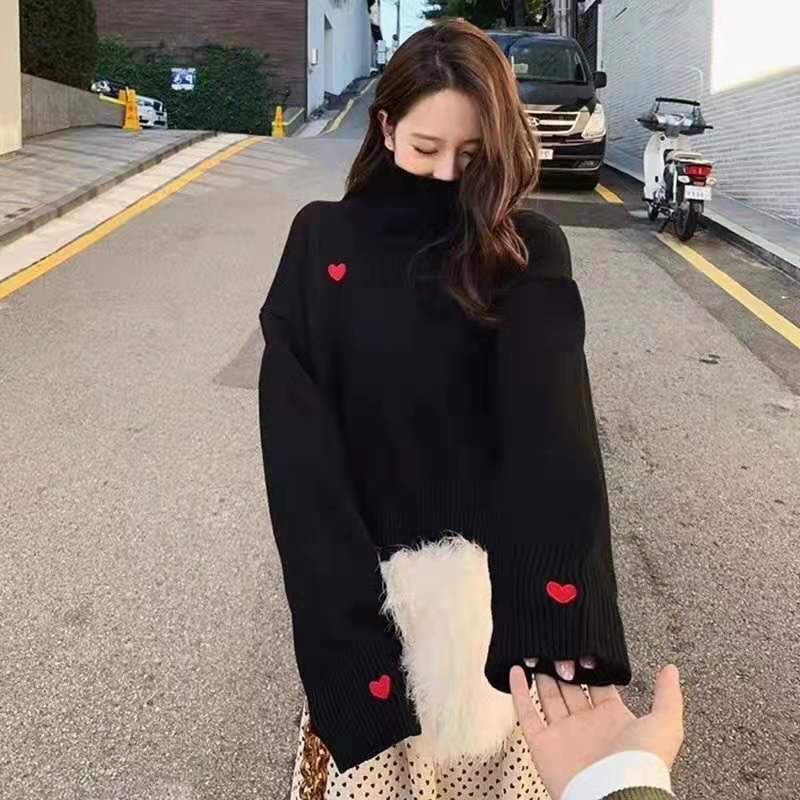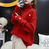 Suéter de mujer suelto otoño e invierno 2019 nuevo Internet Celebrity cuello alto punto base camisa todo fósforo estilo occidental engrosamiento superior
