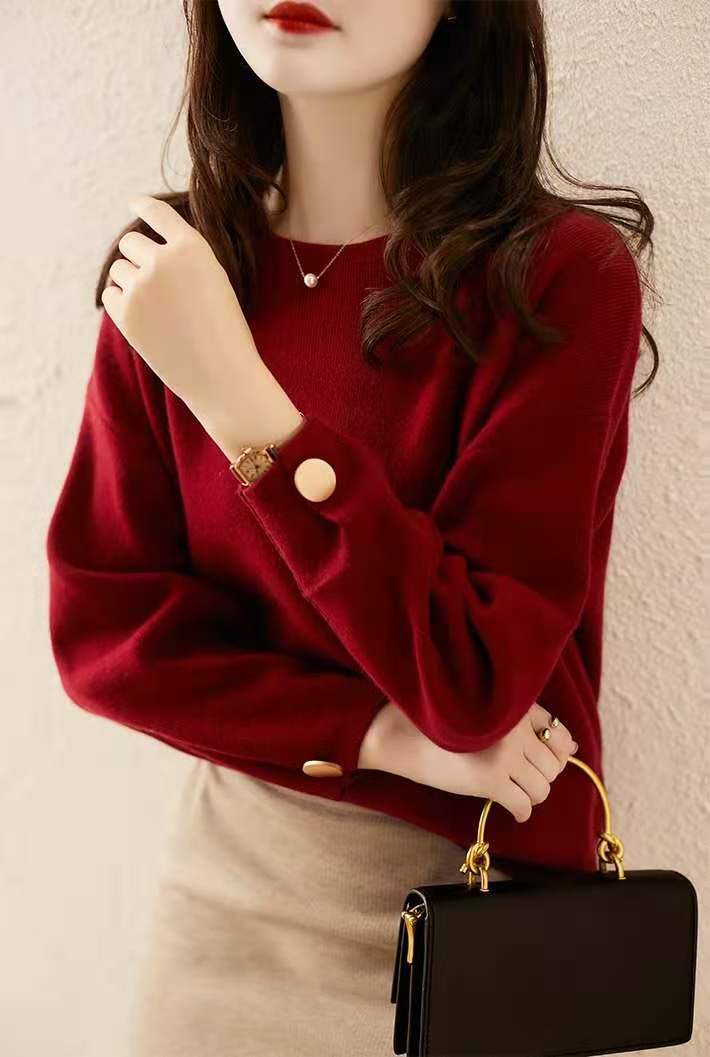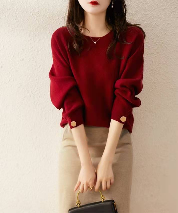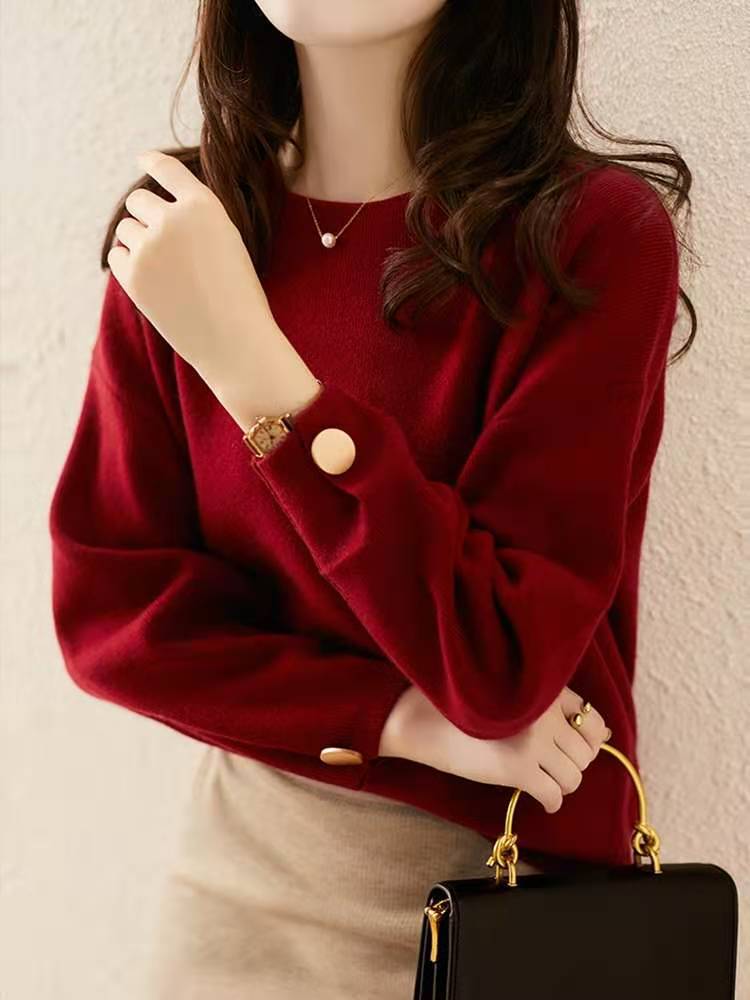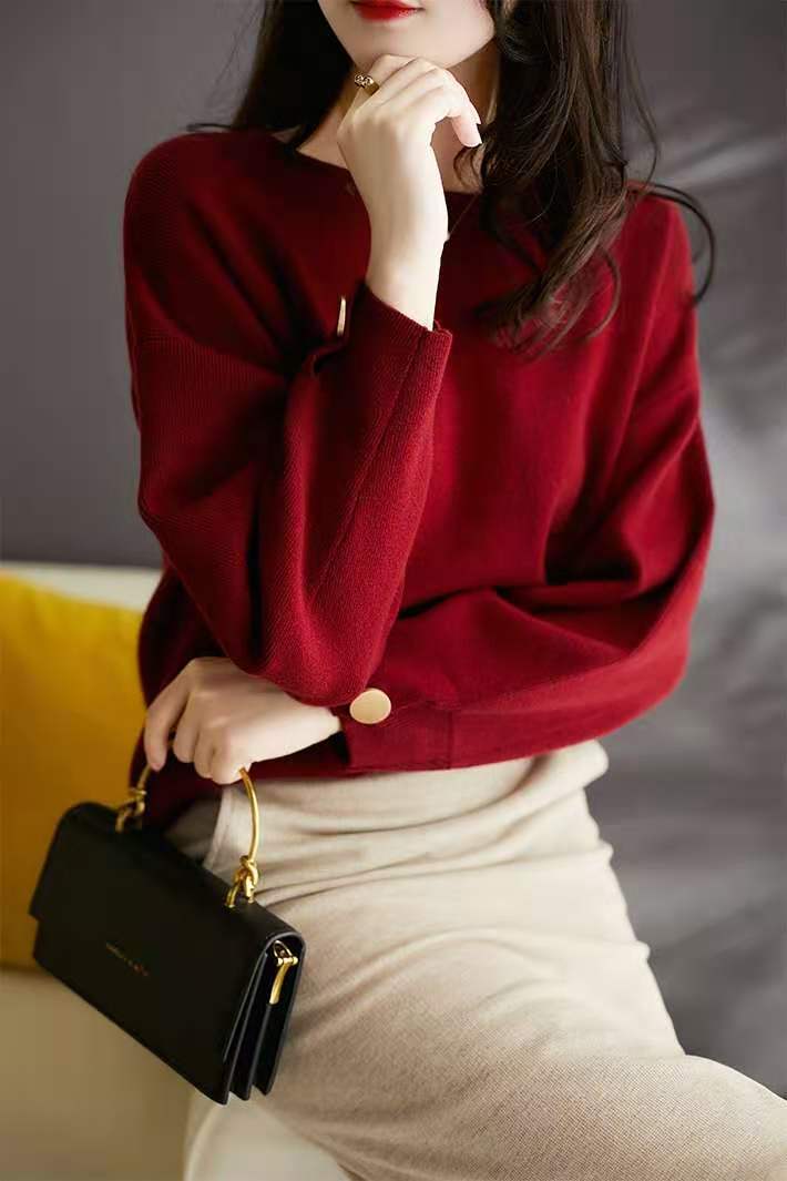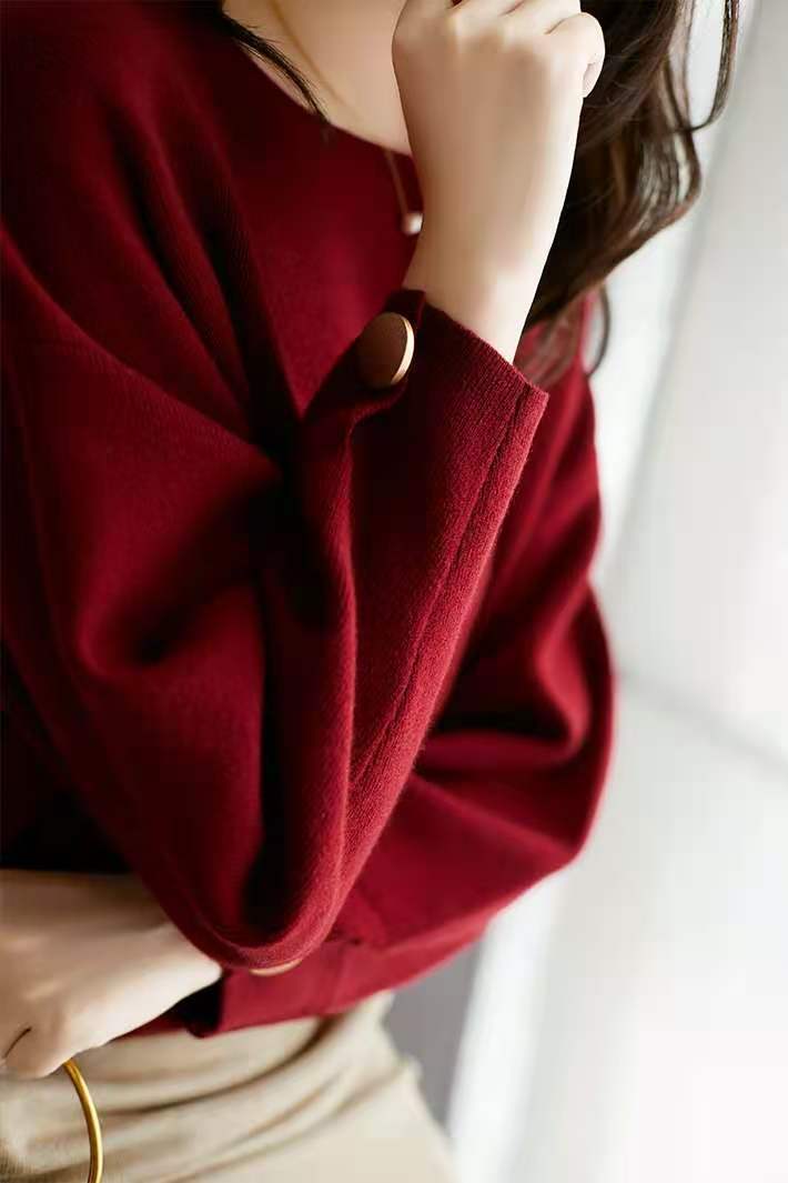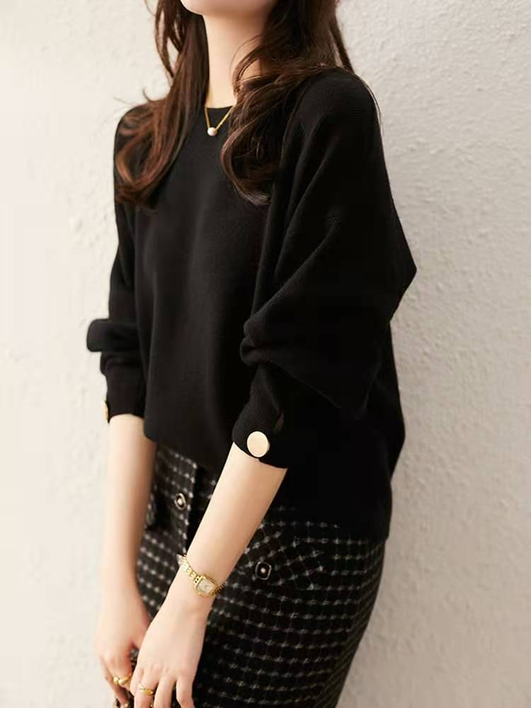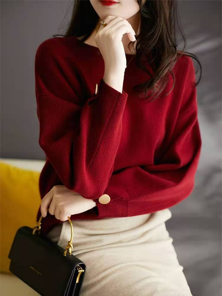 Silueta Estación Europea Lana Cachemira Tejido Jersey Top Prendas de Punto para Mujer Estilo Holgado Perezoso Prendas de Punto para Fondo