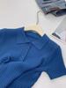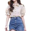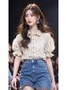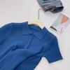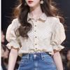 Este año 2024, popular y hermoso temperamento francés, color albaricoque, camisa de punto tipo polo con estampado de manga corta y cuello tipo polo para mujer, top de verano