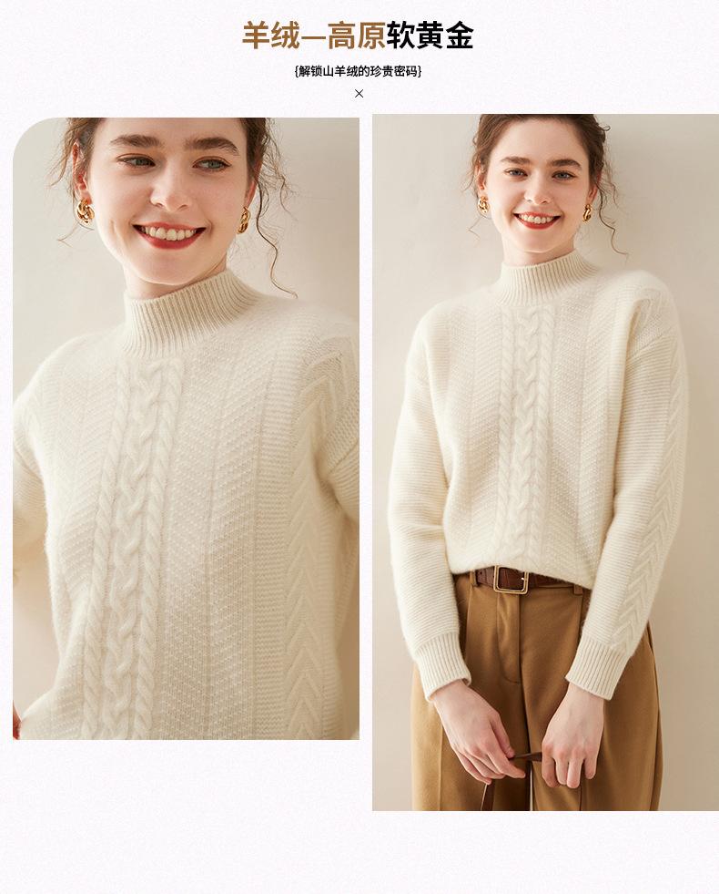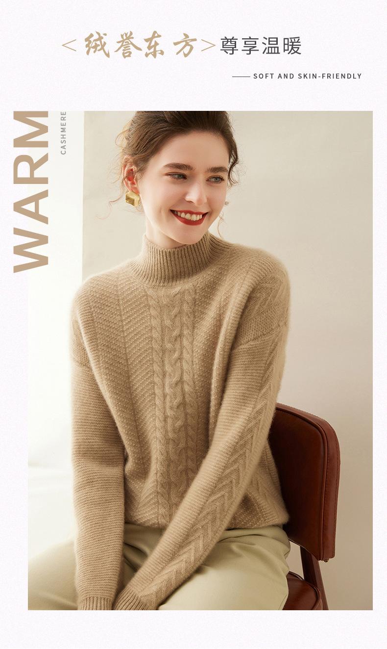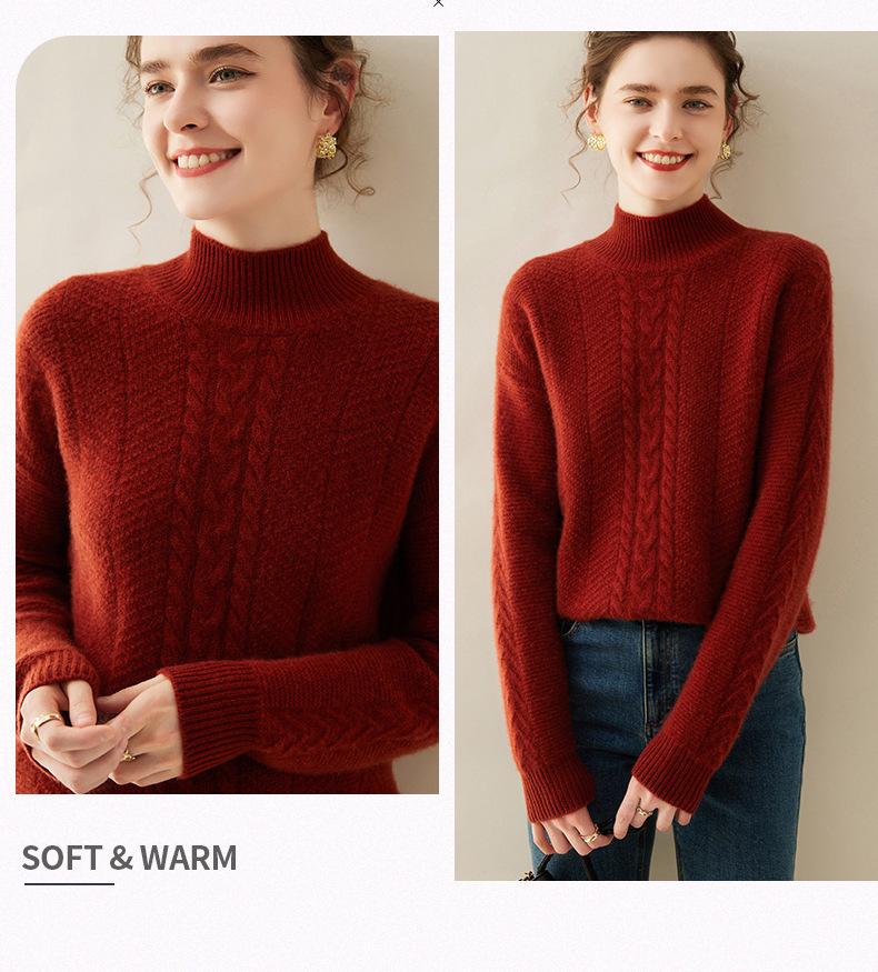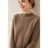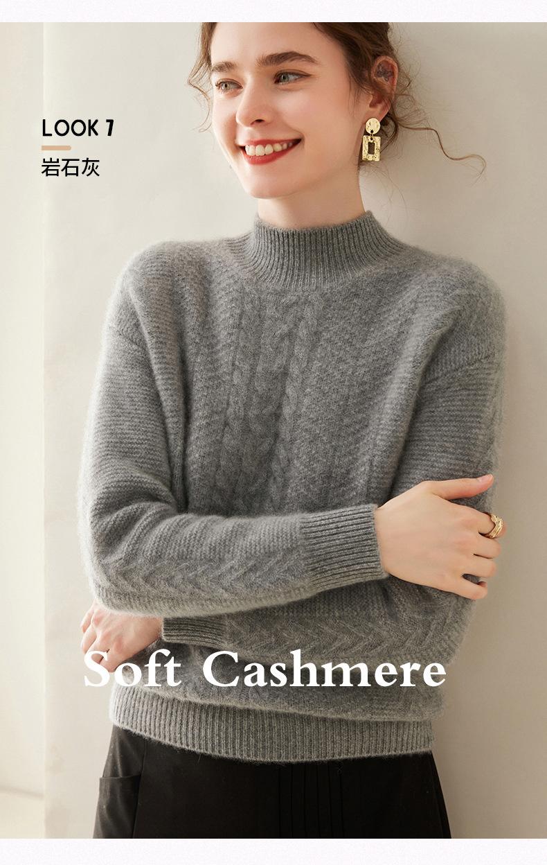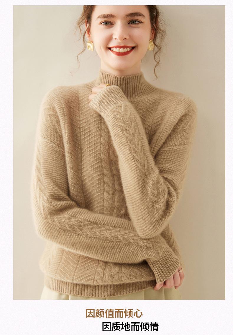 Suéter de Cachemira Grueso para Mujer 24 Otoño e Invierno Nuevo Color Puro Trenzado Cuello Alto Medio Jersey Estilo Holgazán Suéter Tejido Versátil